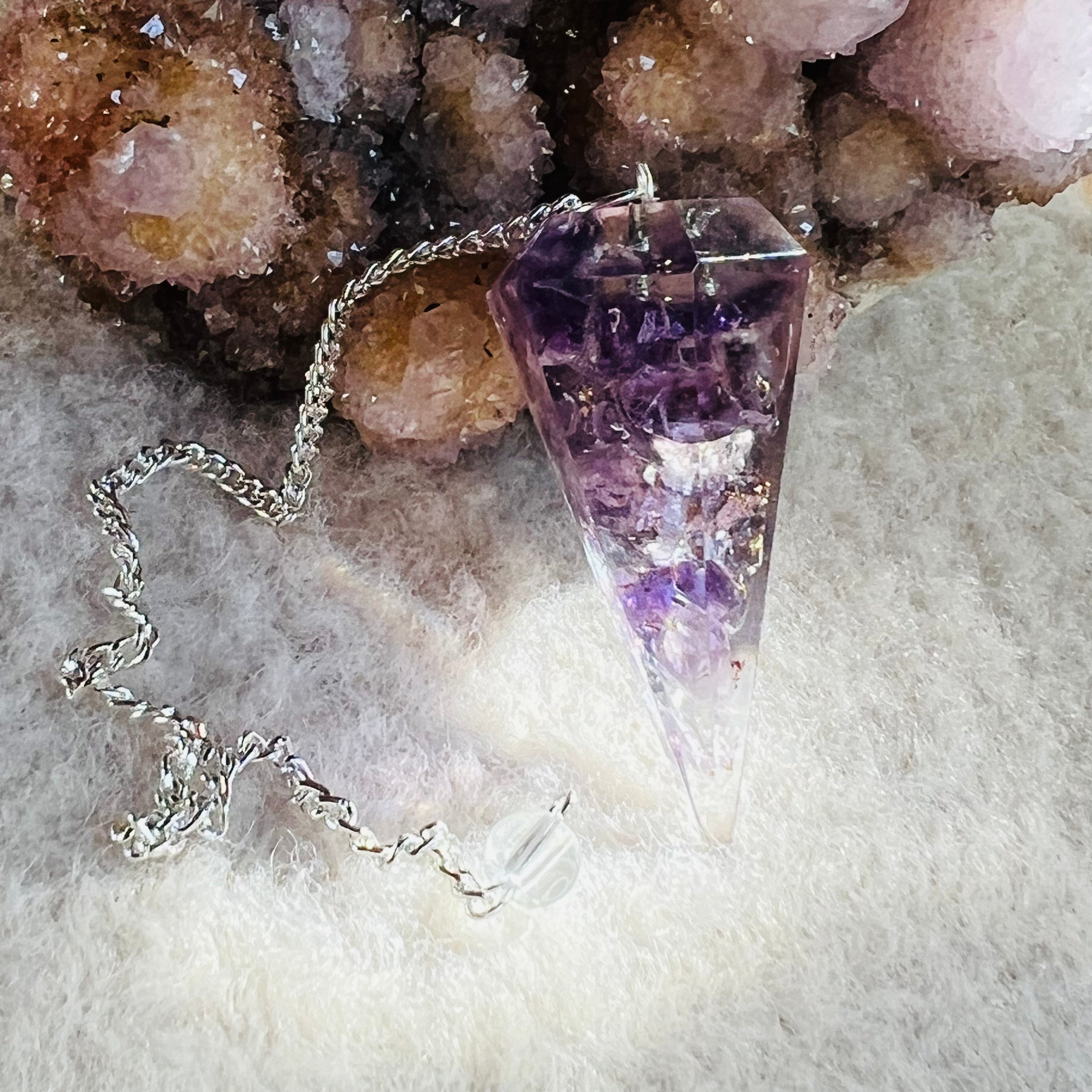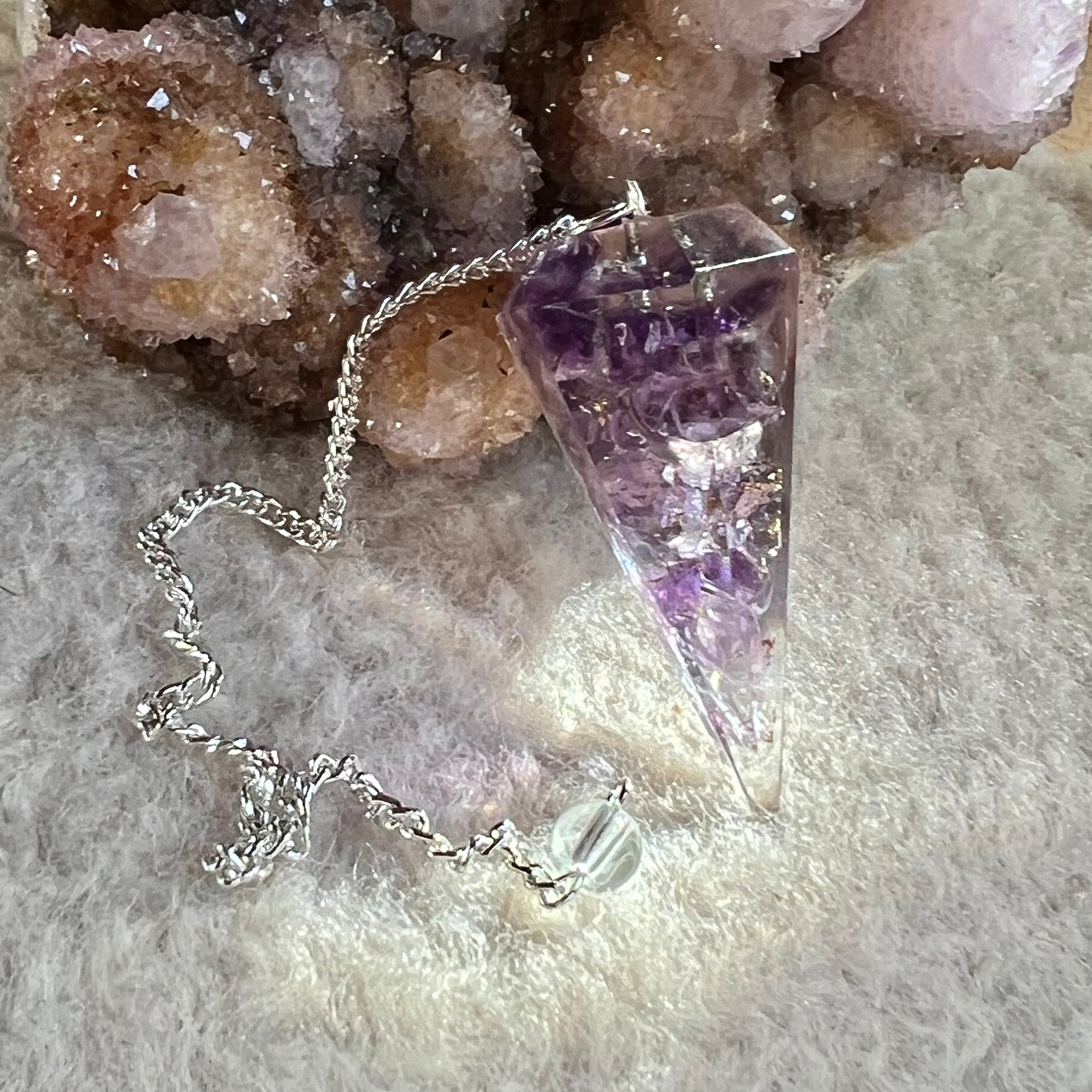 Fazettált ametiszt orgon inga, méret: 5 * 2,5 cm