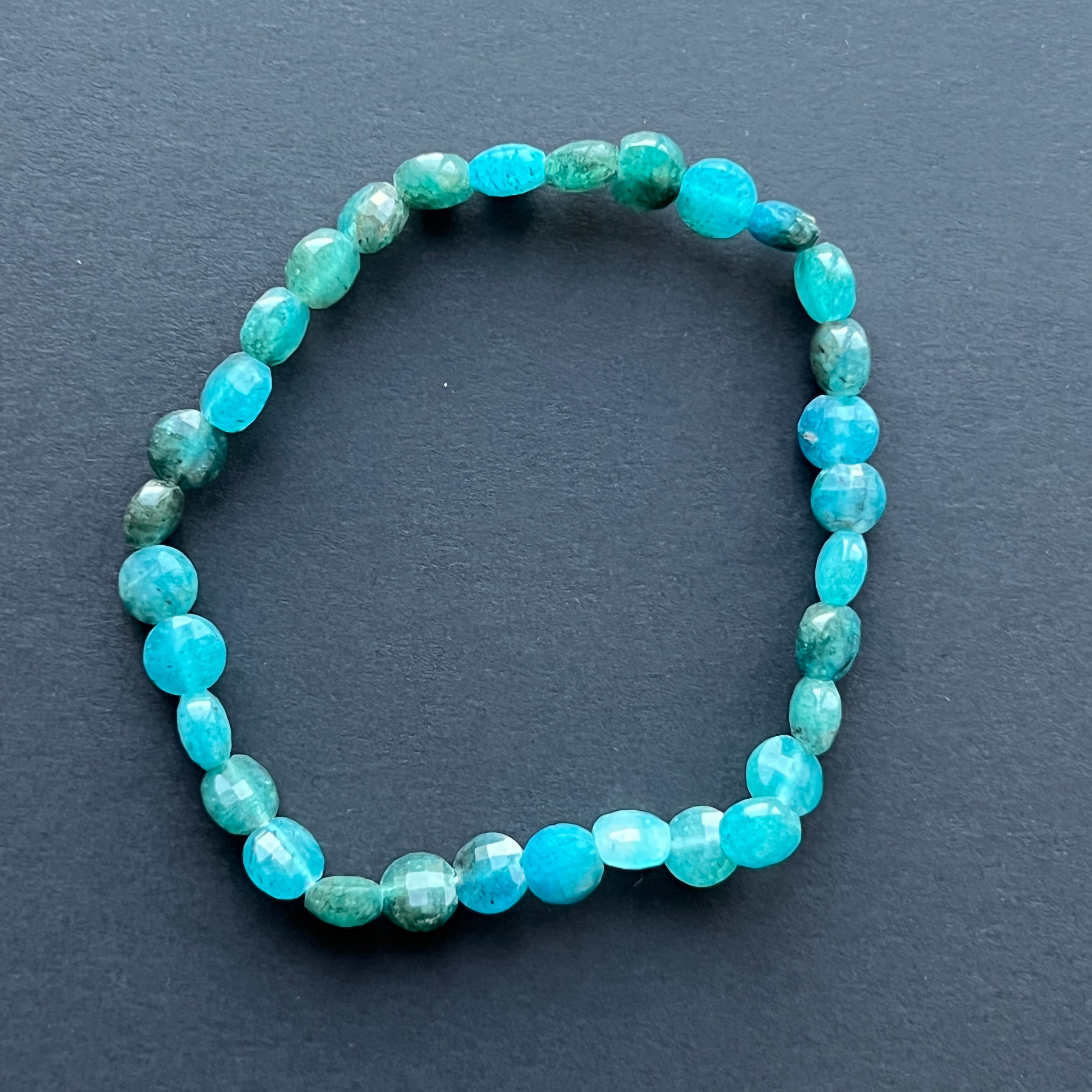 Fazettált apatit karkötő, kerek lemezek 6x4 mm