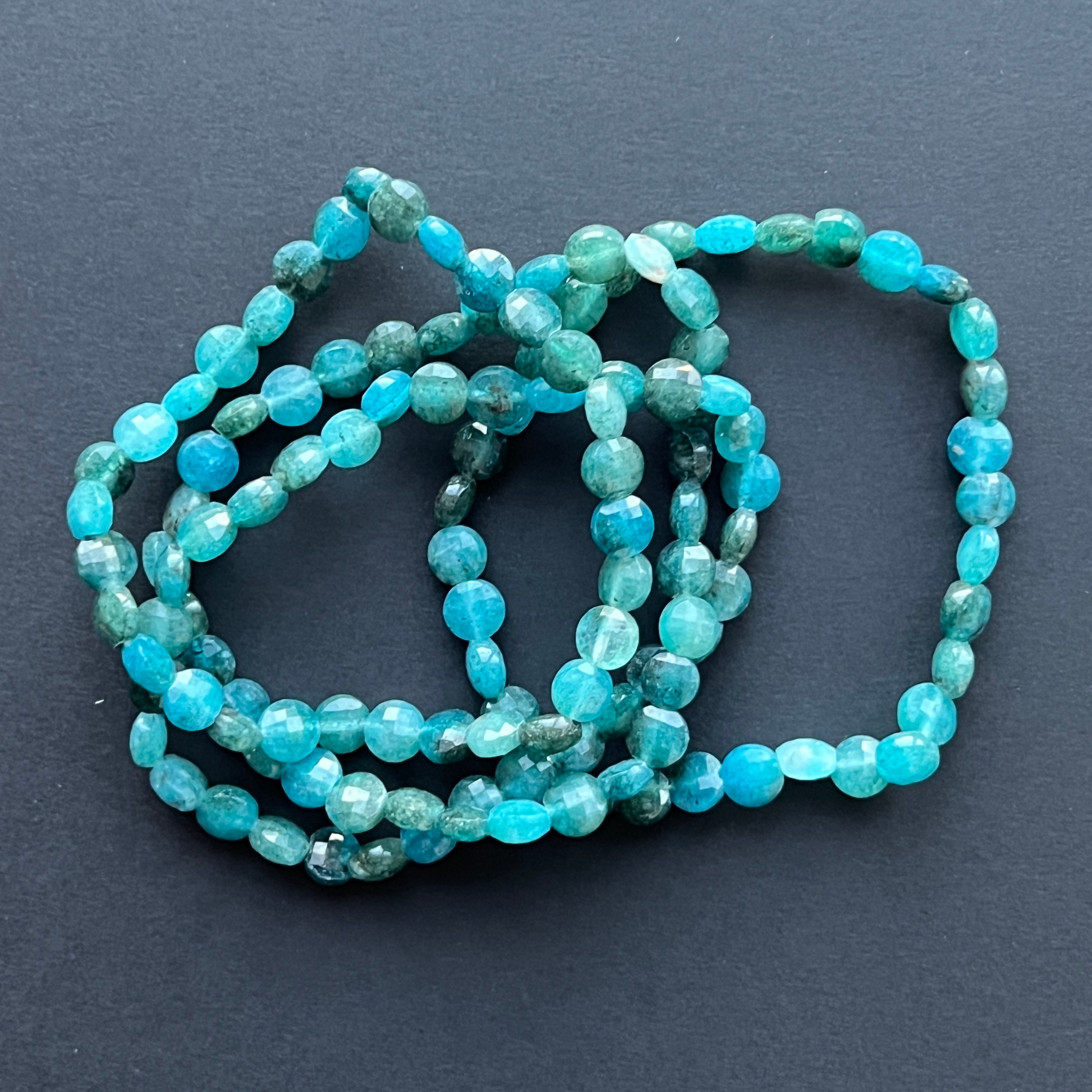 Vélemények - Fazettált apatit karkötő, kerek lemezek 6x4 mm