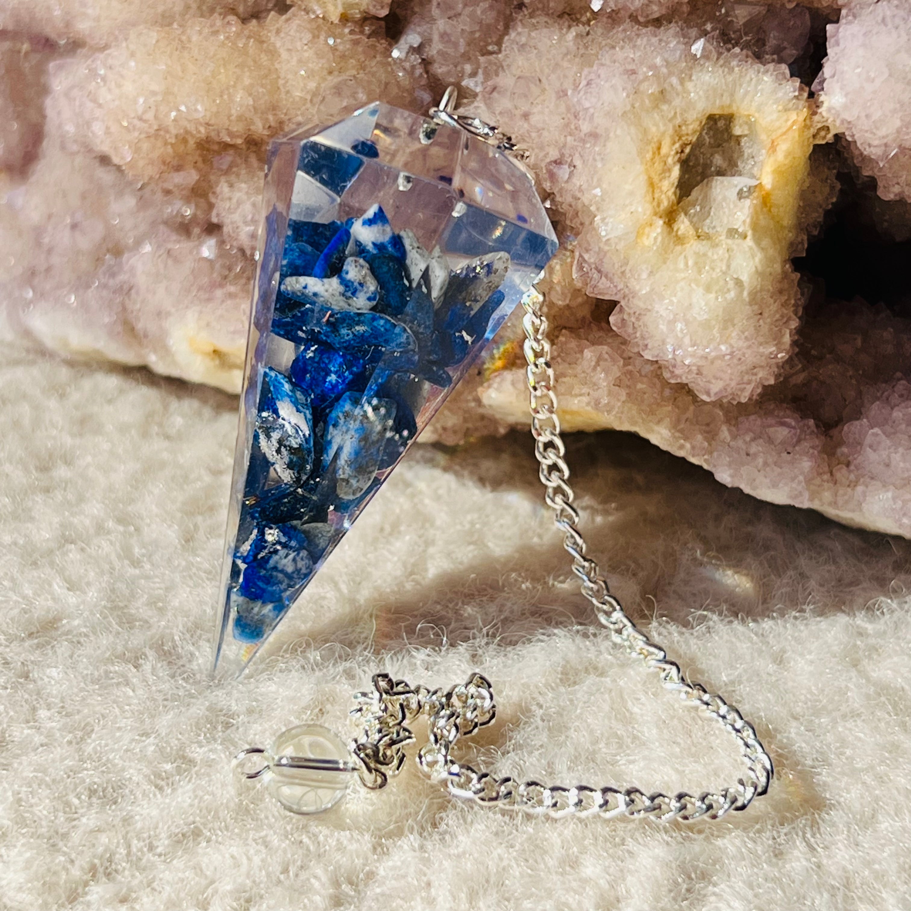 Descriere - Fazettált lápisz lazuli orgonit inga