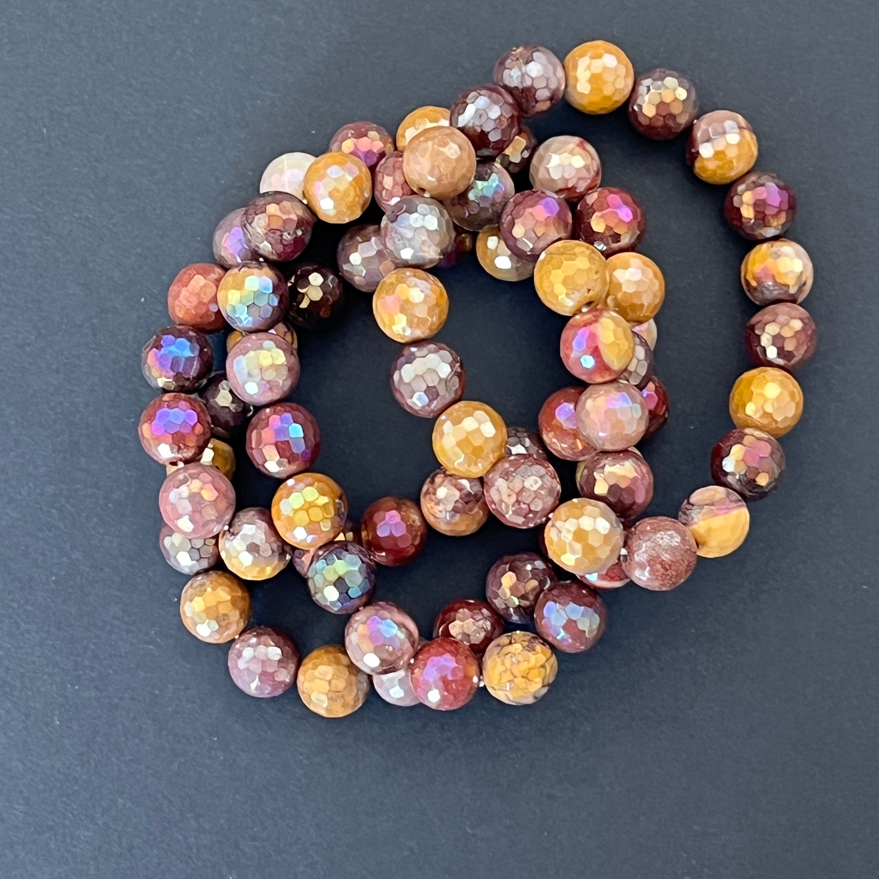 Vélemények - Fazettás mookait aura karkötő 9-10 mm
