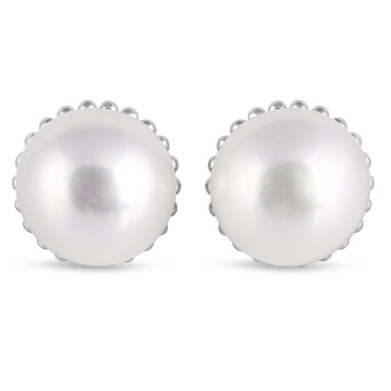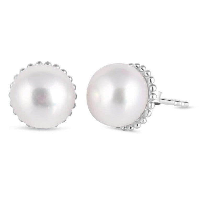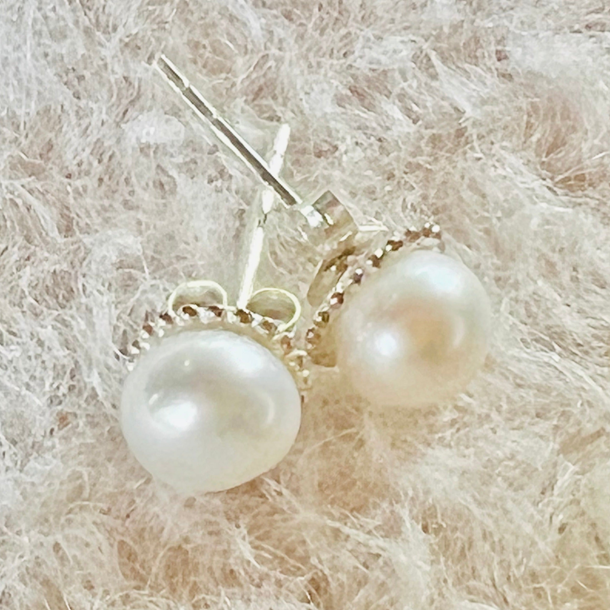 Fehér gyöngy fülbevaló ezüstből, 7 mm