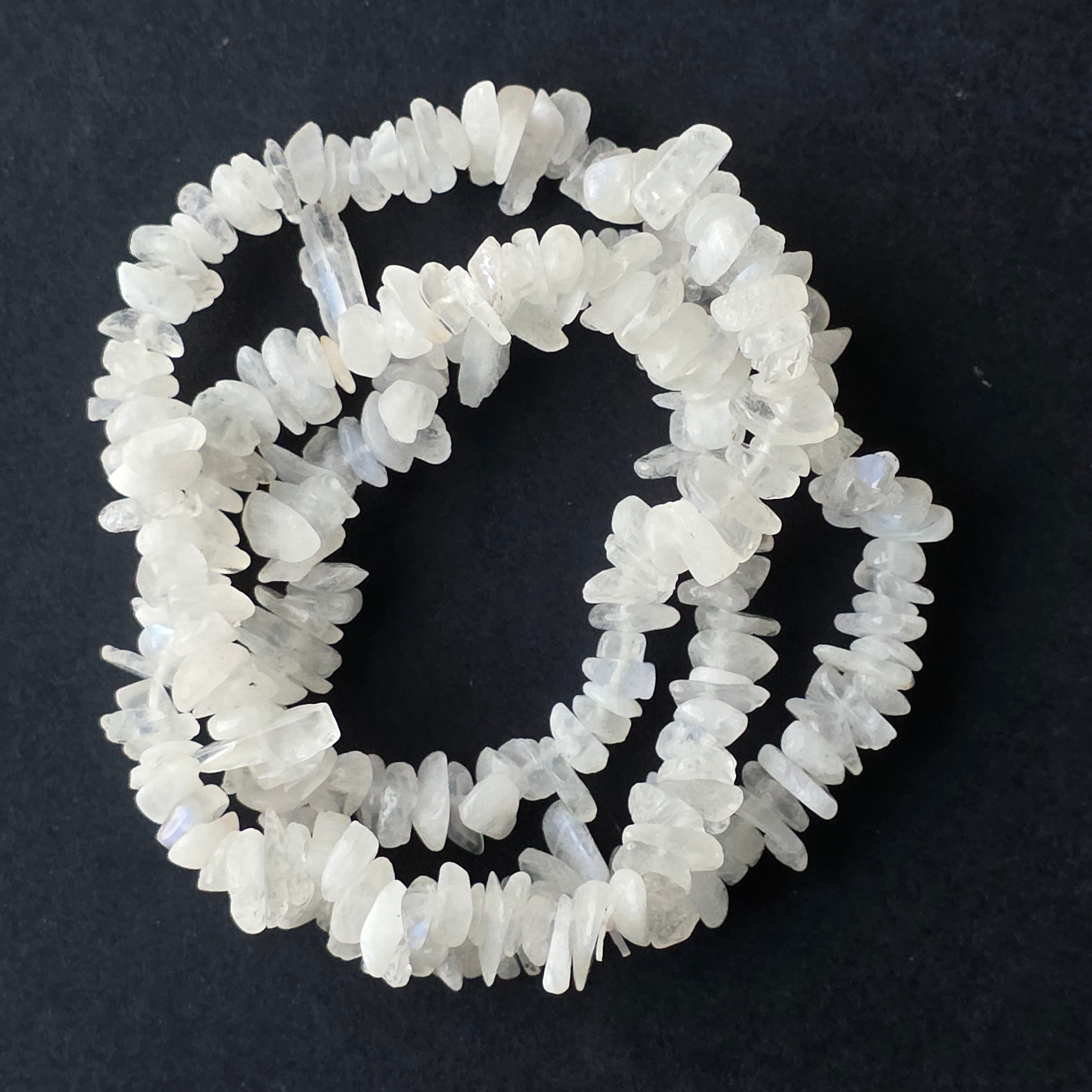 • Kő: természetes holdkő (egyenetlen, kézzel csiszolt chips) – érzelmek tisztaságával, fokozott intuícióval és belső egyensúllyal társítva