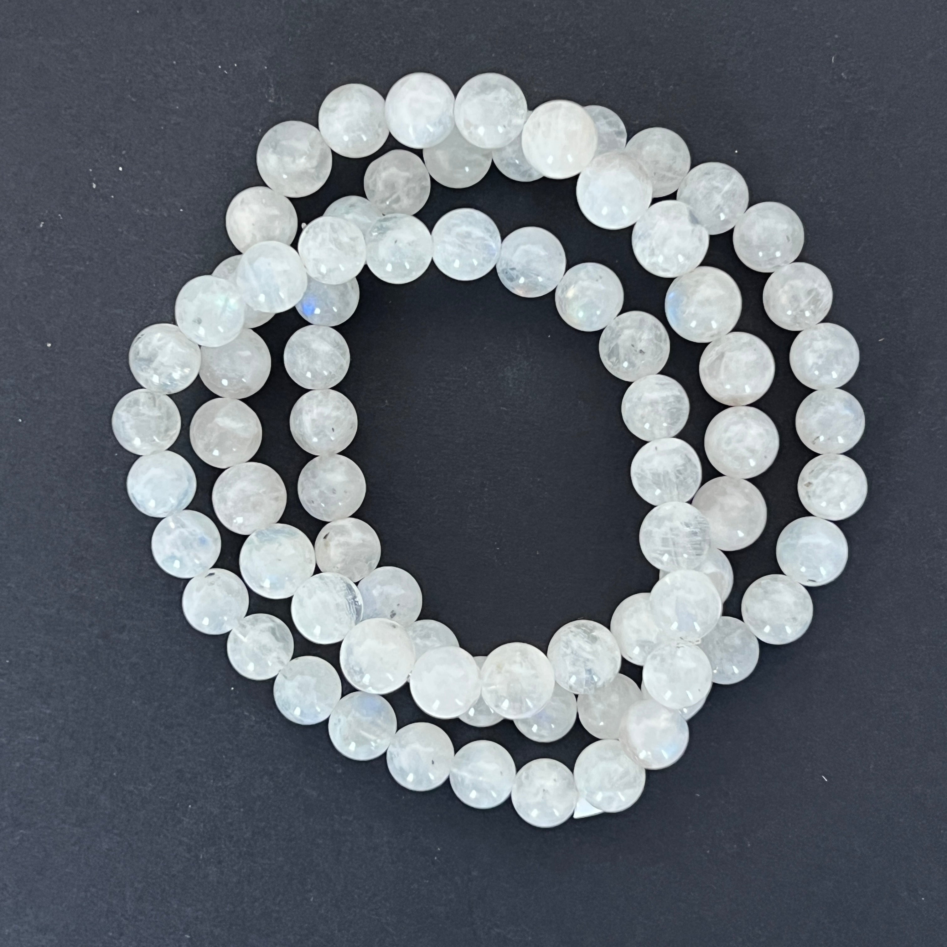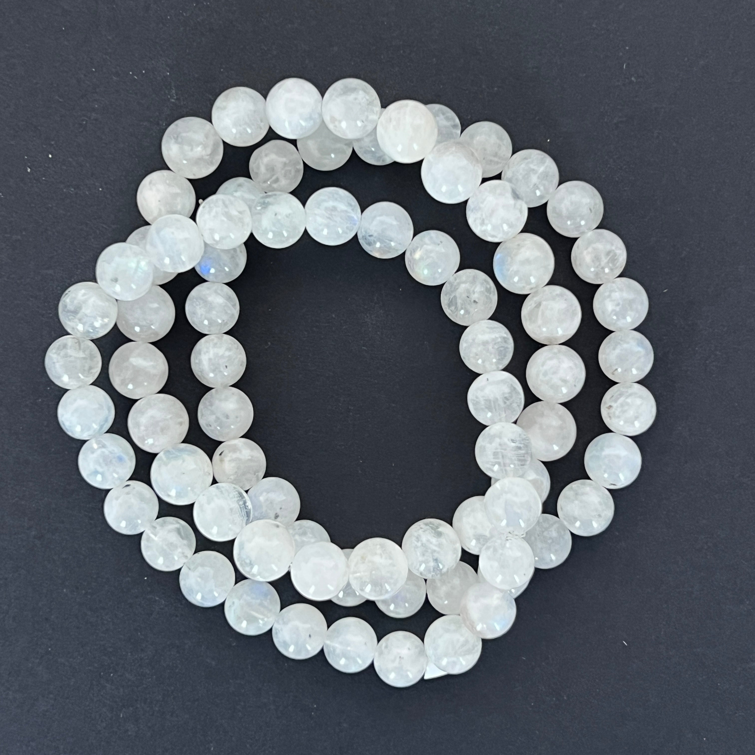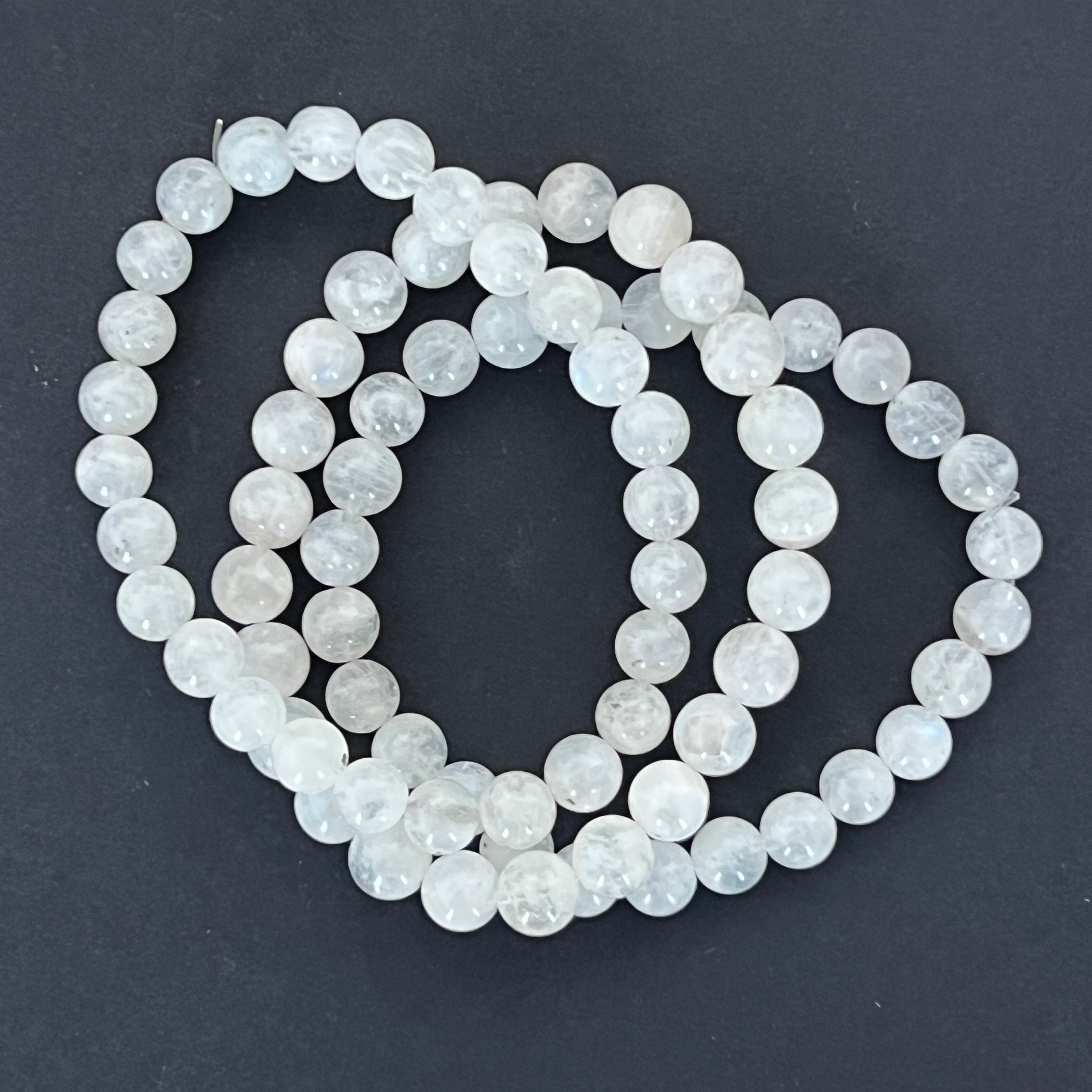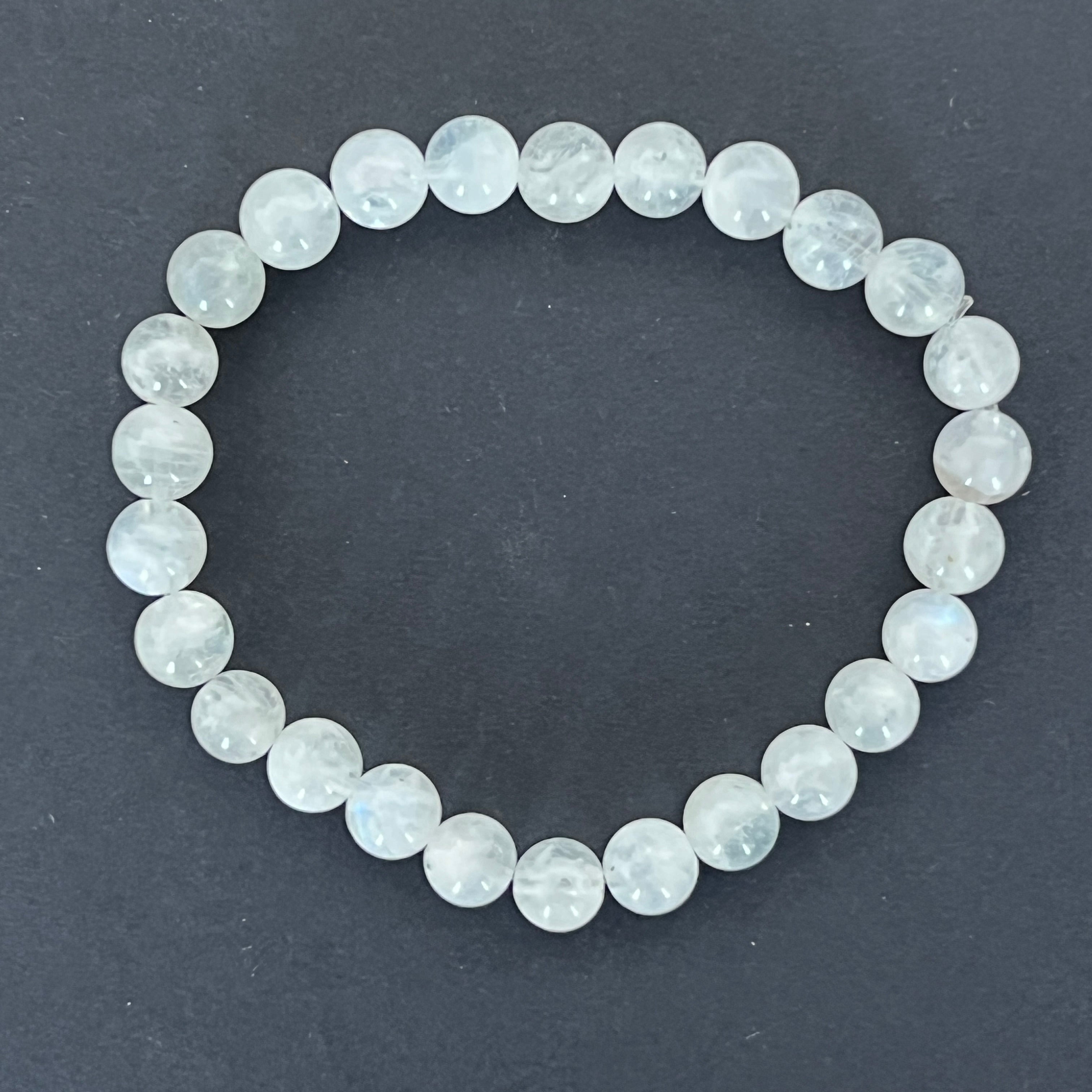 Ez a fehér holdkő karkötő 7–8 mm-es gyöngyökből áll, egy finom és ragyogó ékszer, amely a kincsnek számító kő finom varázsát ragadja meg. A gyöngyházfényű játék, néha kékes tónusokkal, a hold titokzatos fényére emlékeztet az éjszakai égen.