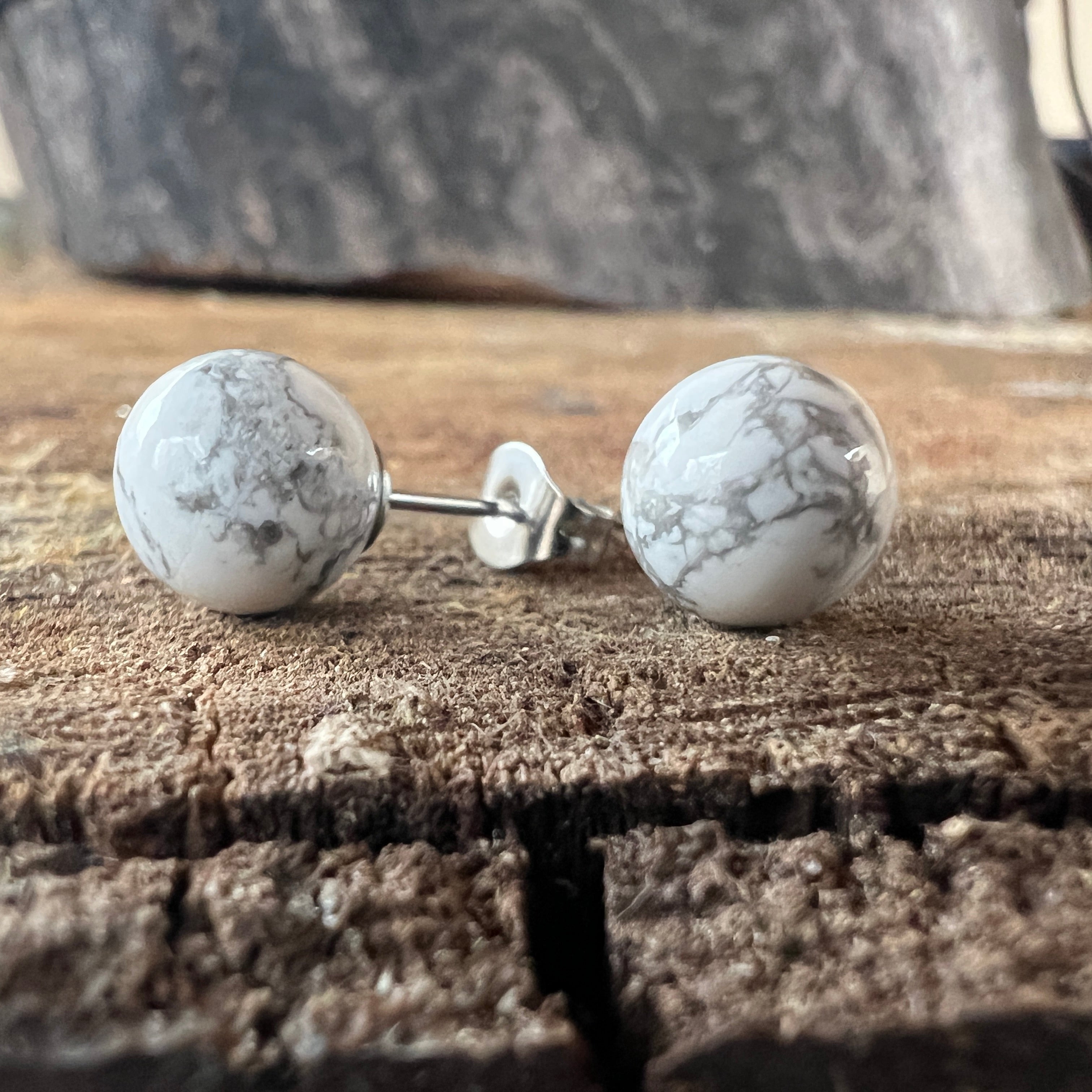Vélemények - Fehér howlit golyó fülbevaló 8 mm
