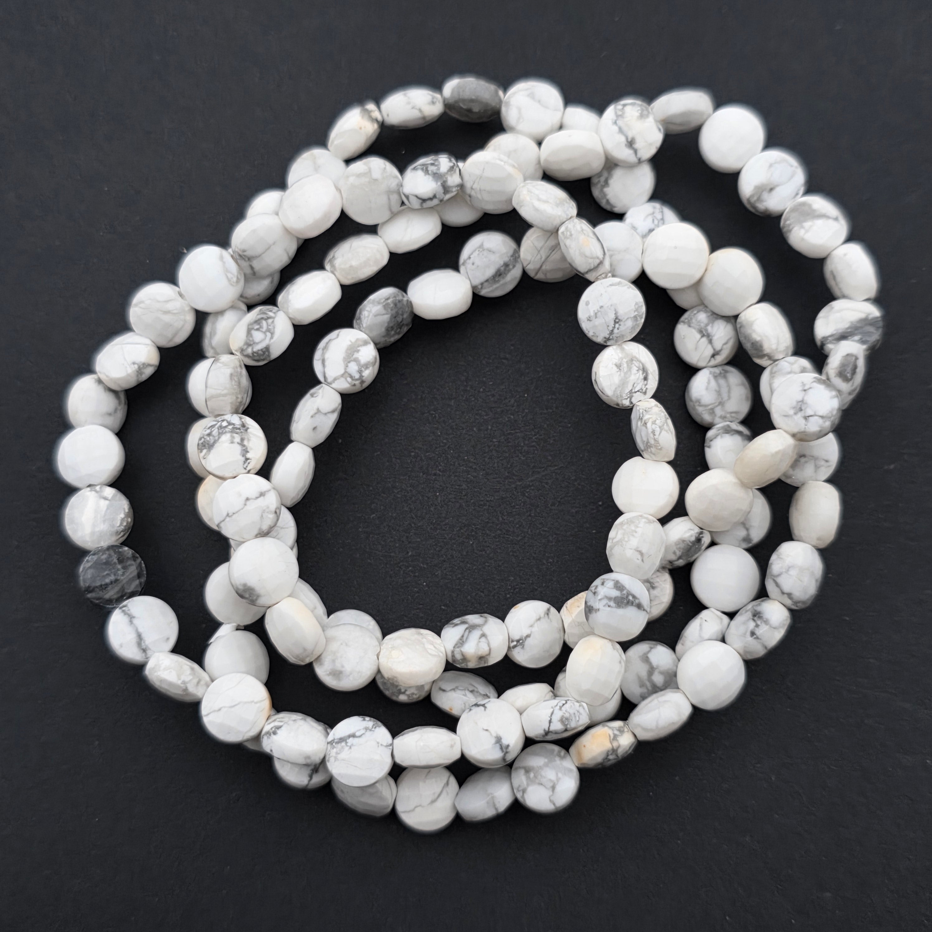 Vélemények - Fehér howlit gyöngyökből készült, csiszolt, ovális lemezes karkötő 6x4 mm