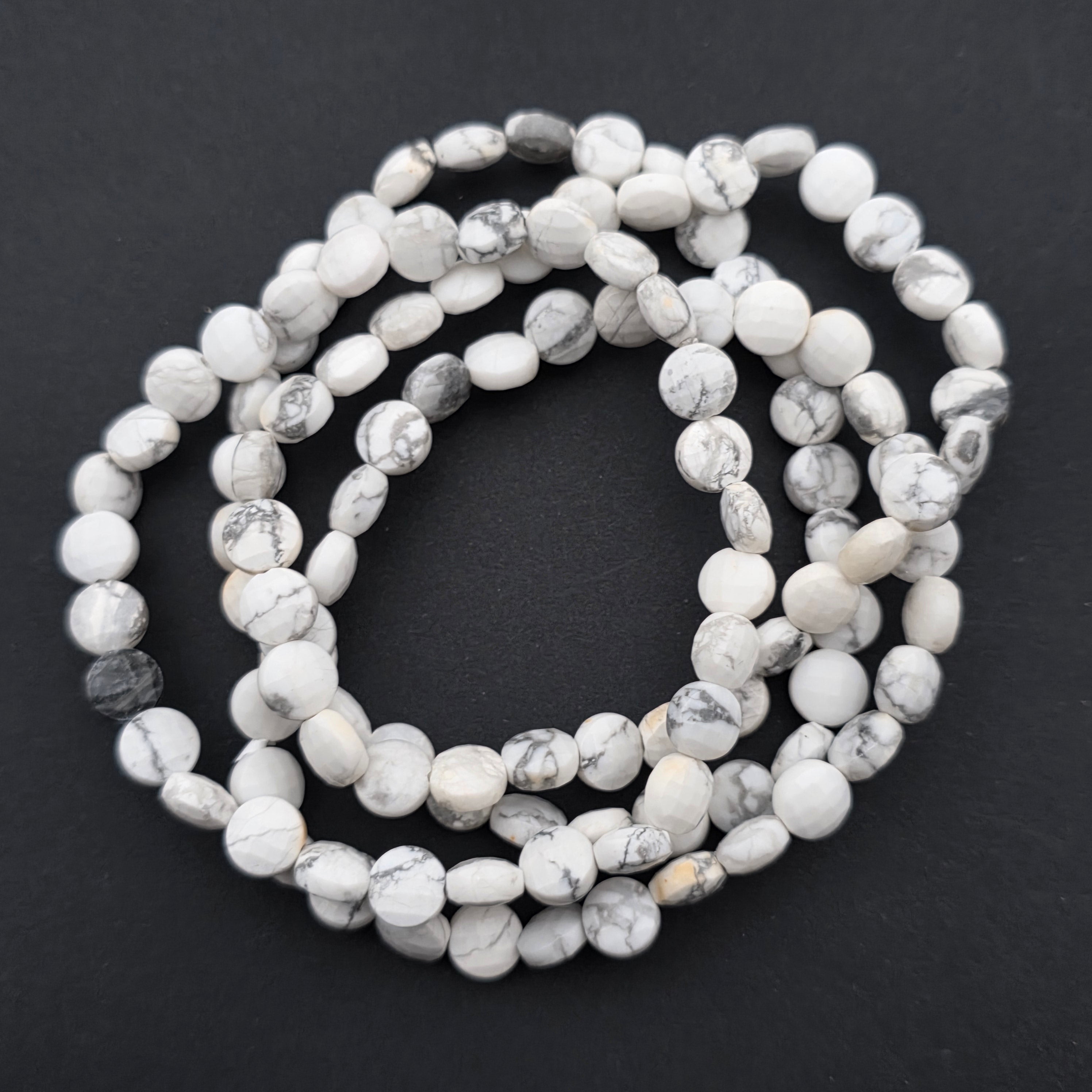 Csiszolt fehér howlitgyöngyök 6 x 4 mm