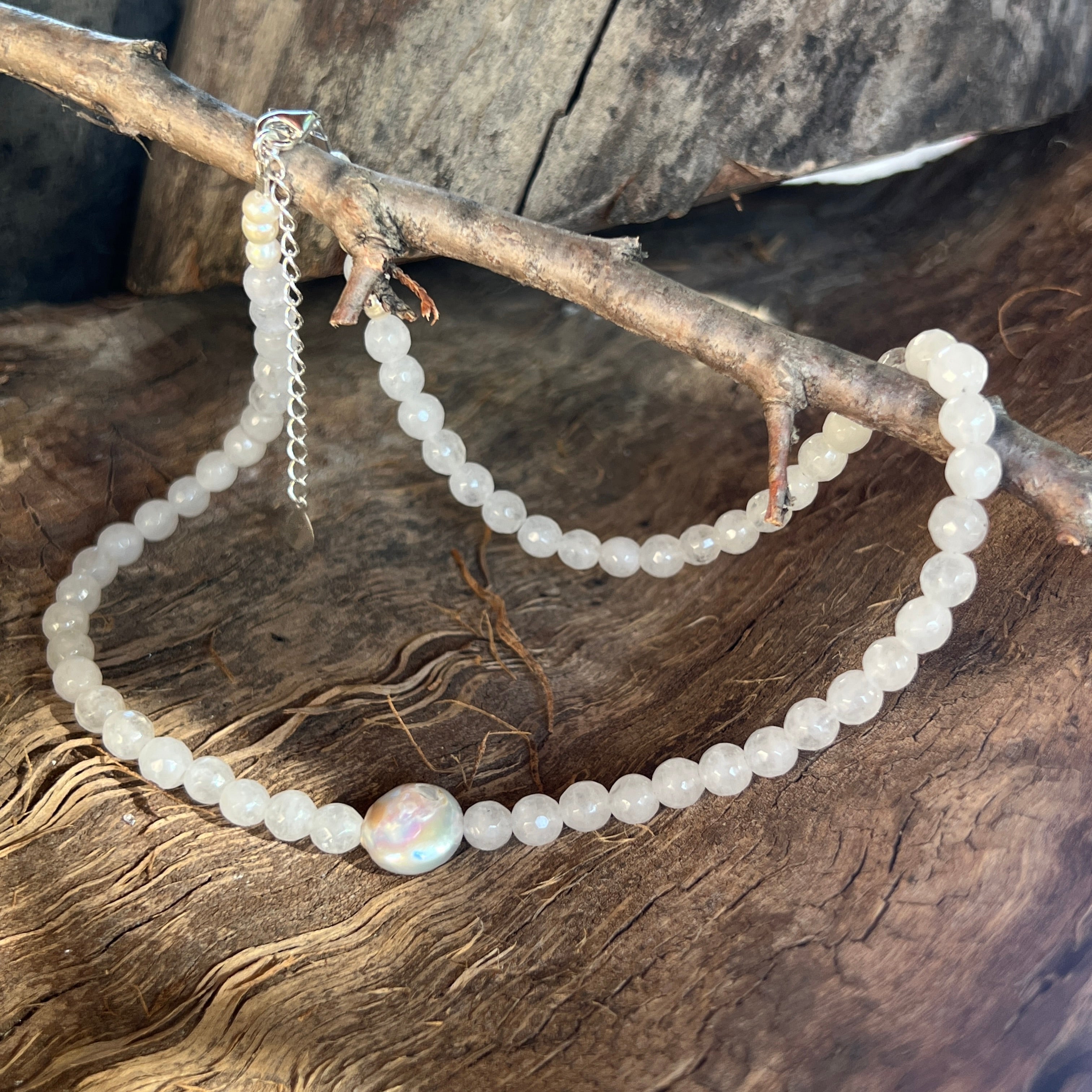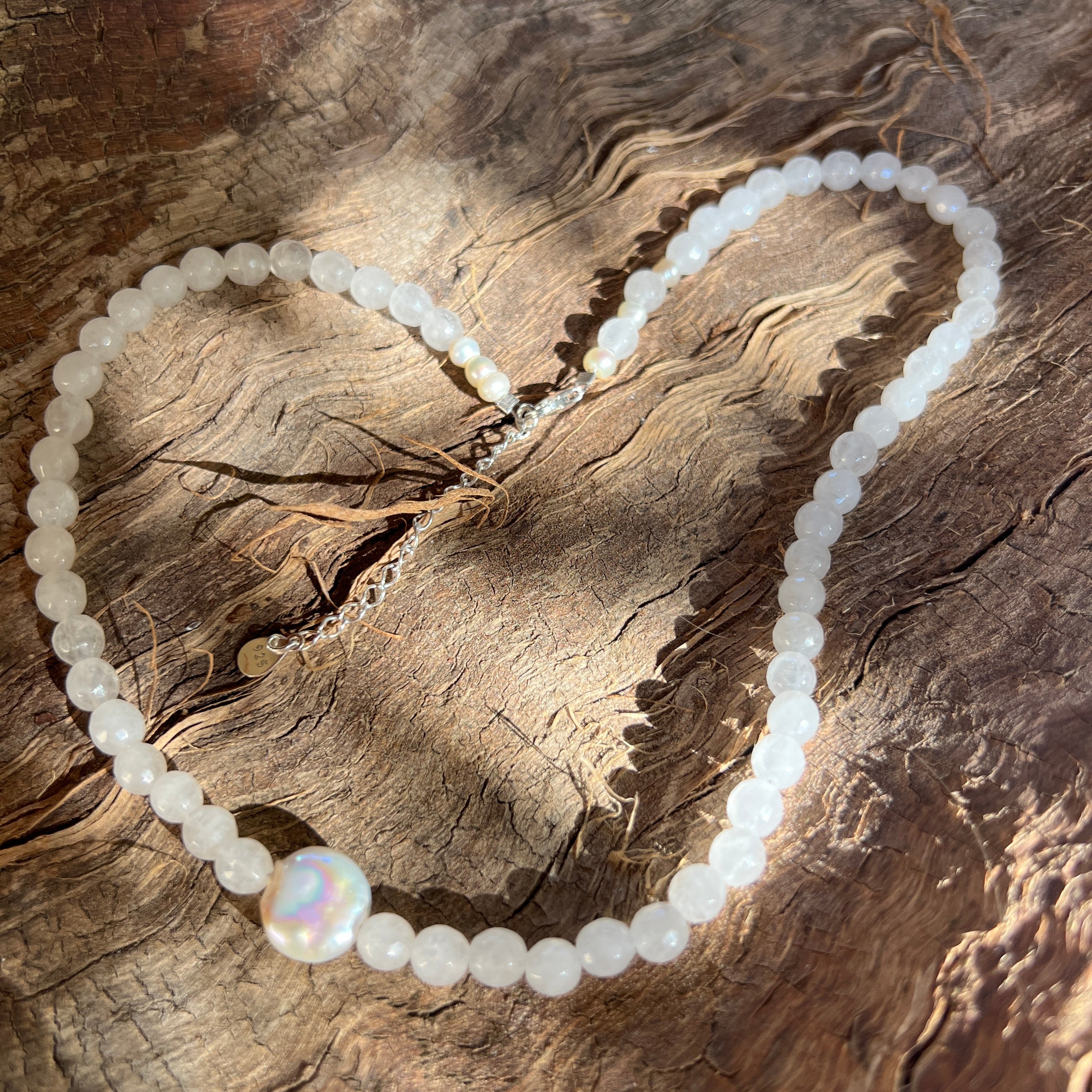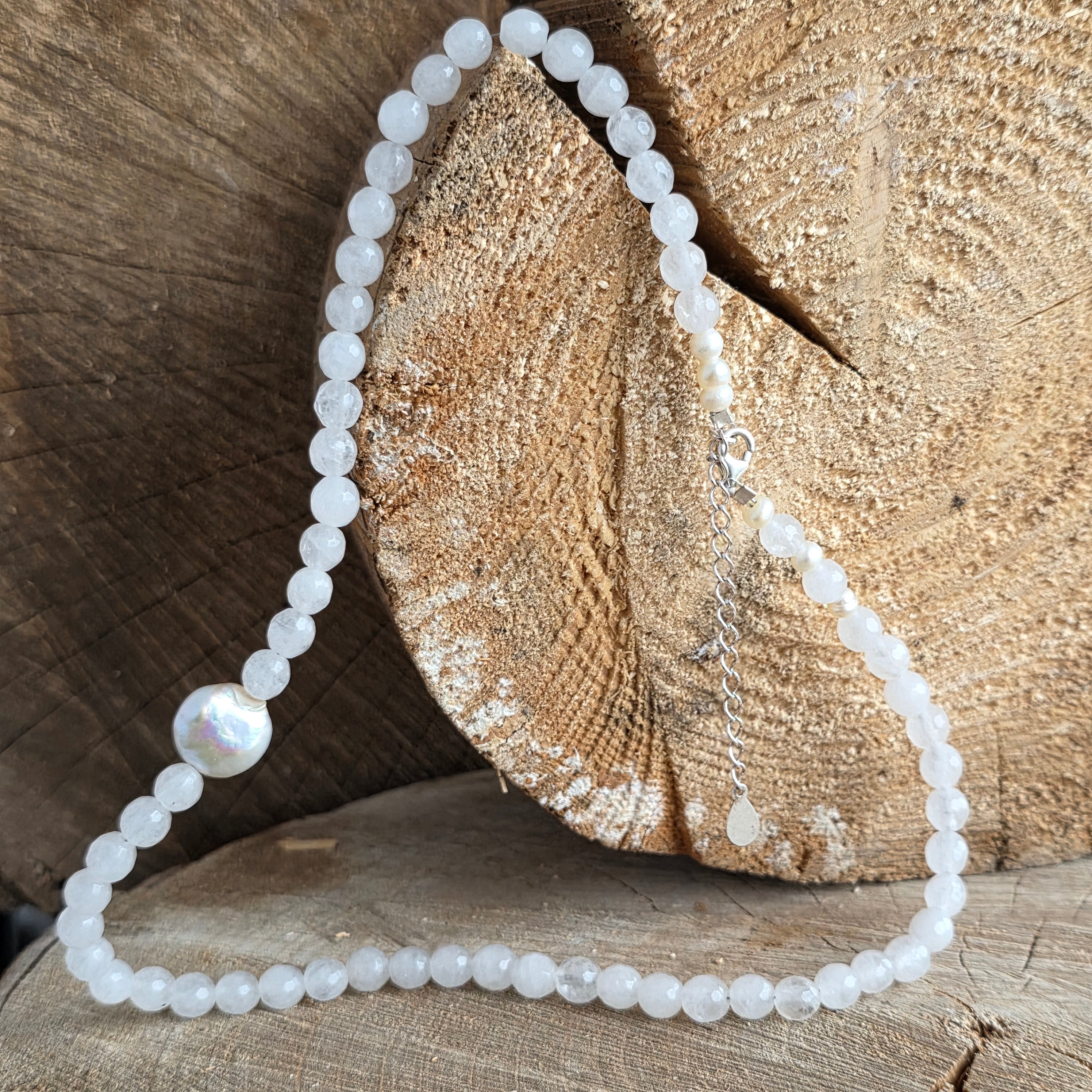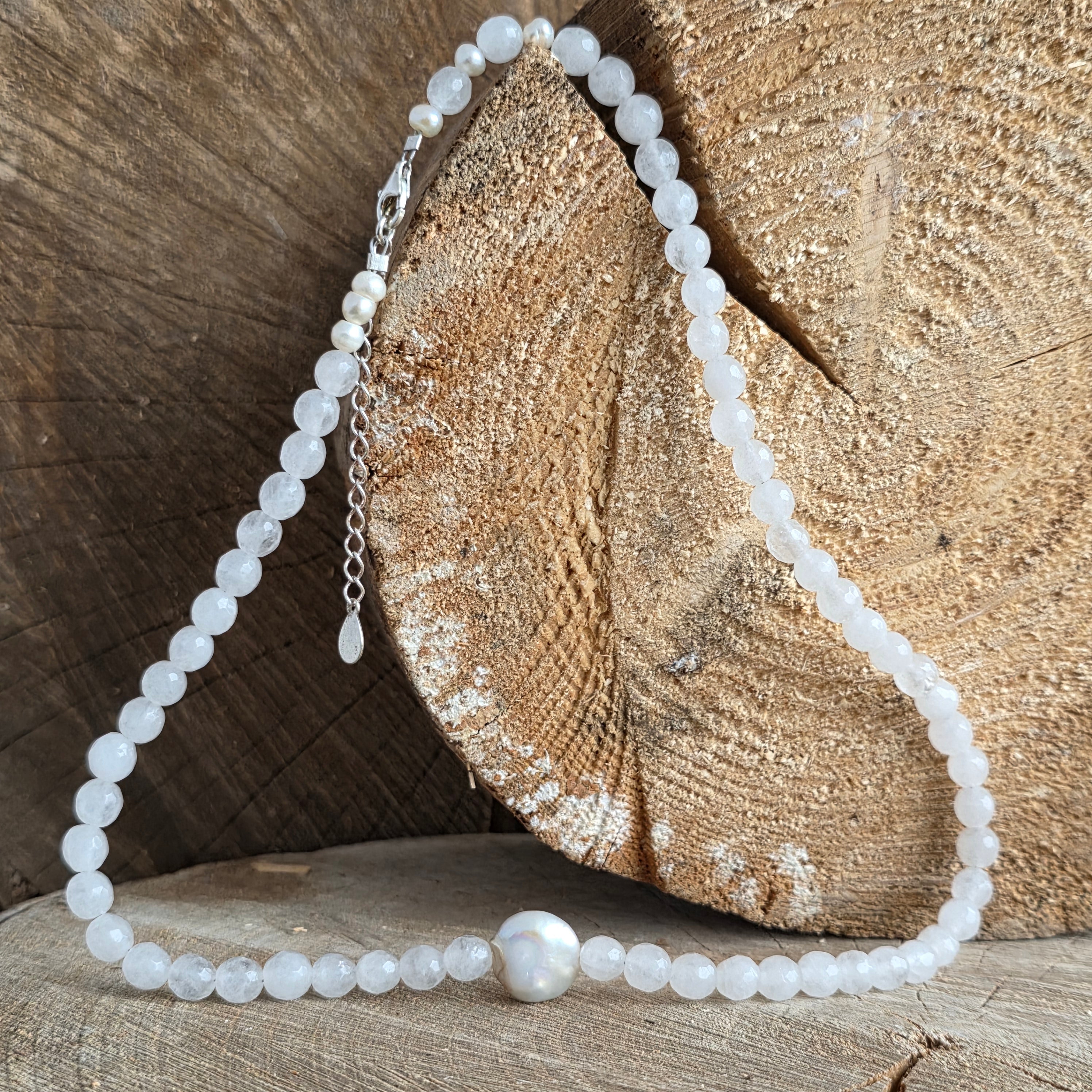 Fehér jáde és gyöngy nyaklánc Eira#7