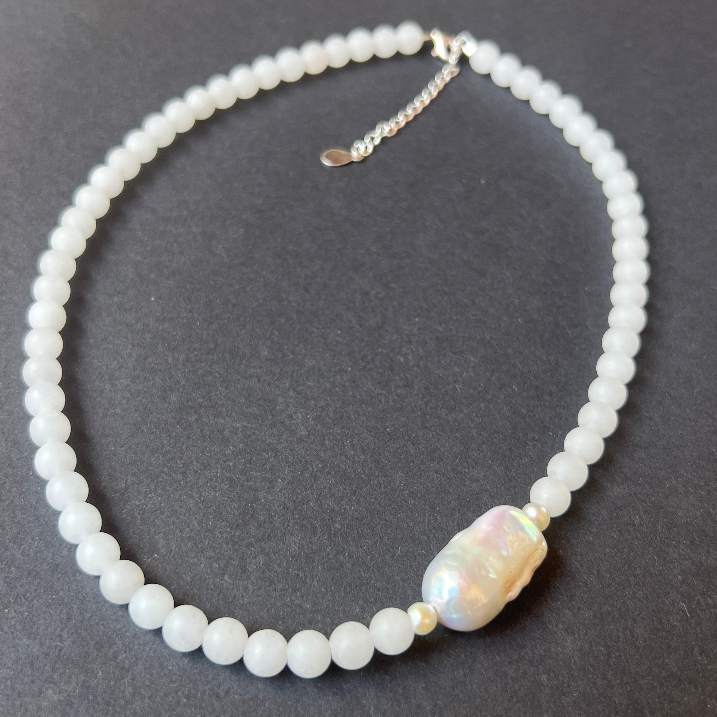 Fehér jáde és gyöngy nyaklánc Purity#38