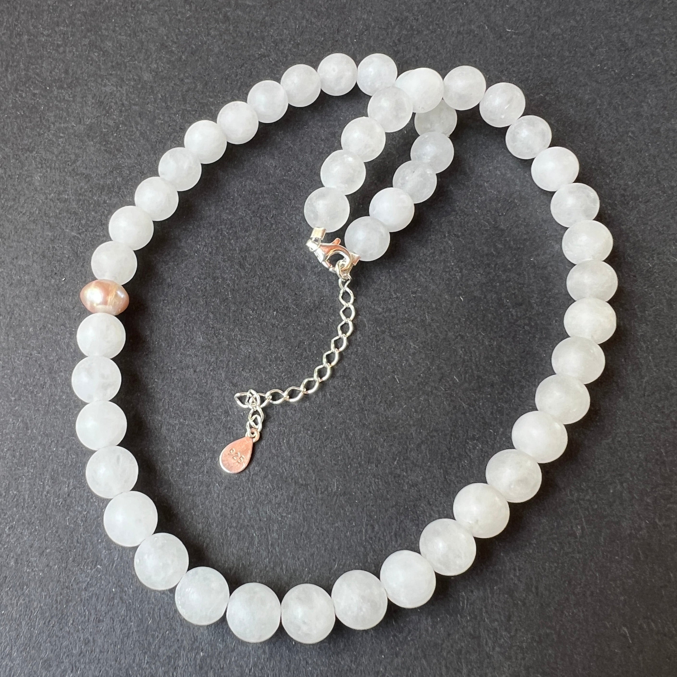 Fehér jáde és gyöngy nyaklánc Purity#39