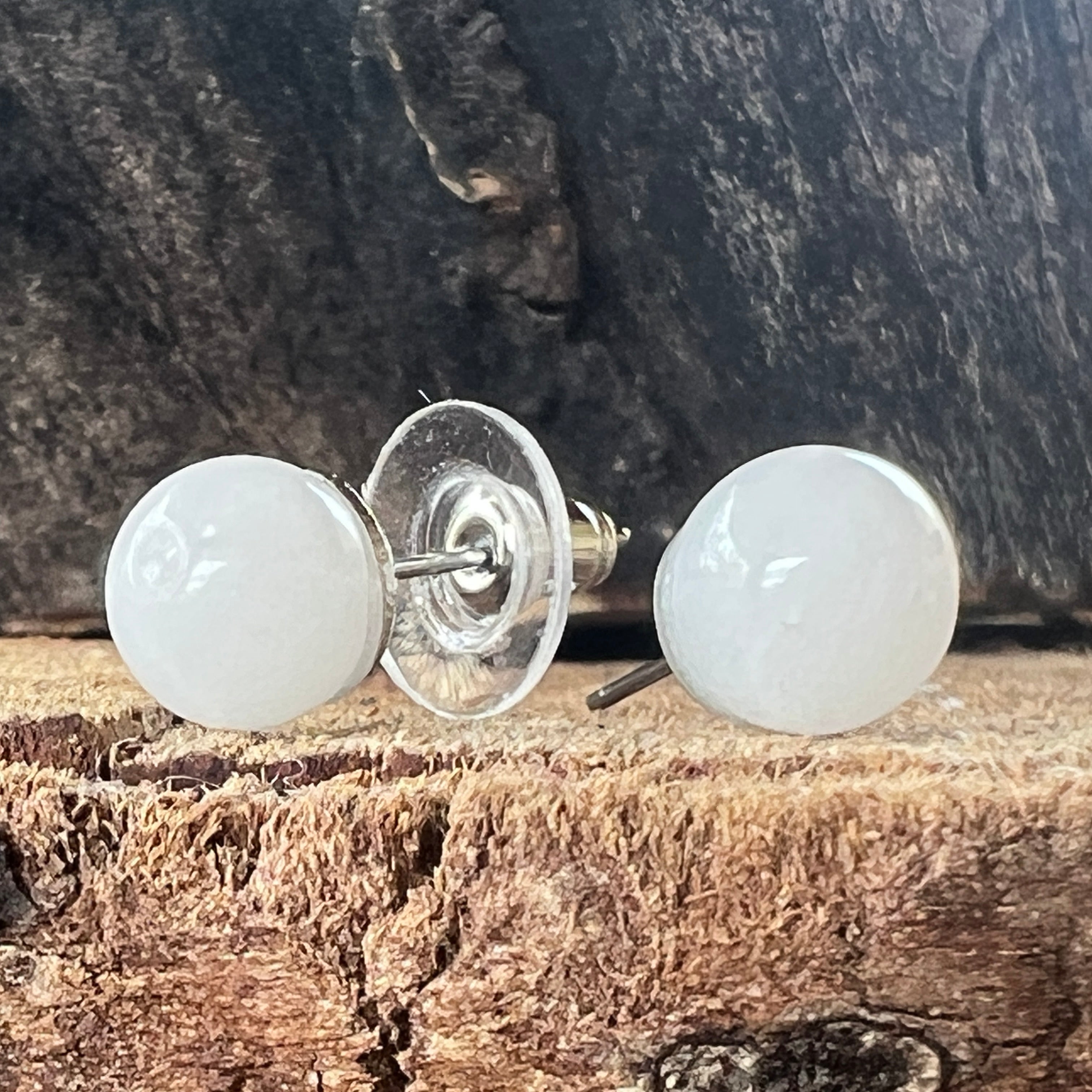 Fehér jáde gömb fülbevaló 8 mm-es bedugós