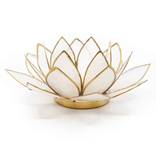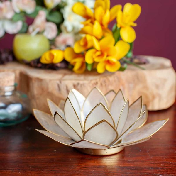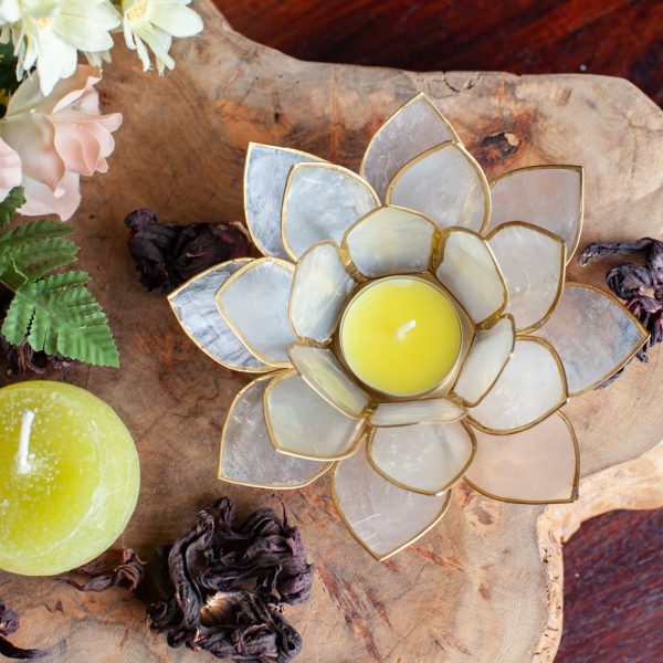 Fehér, természetes lótuszvirág gyertyatartó a Fülöp-szigetekről, Capiz kagylóval