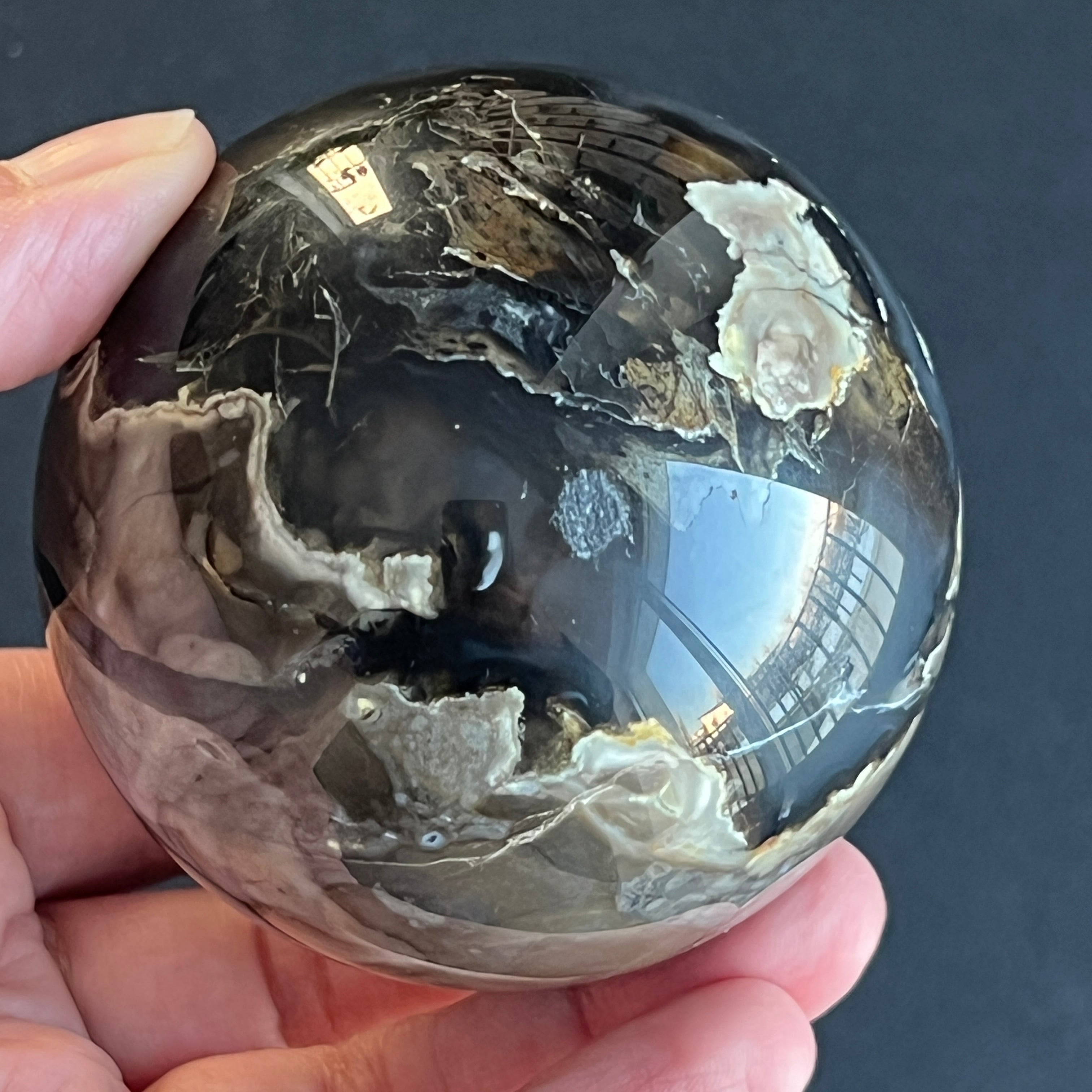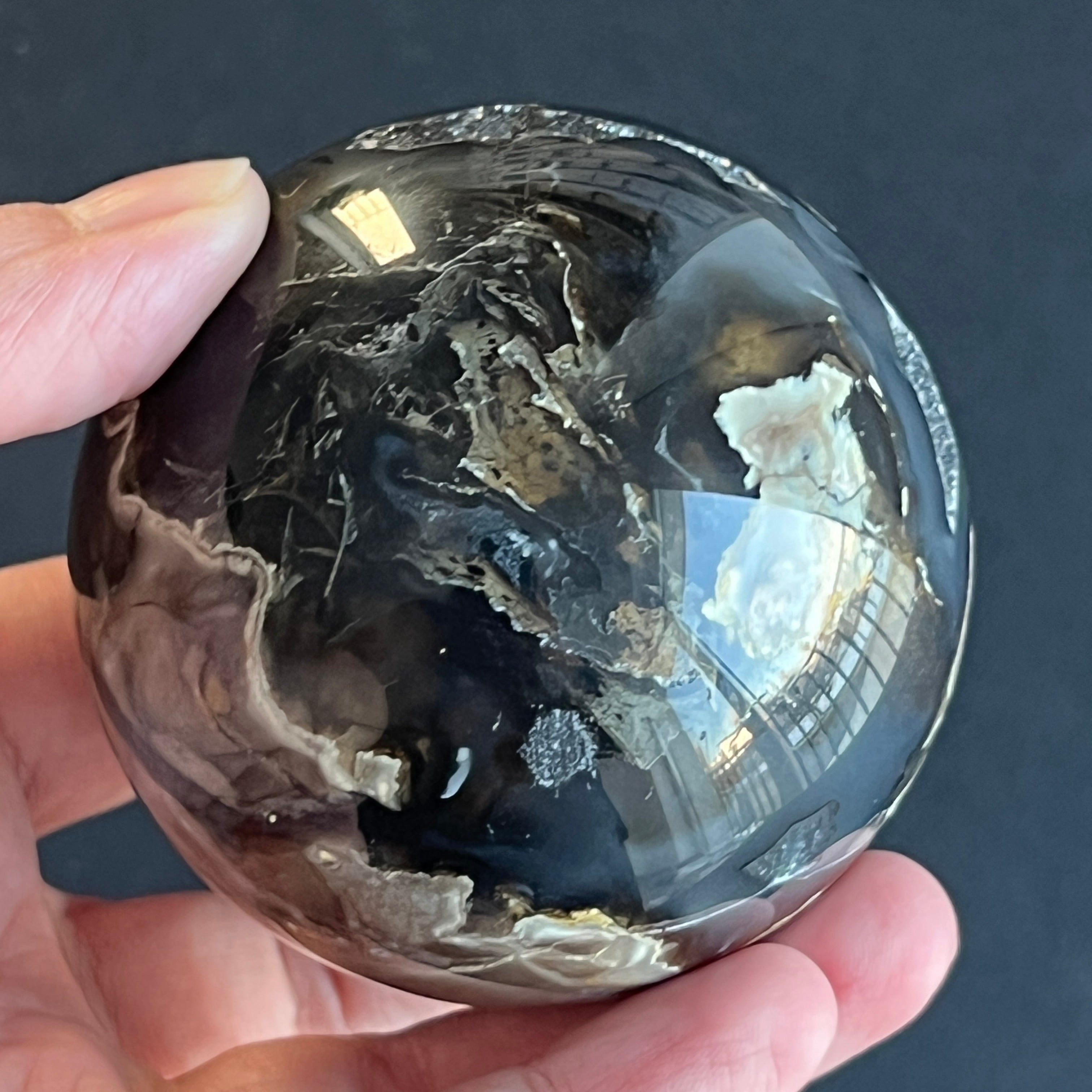 • Kő: természetes fekete achát – teljesen csiszolt gömb