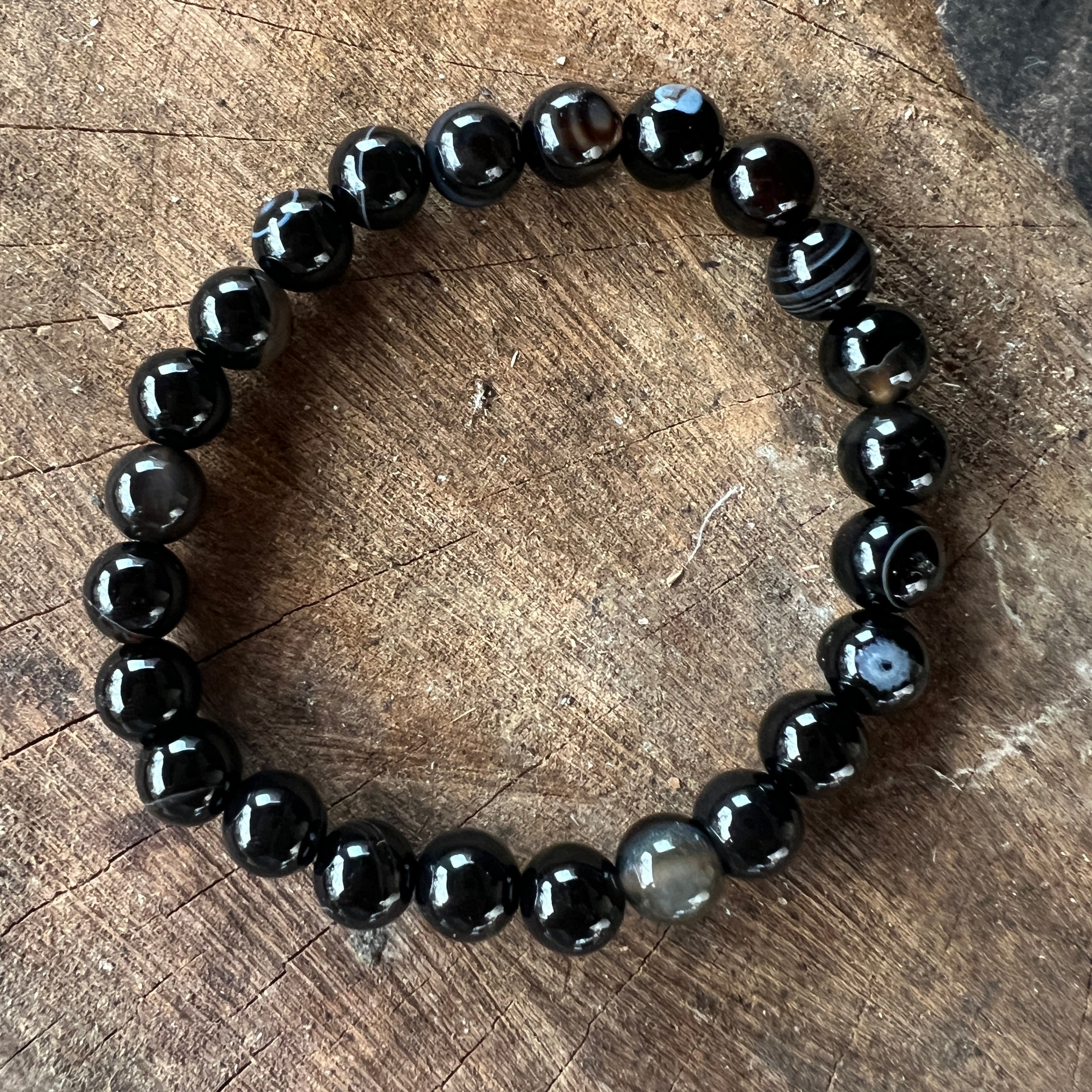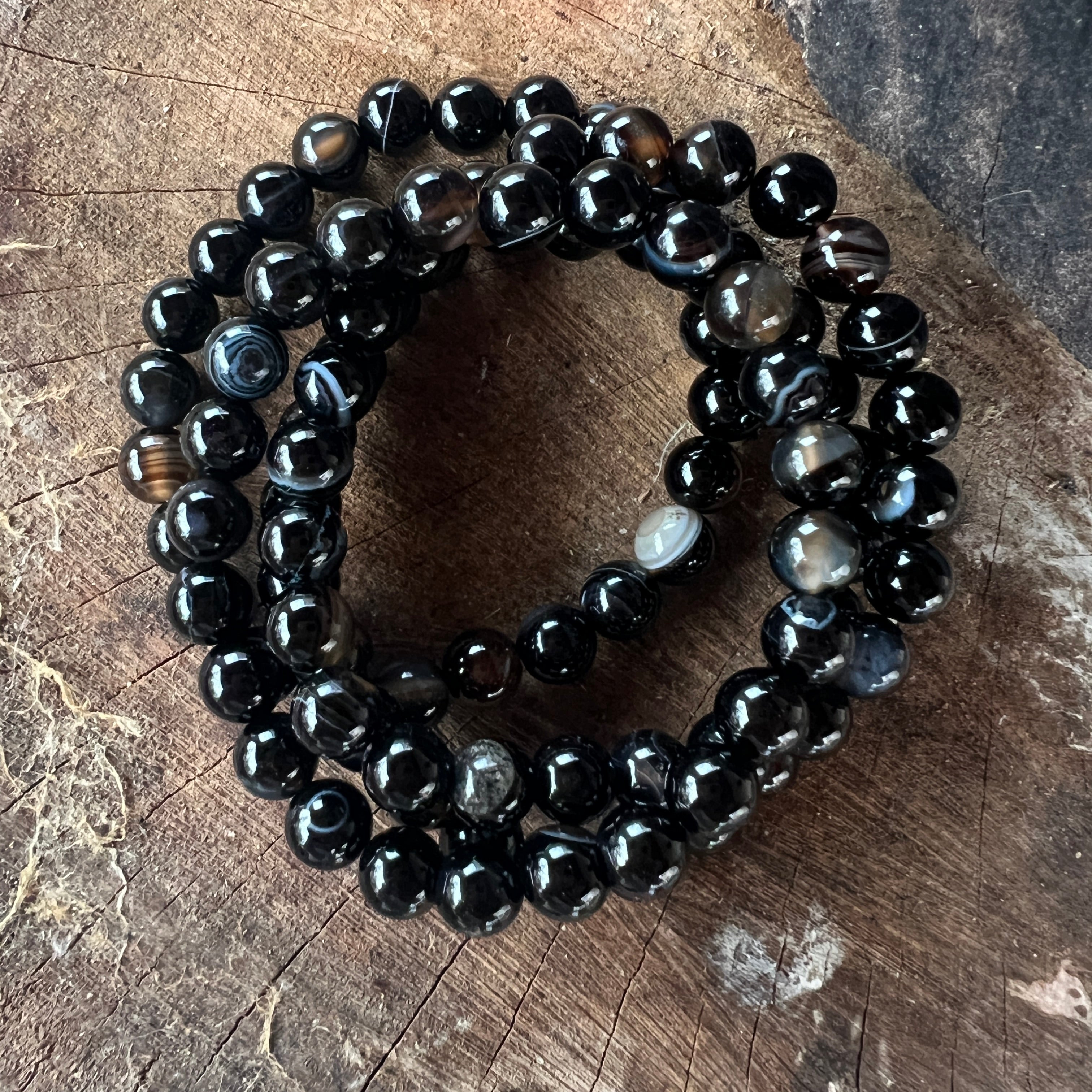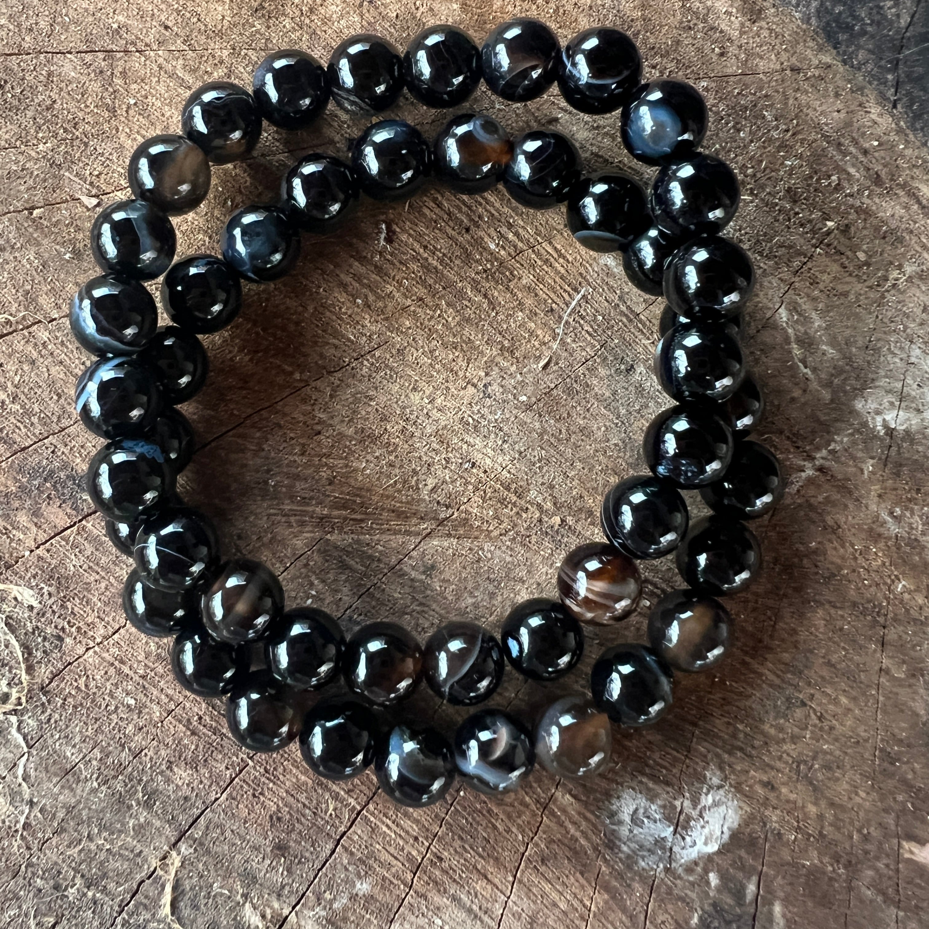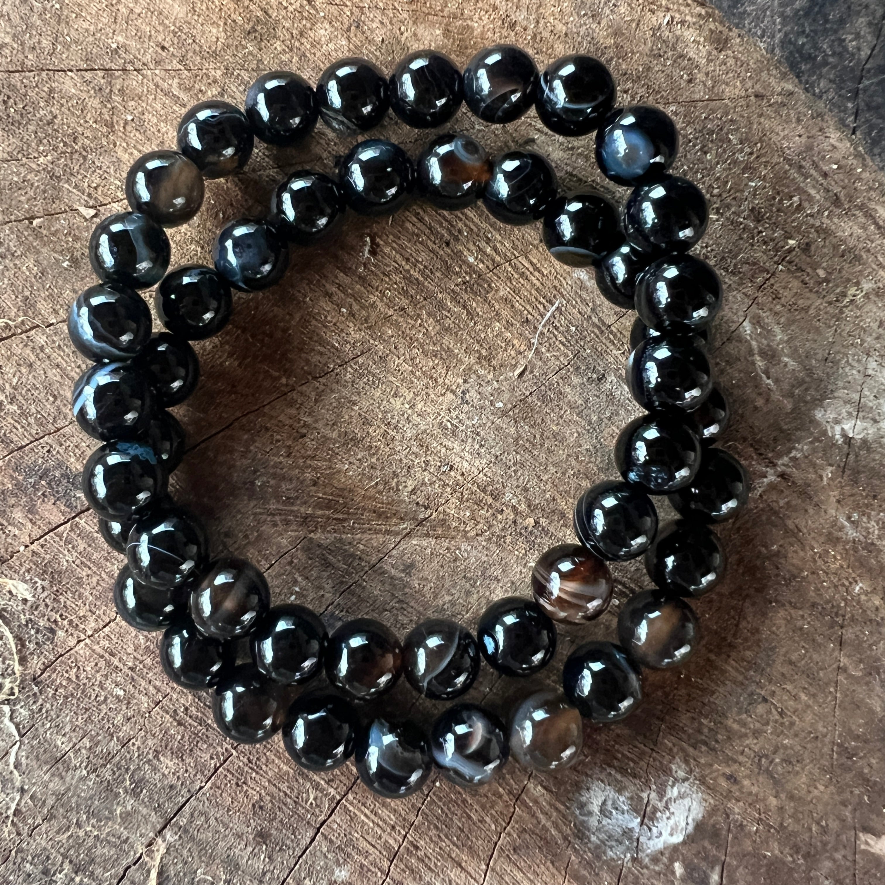 Descriere - Fekete csíkos achát karkötő 8 mm