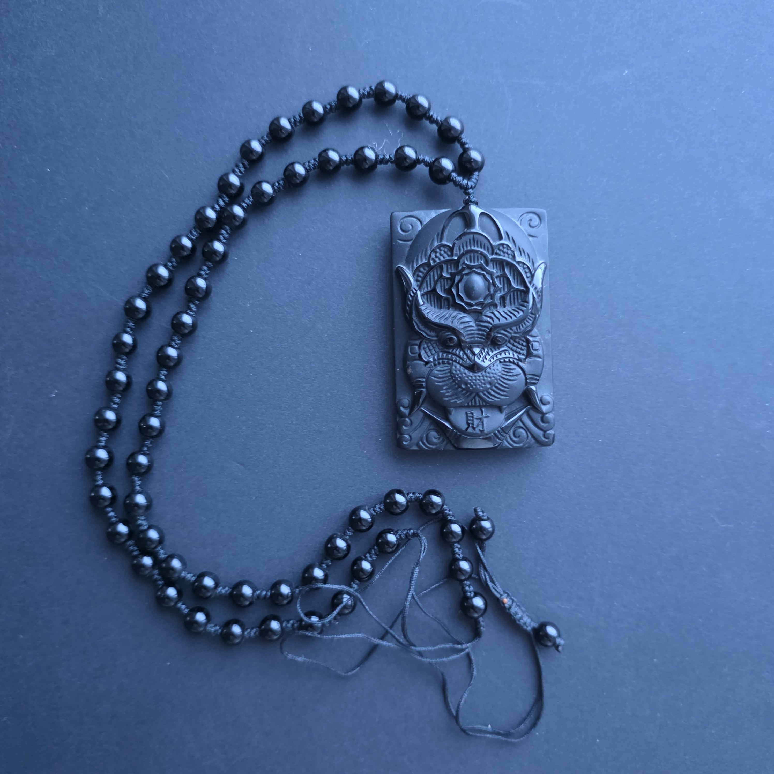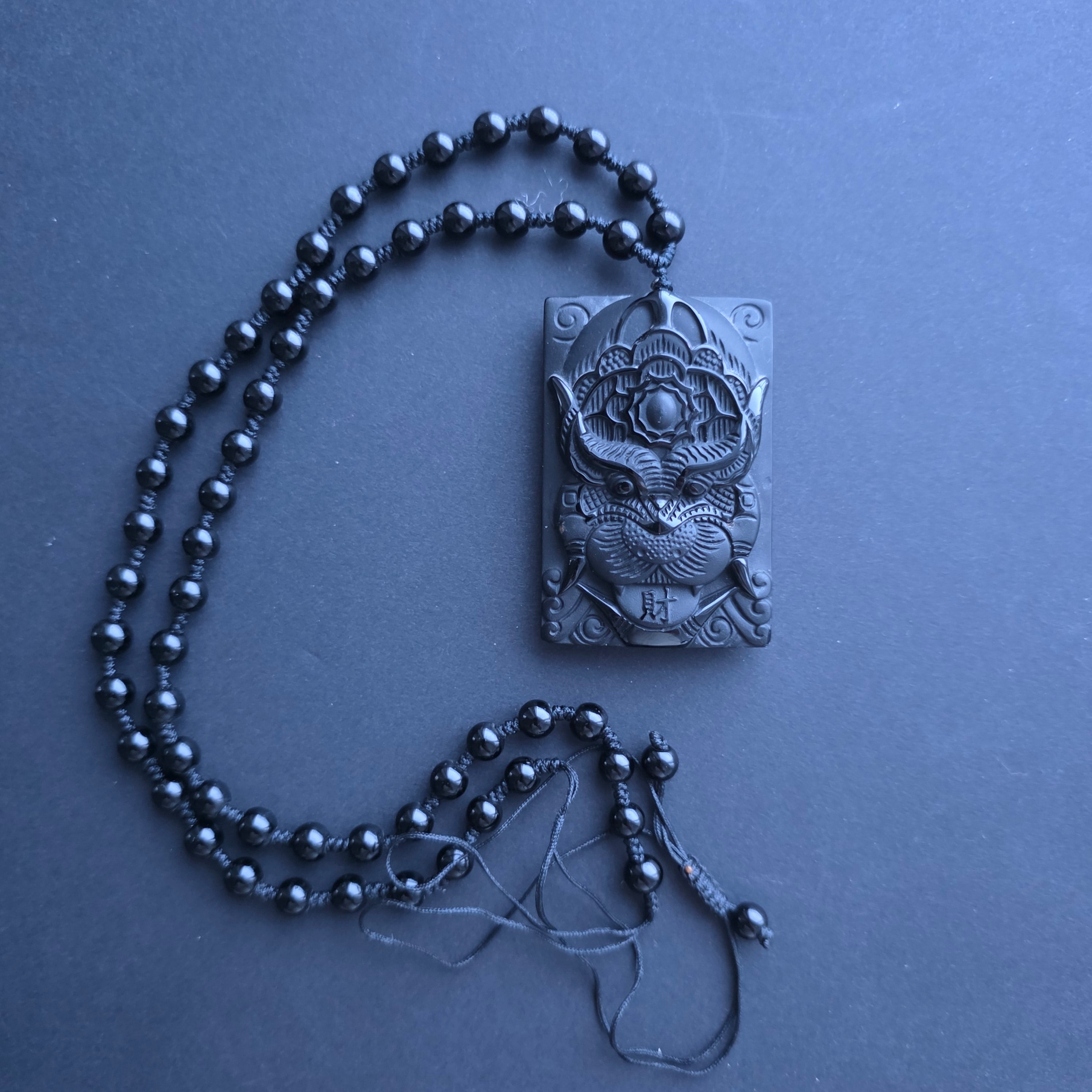 Leírás - Fekete obszidián amulett nyaklánc | Sárkány