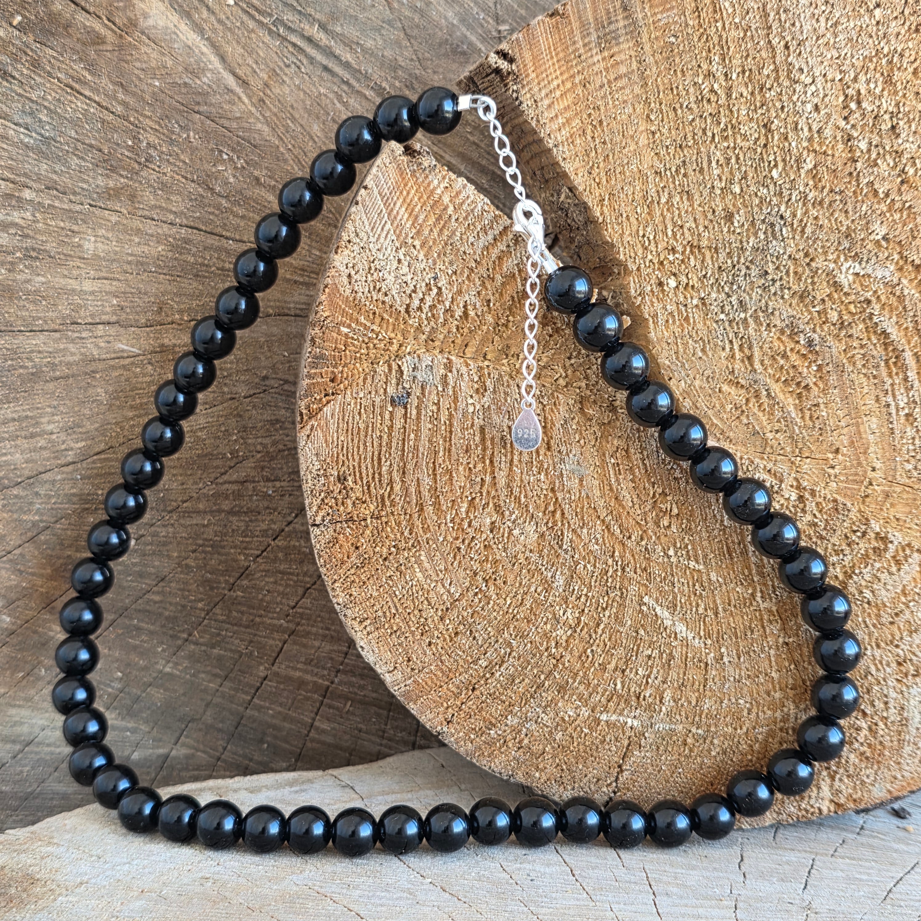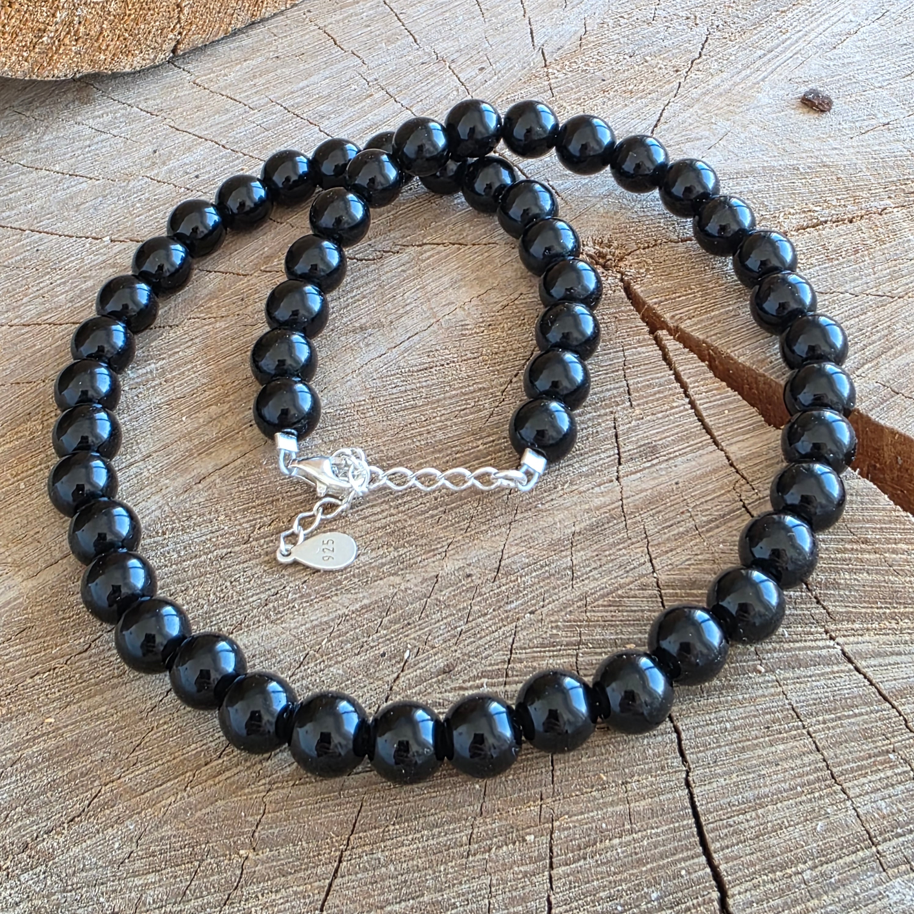Anyagok: természetes fekete obszidián, 6 mm-es gyöngyök, 925-ös ezüst