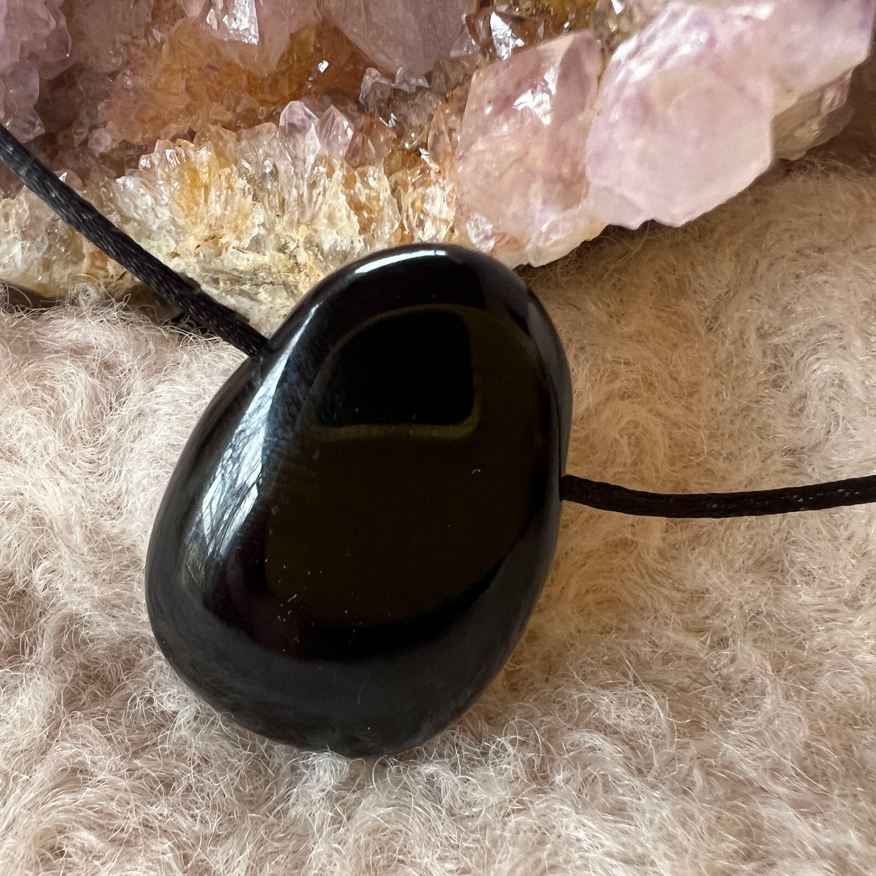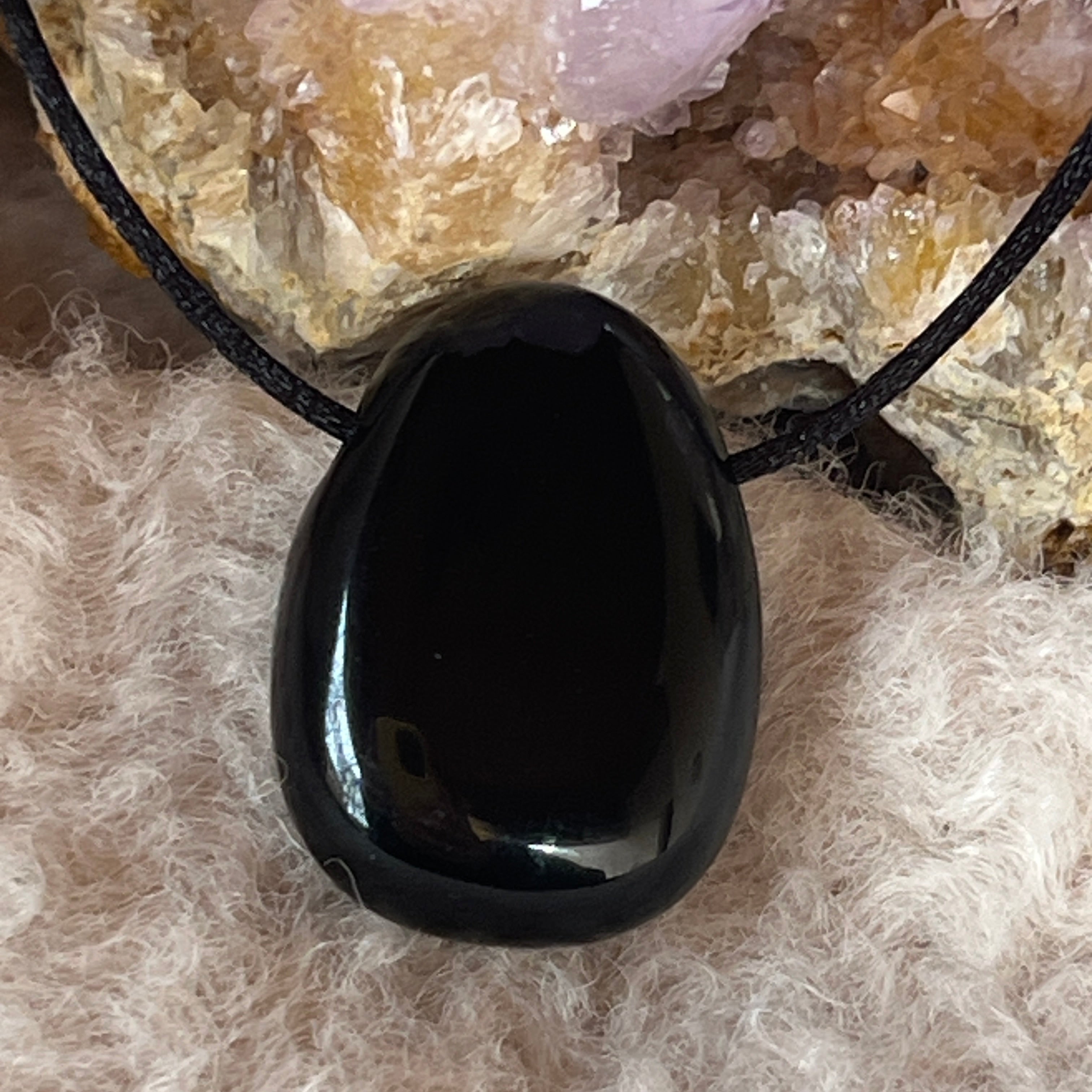 Ez a természetes fekete onixból készült csepp alakú csiszolt medálos nyaklánc egyszerre elegáns és visszafogott. Intenzív fekete árnyalata, diszkrét fényével klasszikus és időtlen hatást kölcsönöz a medálnak.