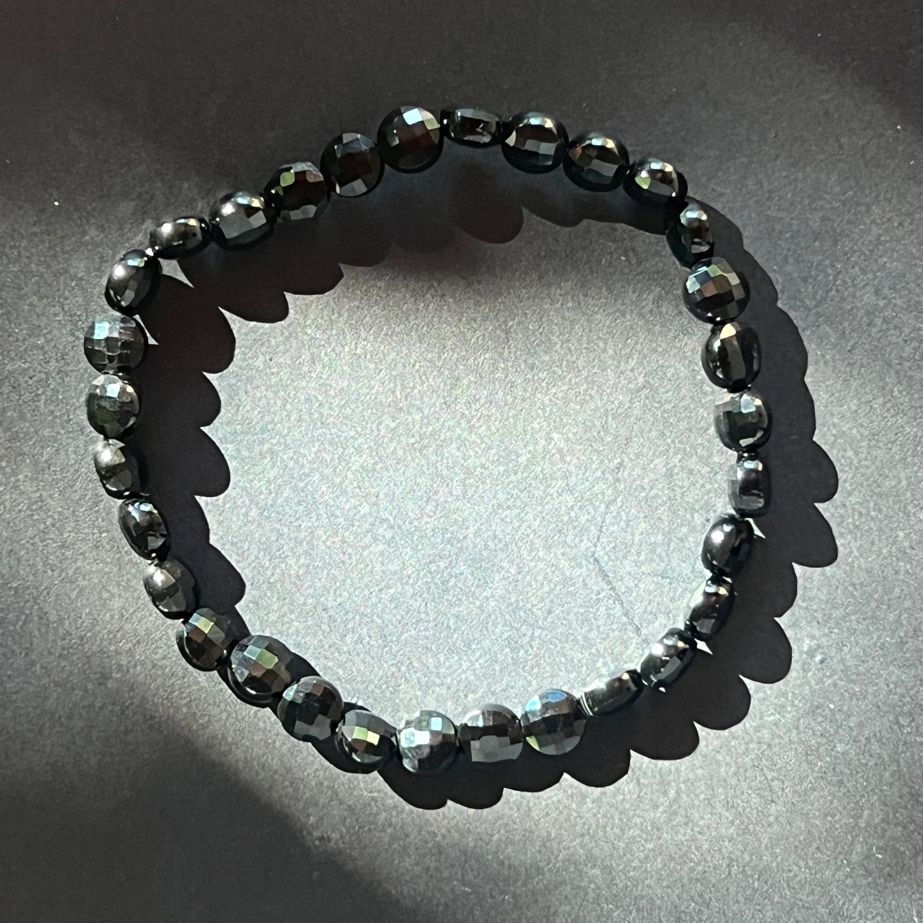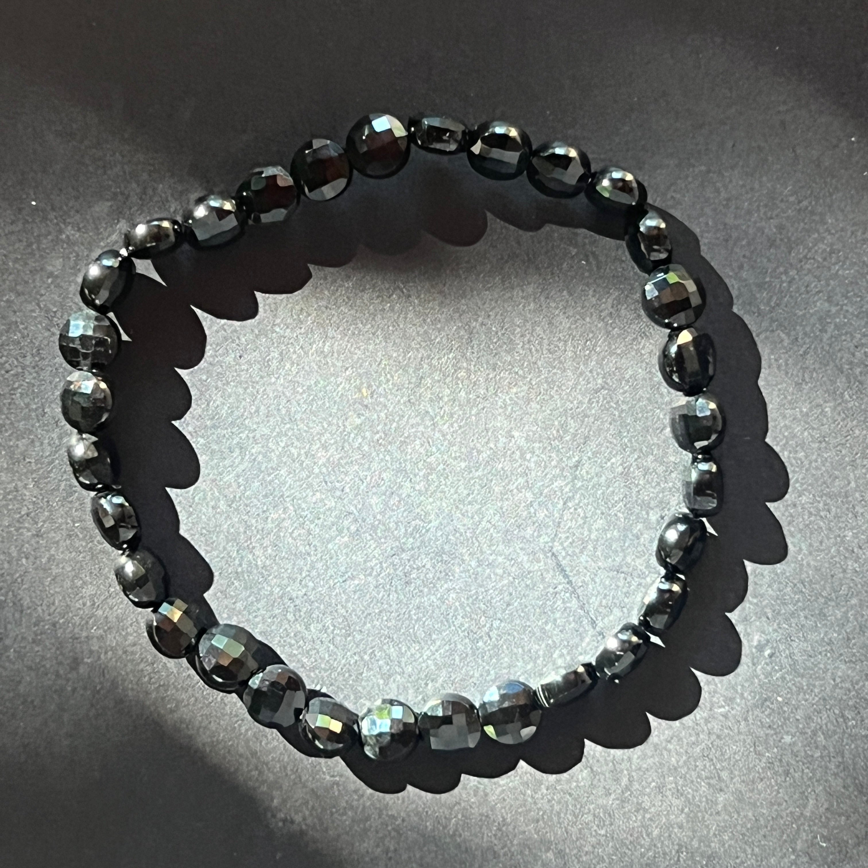 Descriere - Fekete ónix csiszolt lemezes karkötő 6 mm