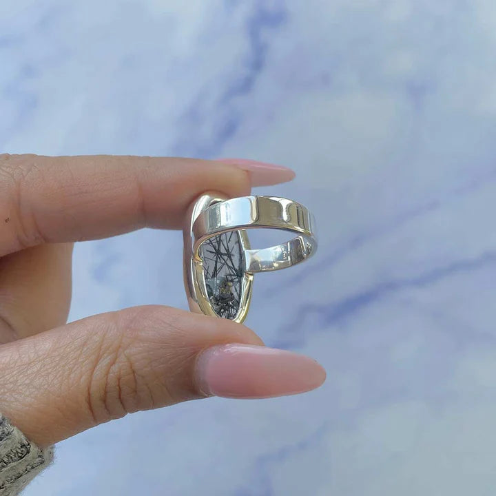 Fekete rutilkvarc ezüst gyűrű | Modell 5