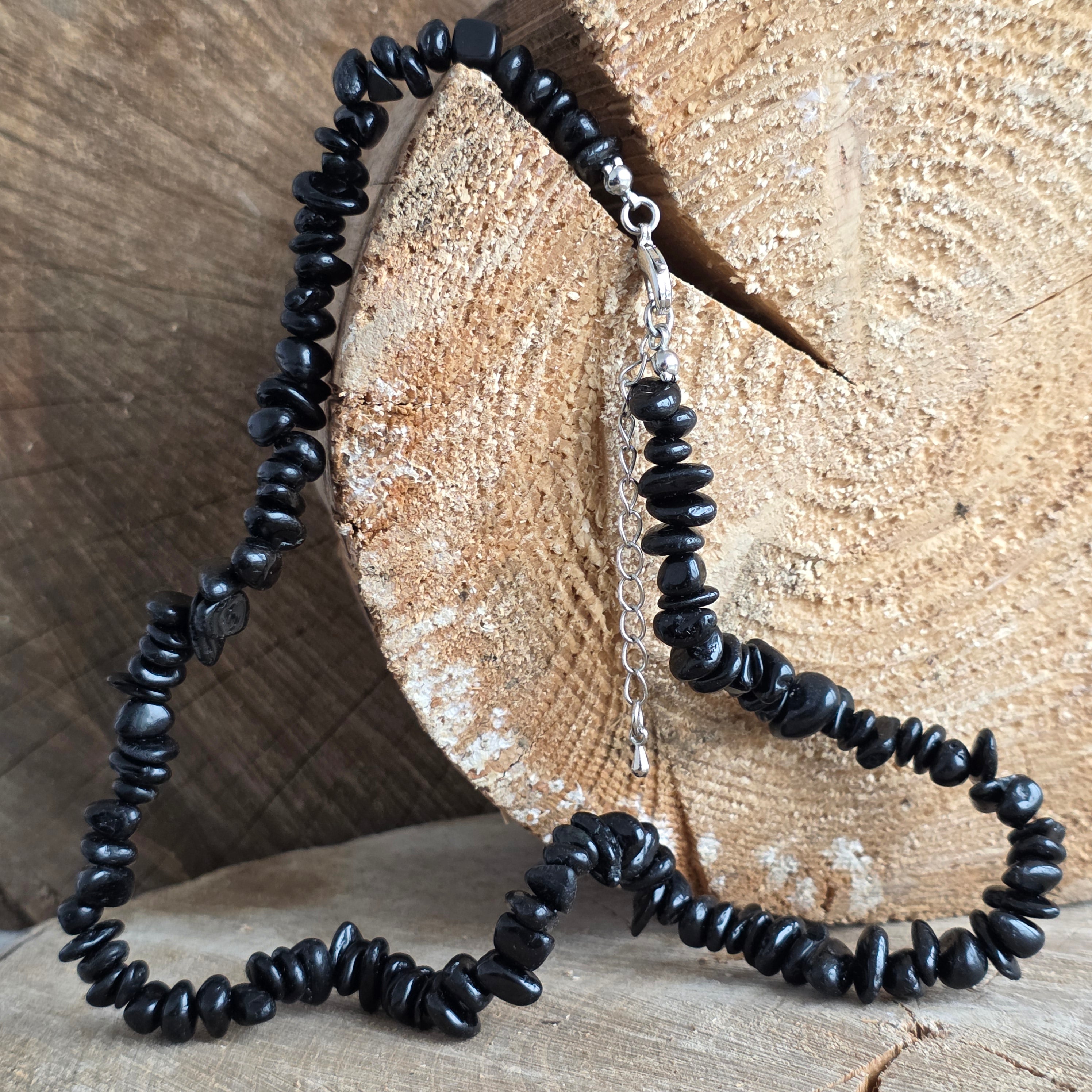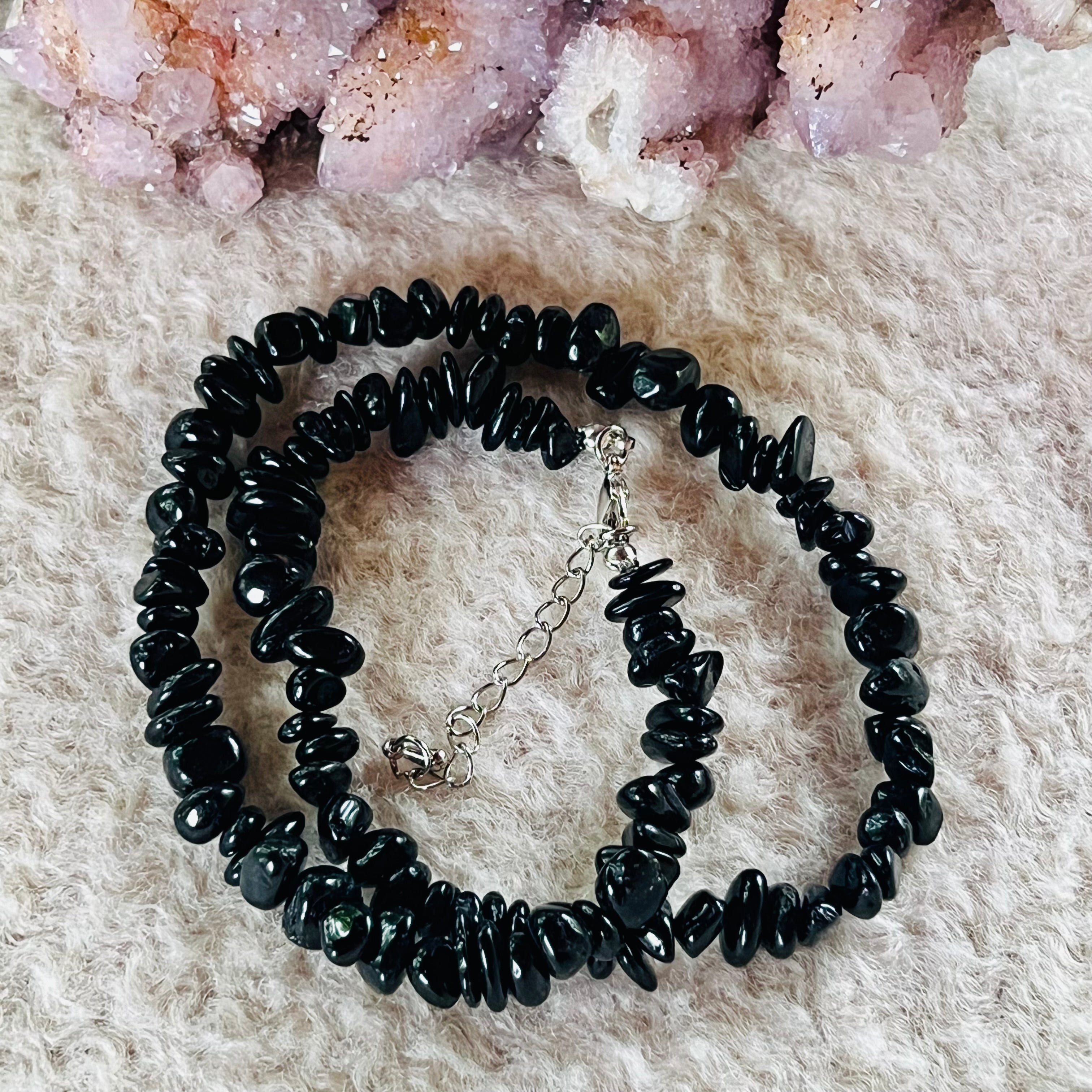 Fekete turmalin chips nyaklánc, kb. 45 cm hosszú