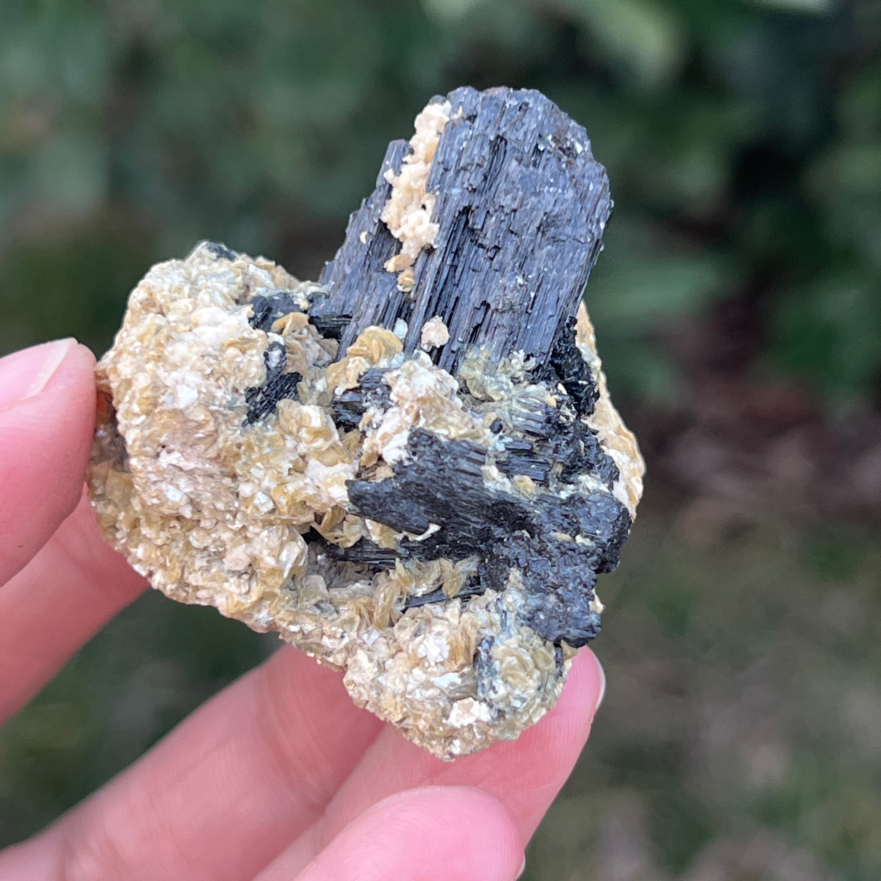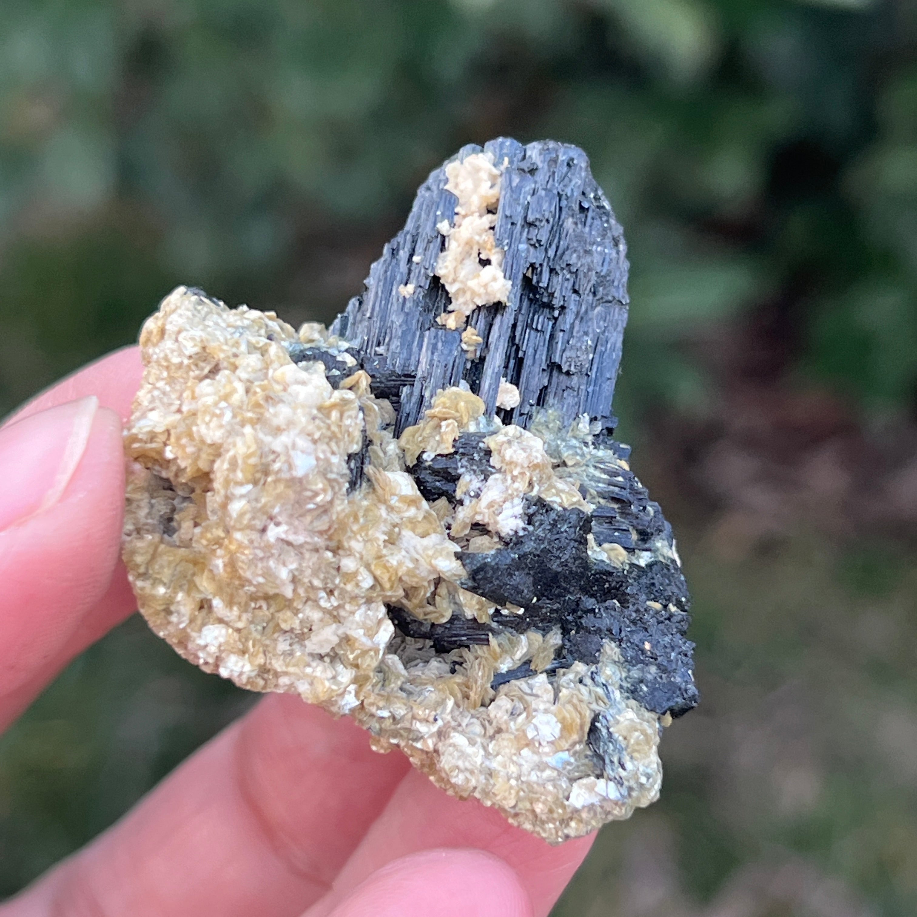 Descriere - Fekete turmalin és vermikulit klaszter Erongo m1-ből