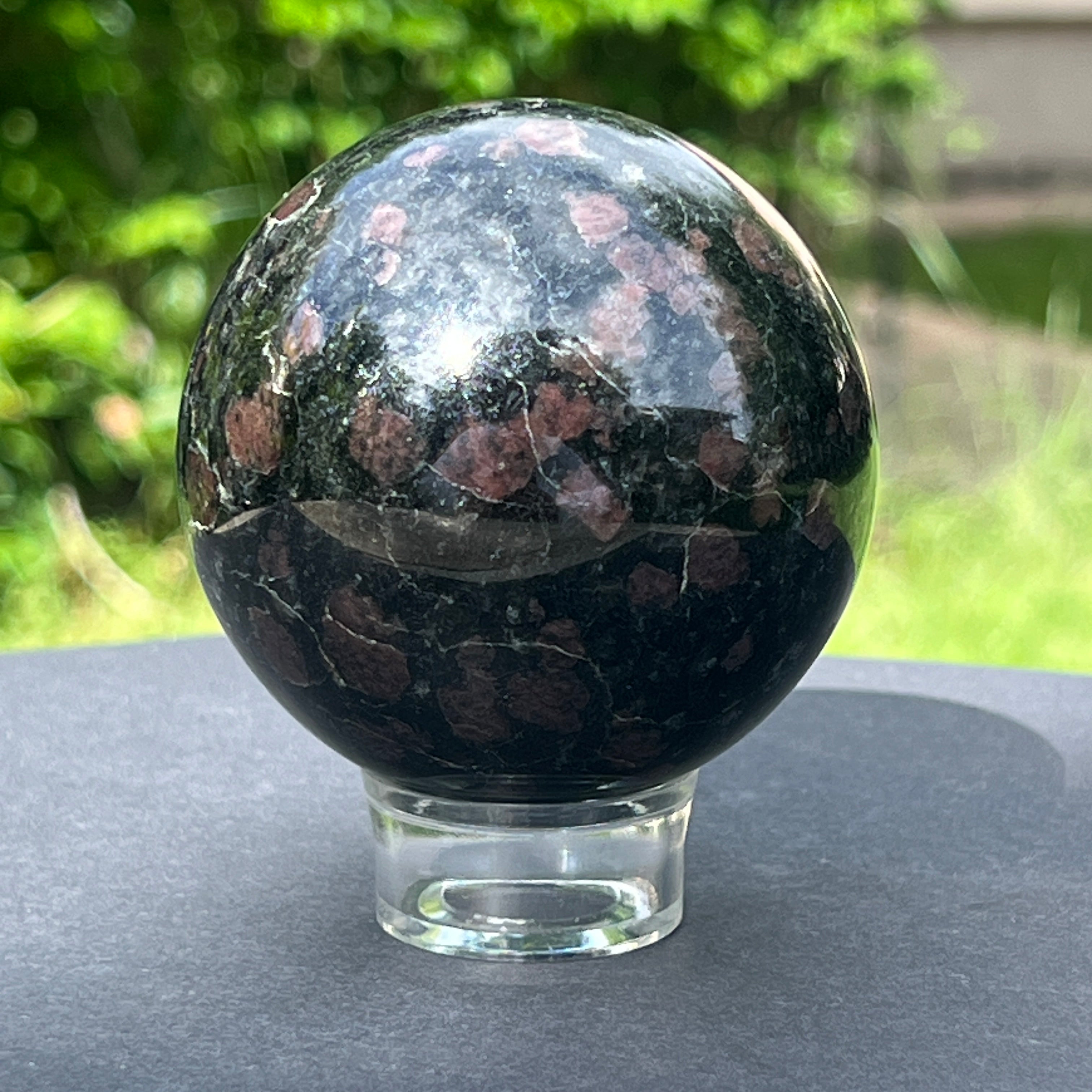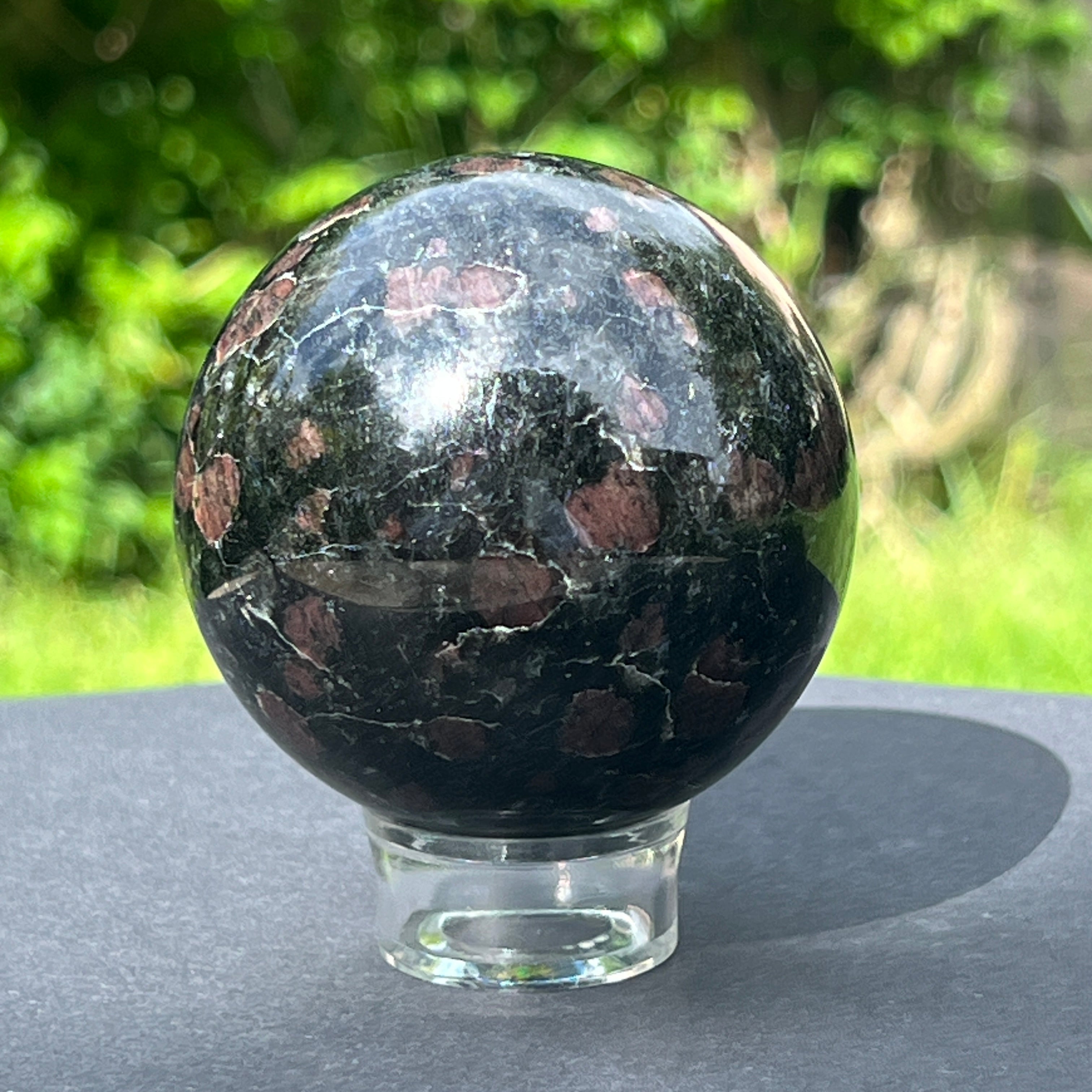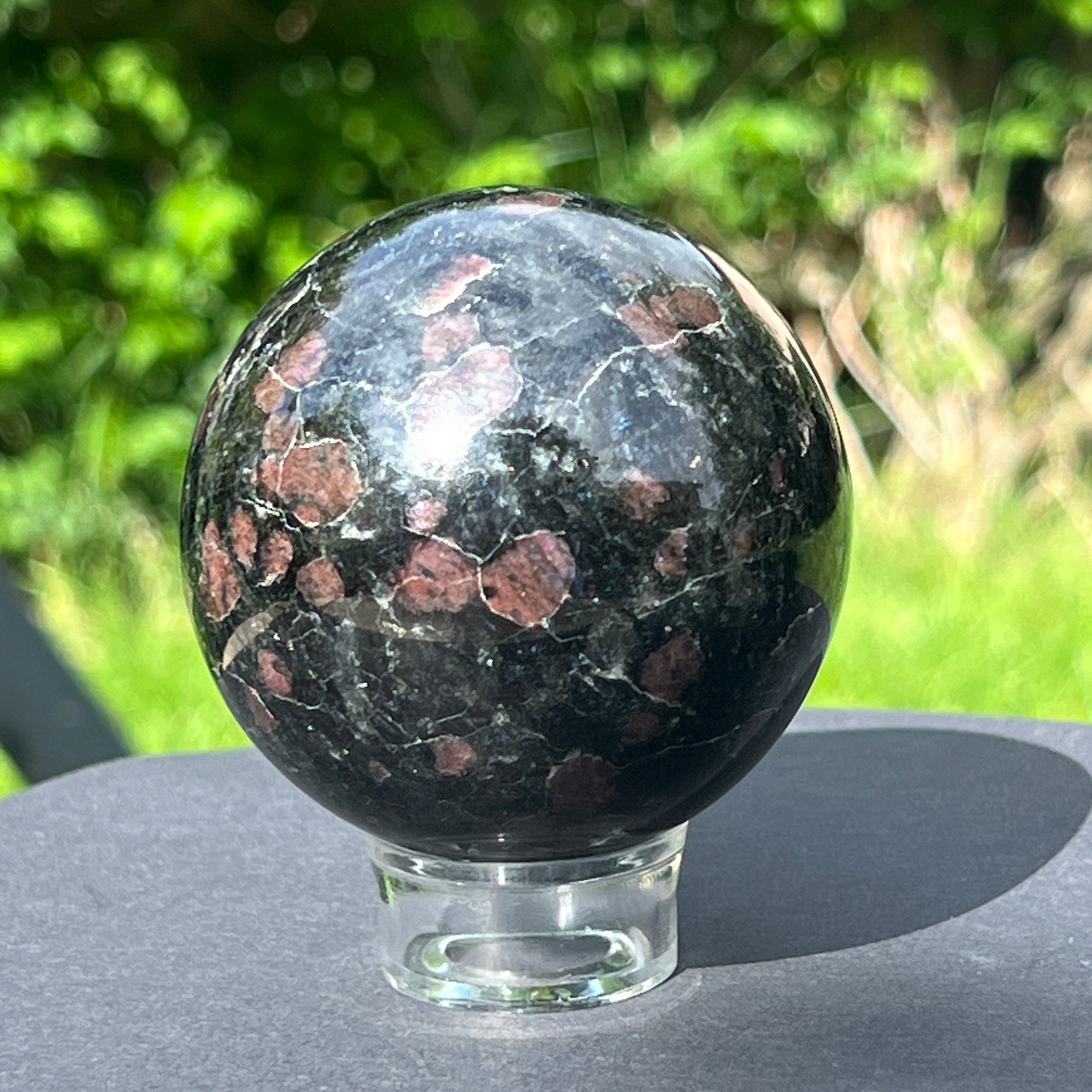 Descriere - Fekete turmalin gömb gránátmintával 1