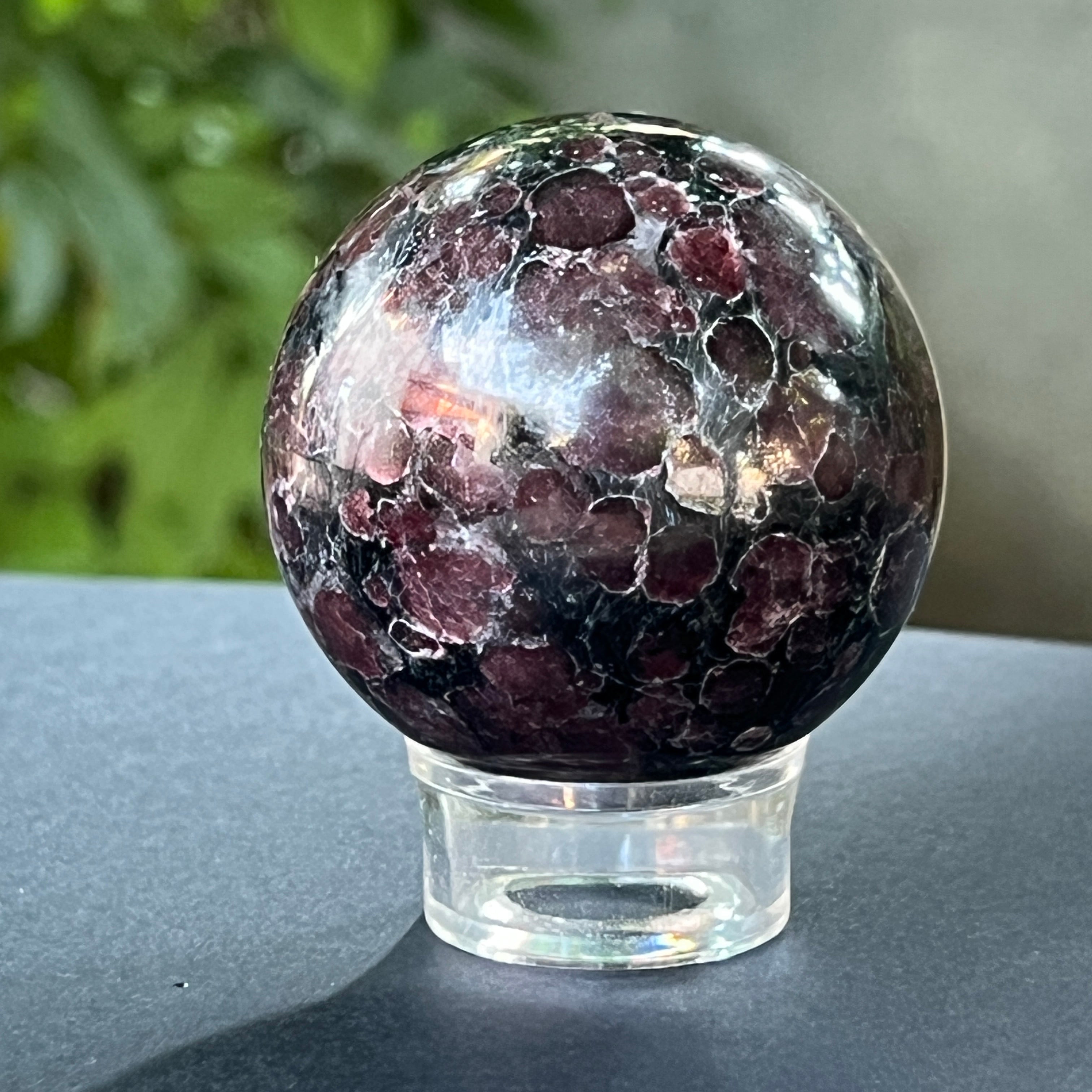 Descriere - Fekete turmalin gömb gránátmintával 4
