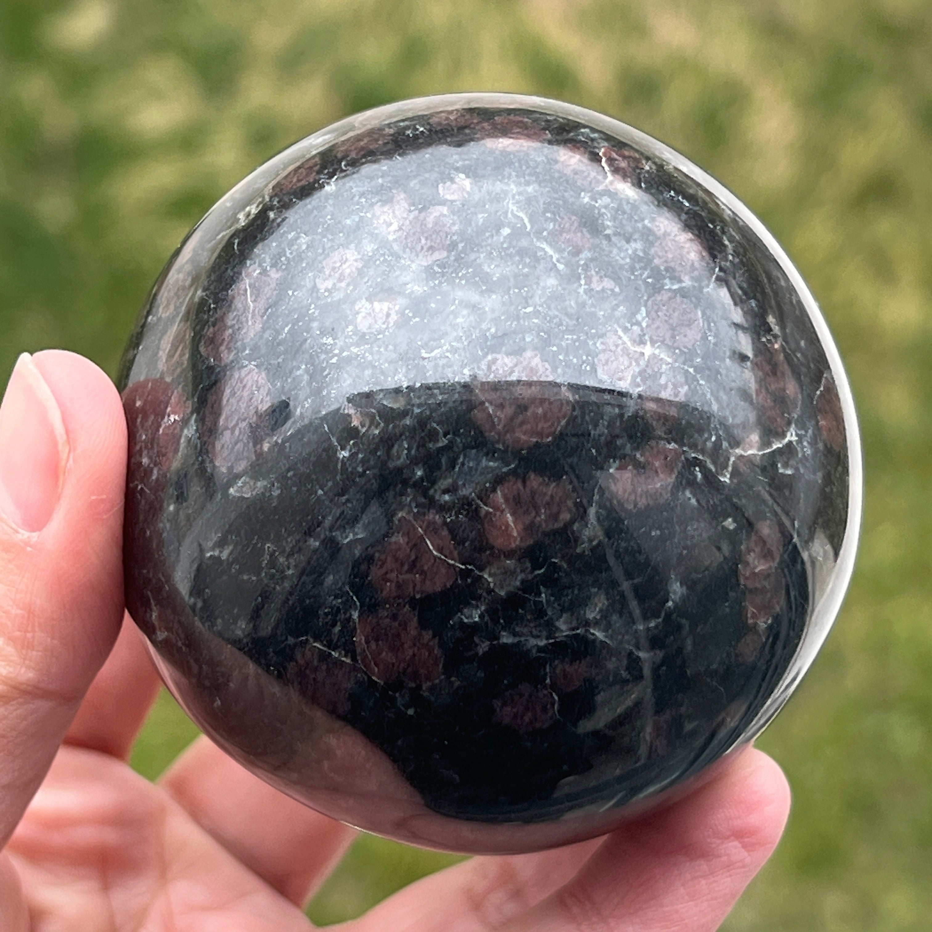 Fekete turmalin gömb gránáttal | Model 7
