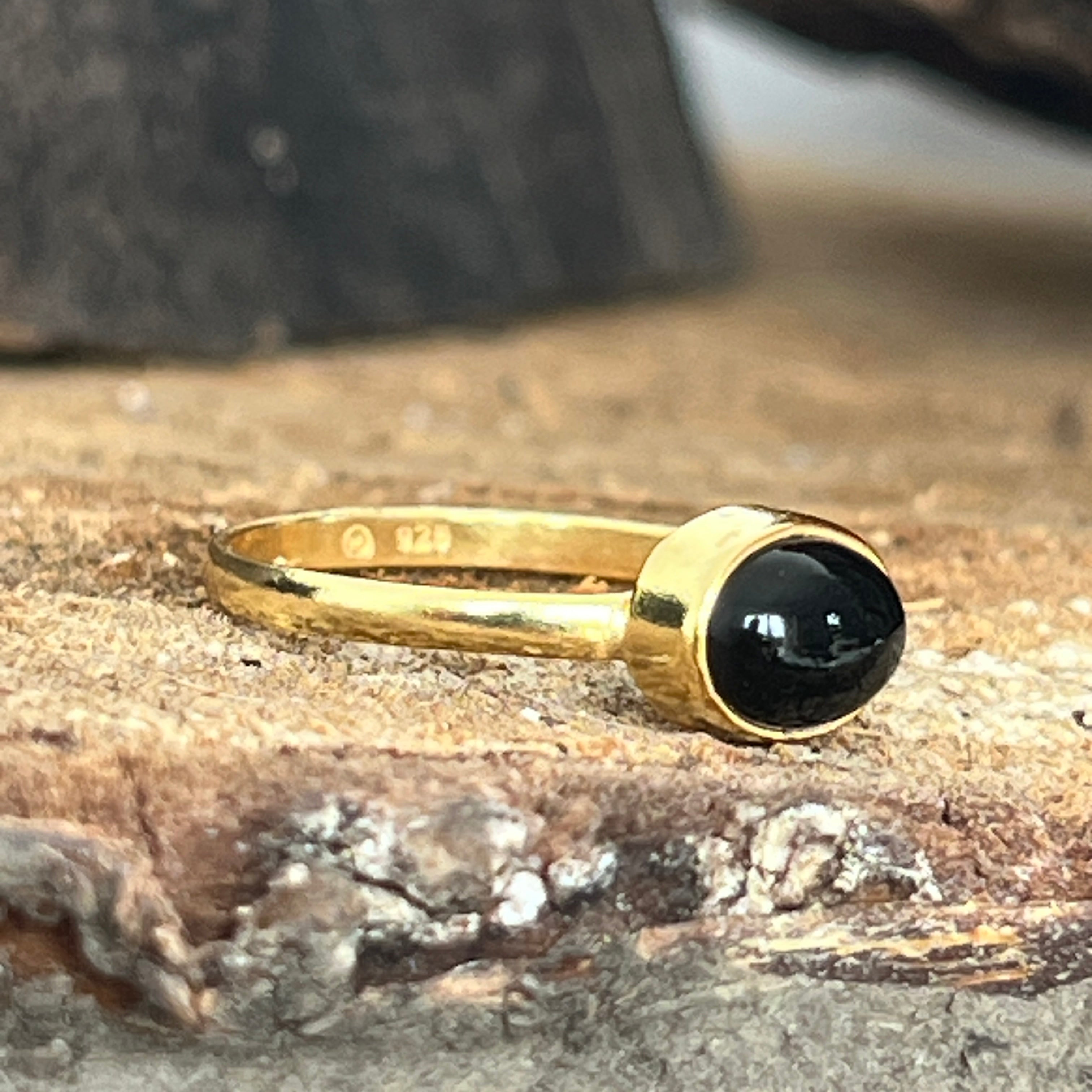 Ez a fekete turmalin gyűrű jellegzetes minimalista és elegáns designnal rendelkezik, amelyben a természetes kő kapja a központi szerepet. A fekete turmalint védelem és energetikai stabilitás kövénektekintik, gyakran viselik a negatív energiák elhárítására és a belső egyensúly megteremtésére.