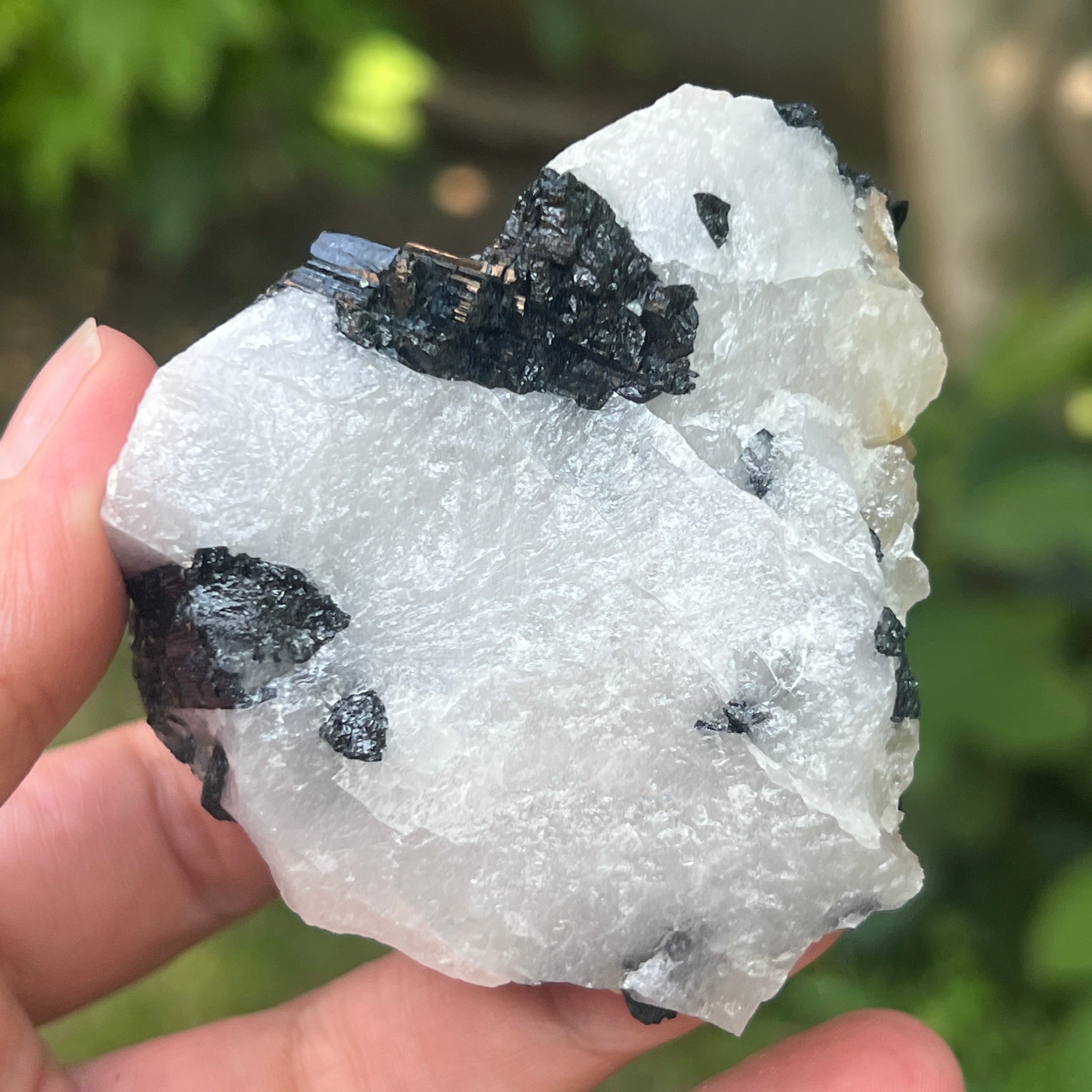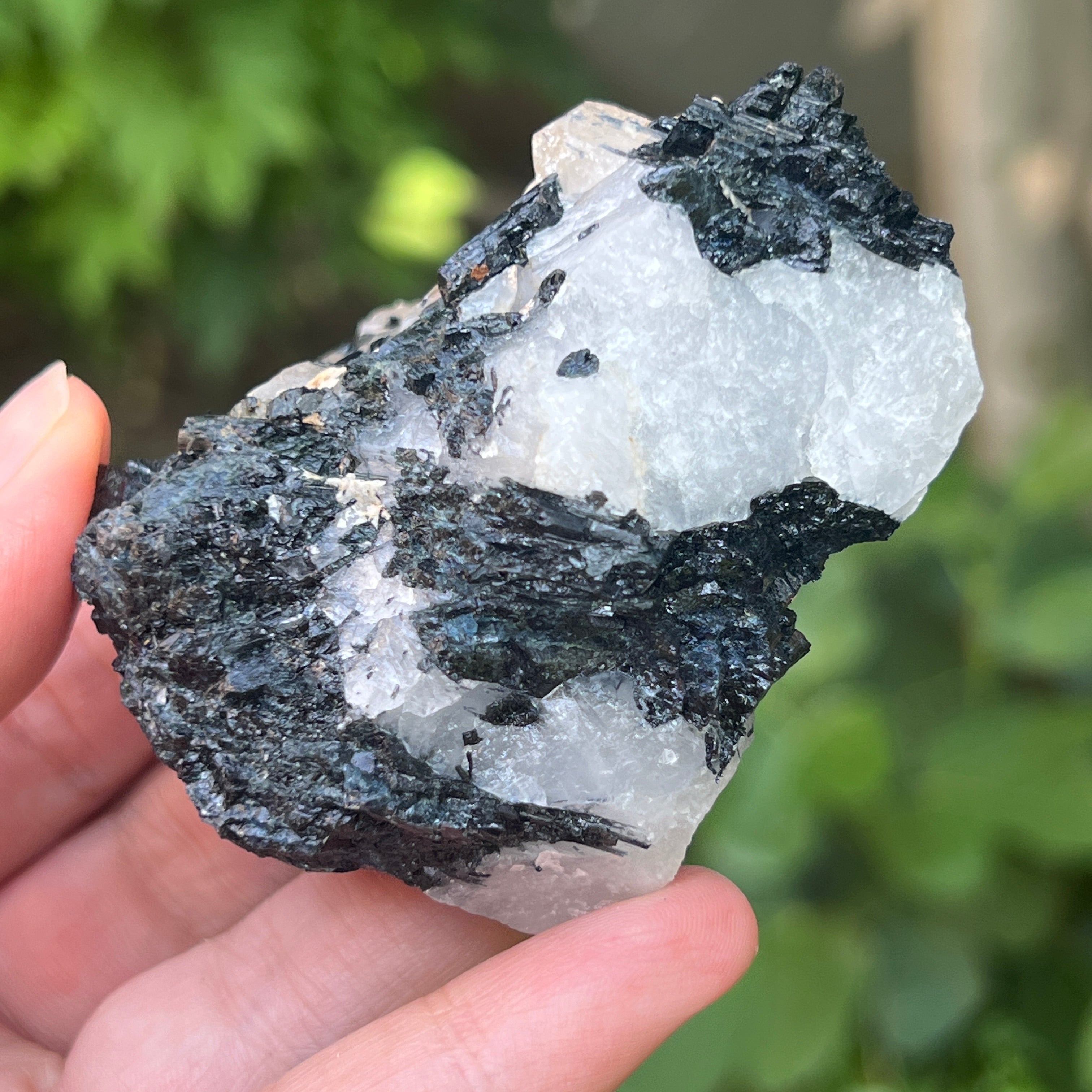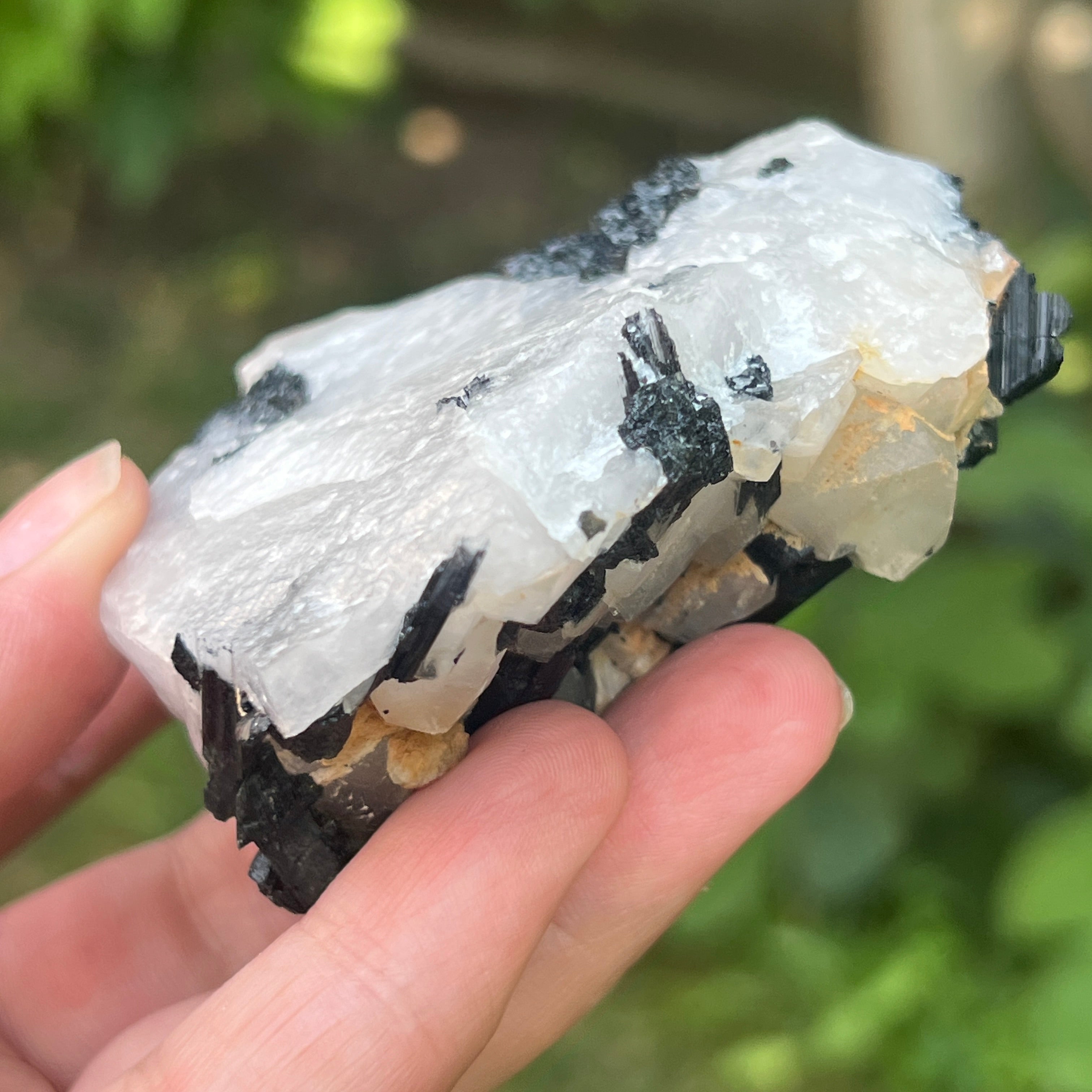 Ez a természetes darab értékes kettősséget hordoz: a fekete turmalin elnyeli és átalakítja a negatív energiákat, energetikai pajzsként szolgál a stressz, az energiatolvajlás vagy az elektromágneses hullámok ellen. Ugyanakkor a holdkő belső tisztaságot, fokozott intuíciót és érzelmi egyensúlyt hoz, gyakran társítják a szent női energiához és a holdciklusokhoz.