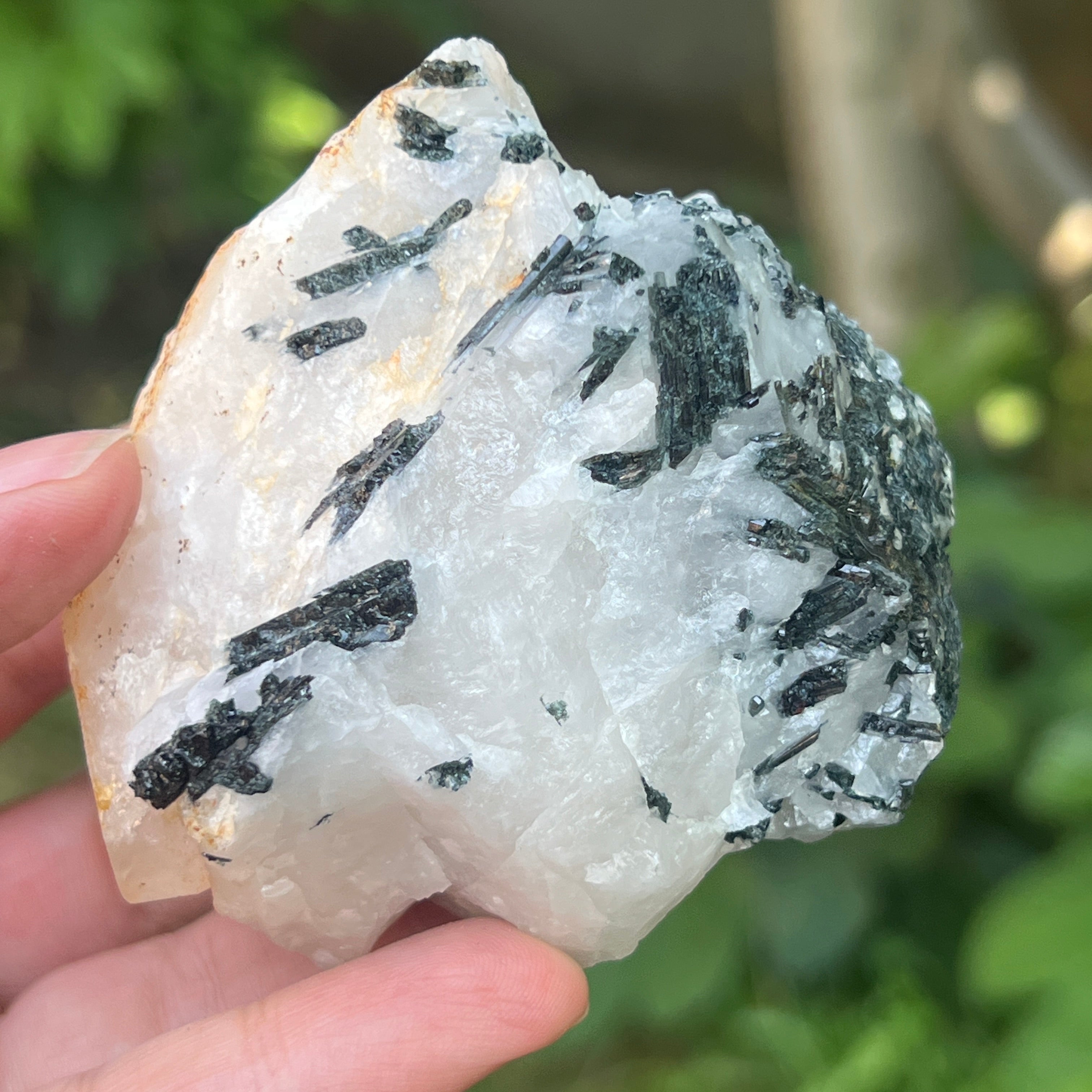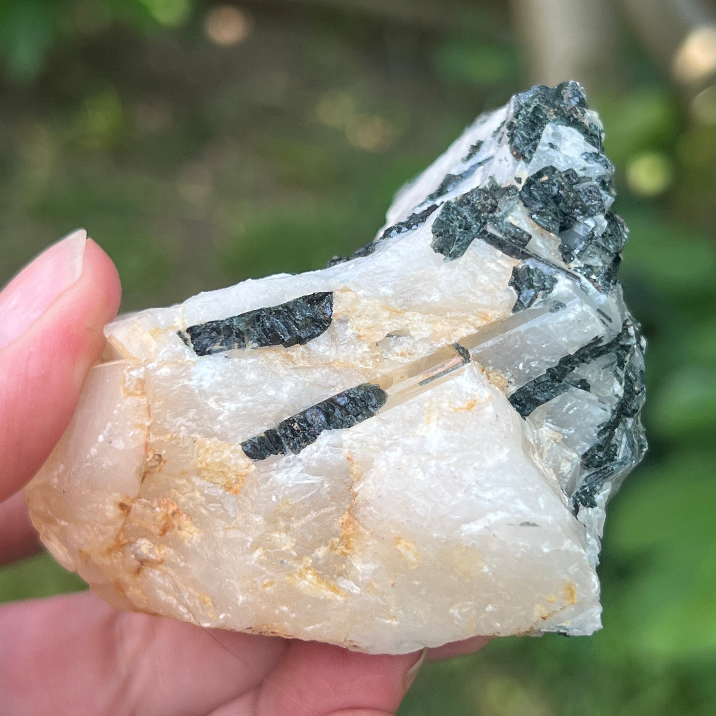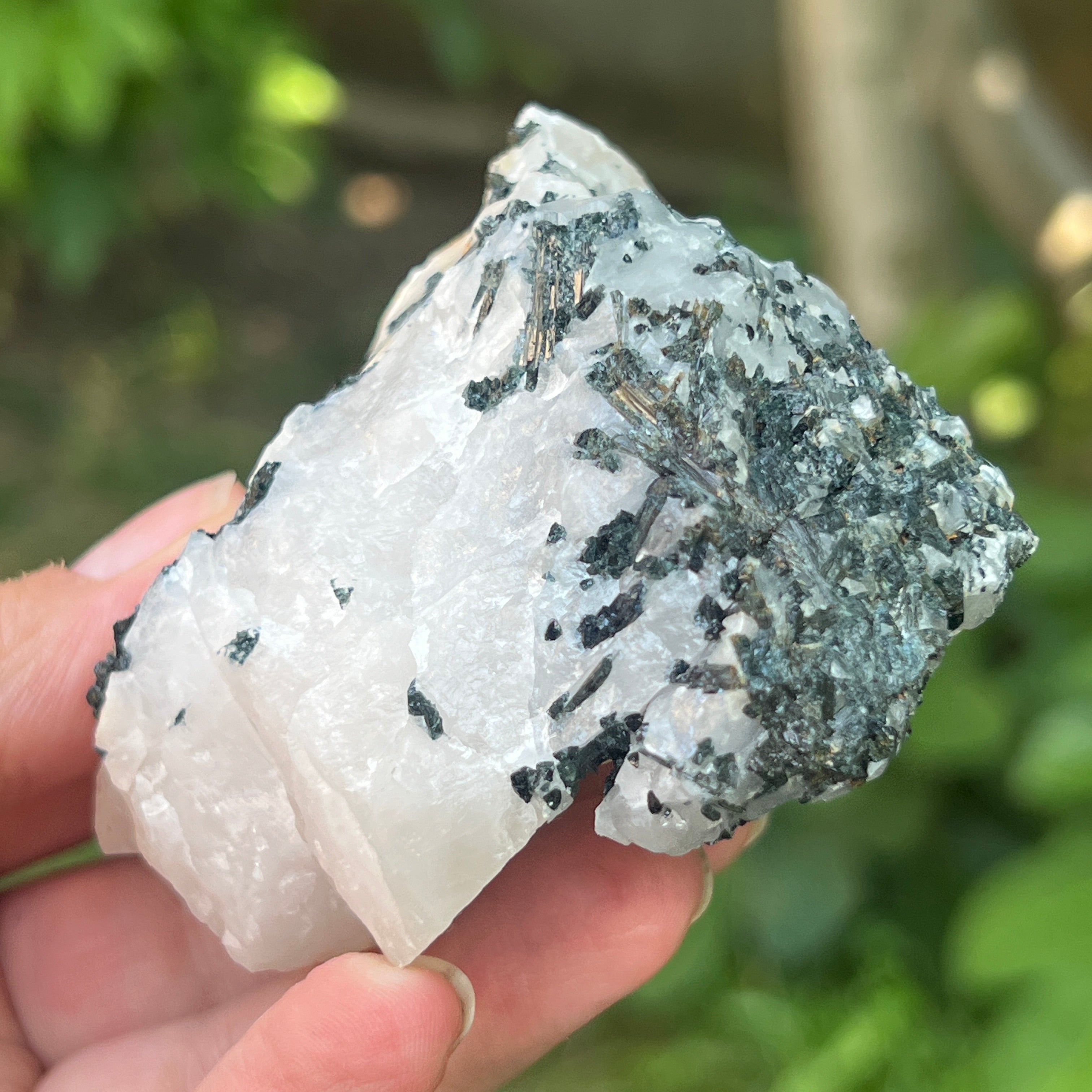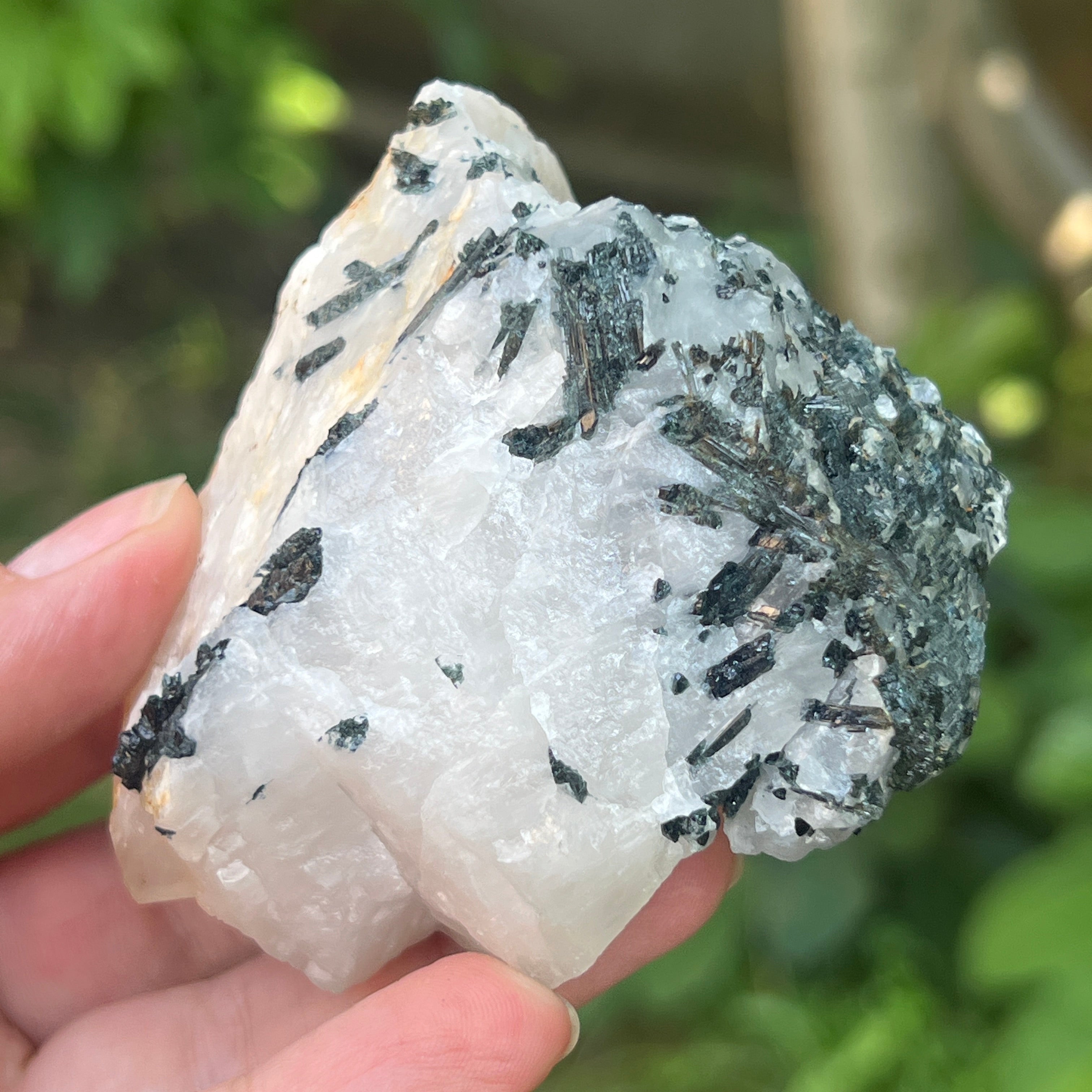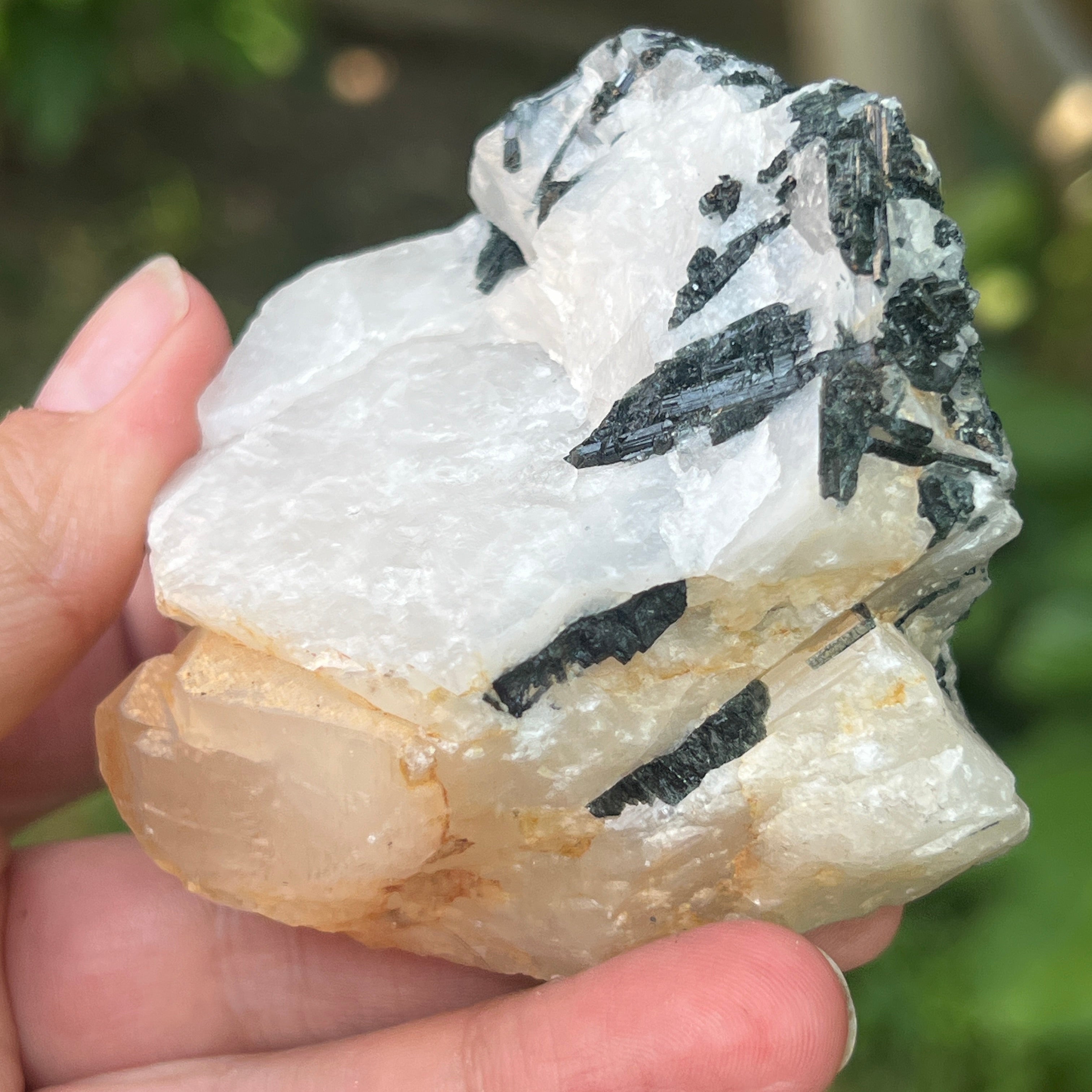 Ennek a ritka kőnek a szívében két ellentétes erő tökéletes harmóniában táncol – a fekete turmalin a földbe mélyen gyökerező védelmező energiájával, és a holdkő éteri rezgéseivel, amely az élet ciklikusságához és a női misztériumokhoz kapcsolódik. Együtt egy rendkívüli, majdnem alkimista kombinációt alkotnak, ahol a sötétség és a fény nem kizárják egymást, hanem ölelkeznek.