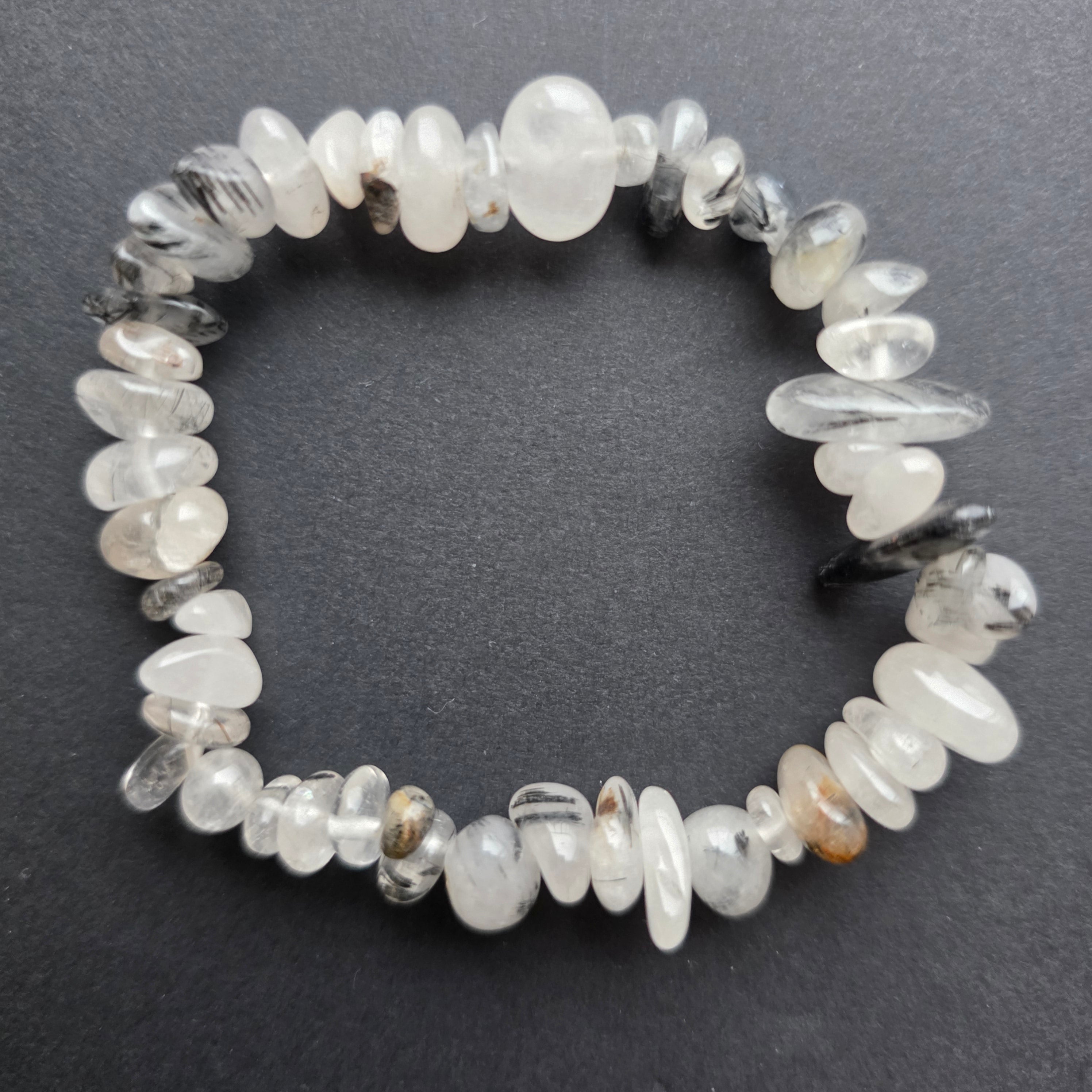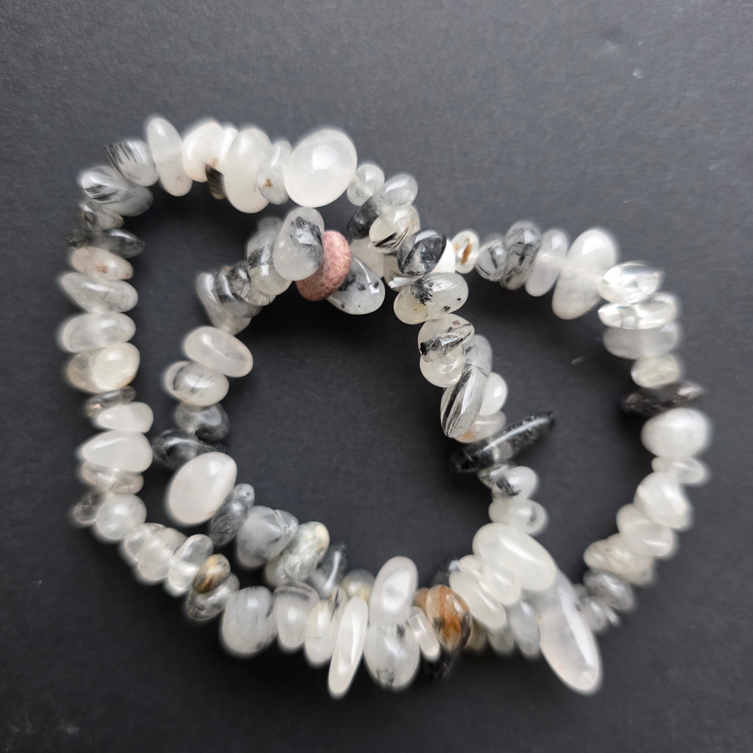 Leírás - Fekete turmalin karkötő kvarc chips-ekkel