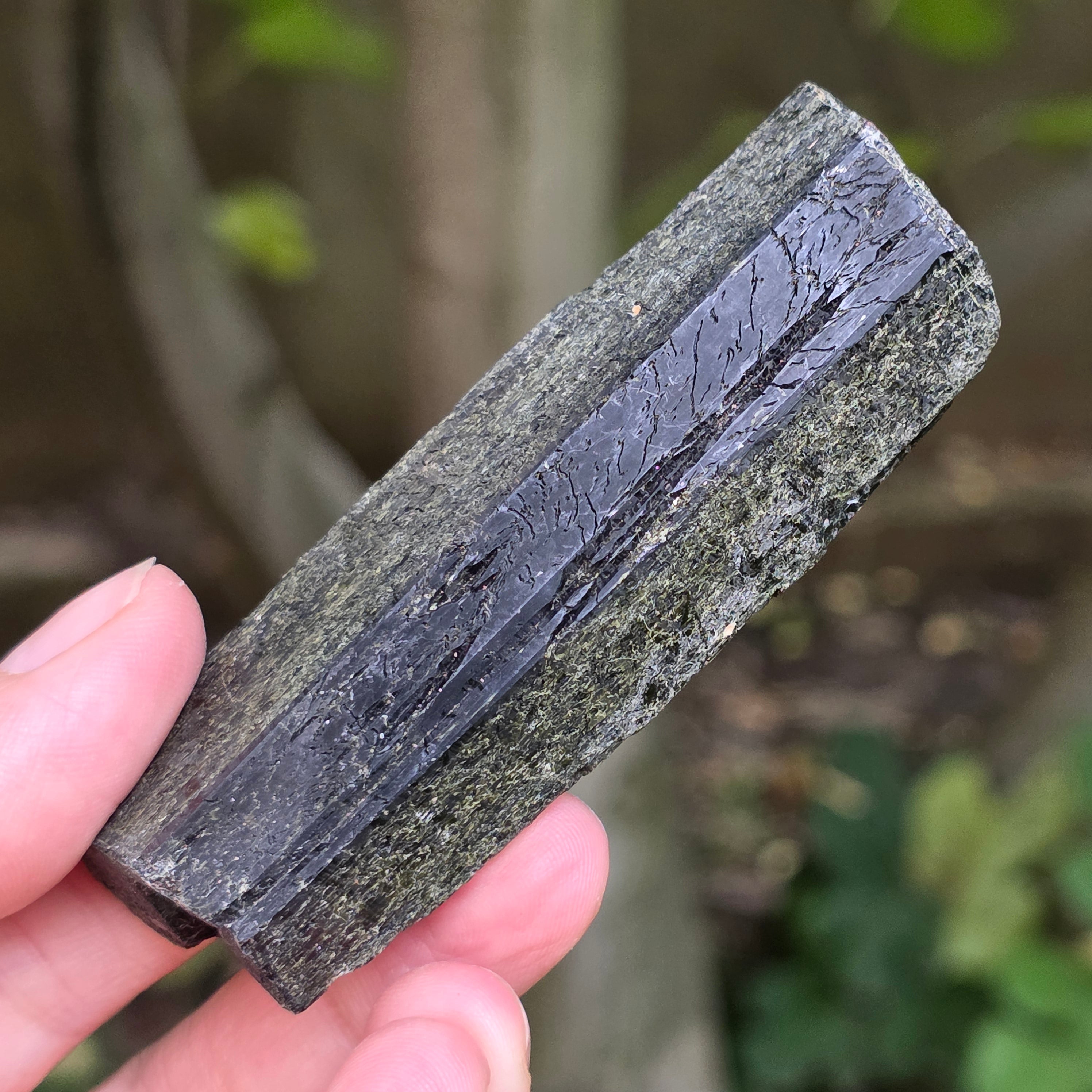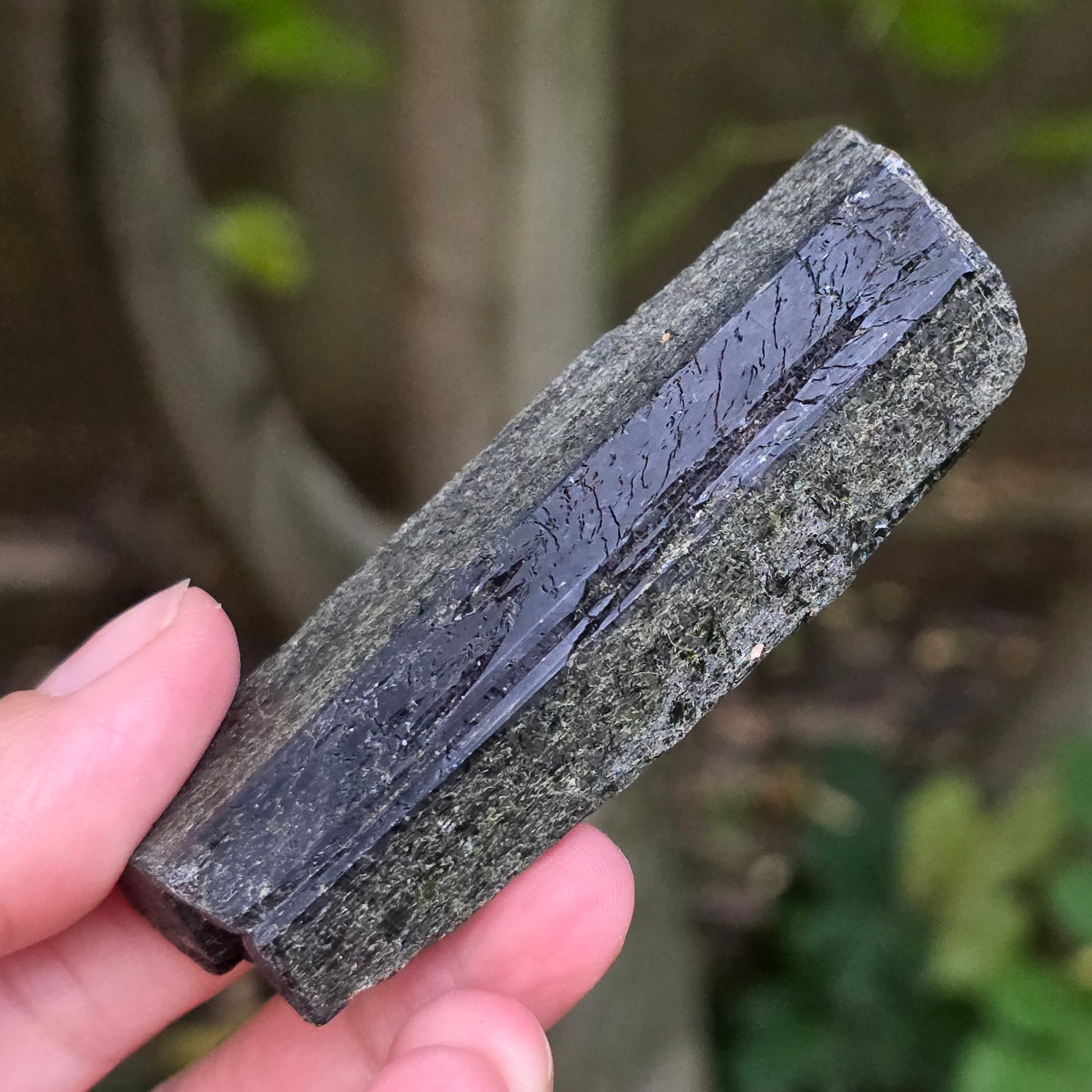 Fekete turmalin nyers kő L18, mérete: 8,5 * 2,5 * 2,5 cm