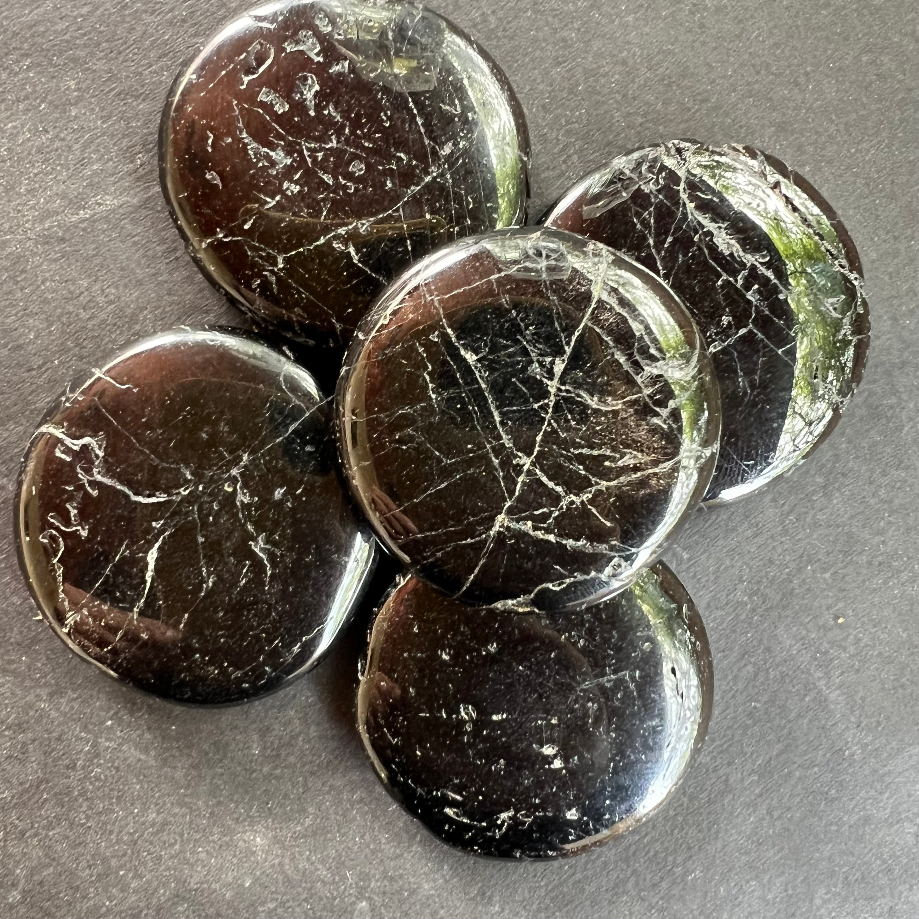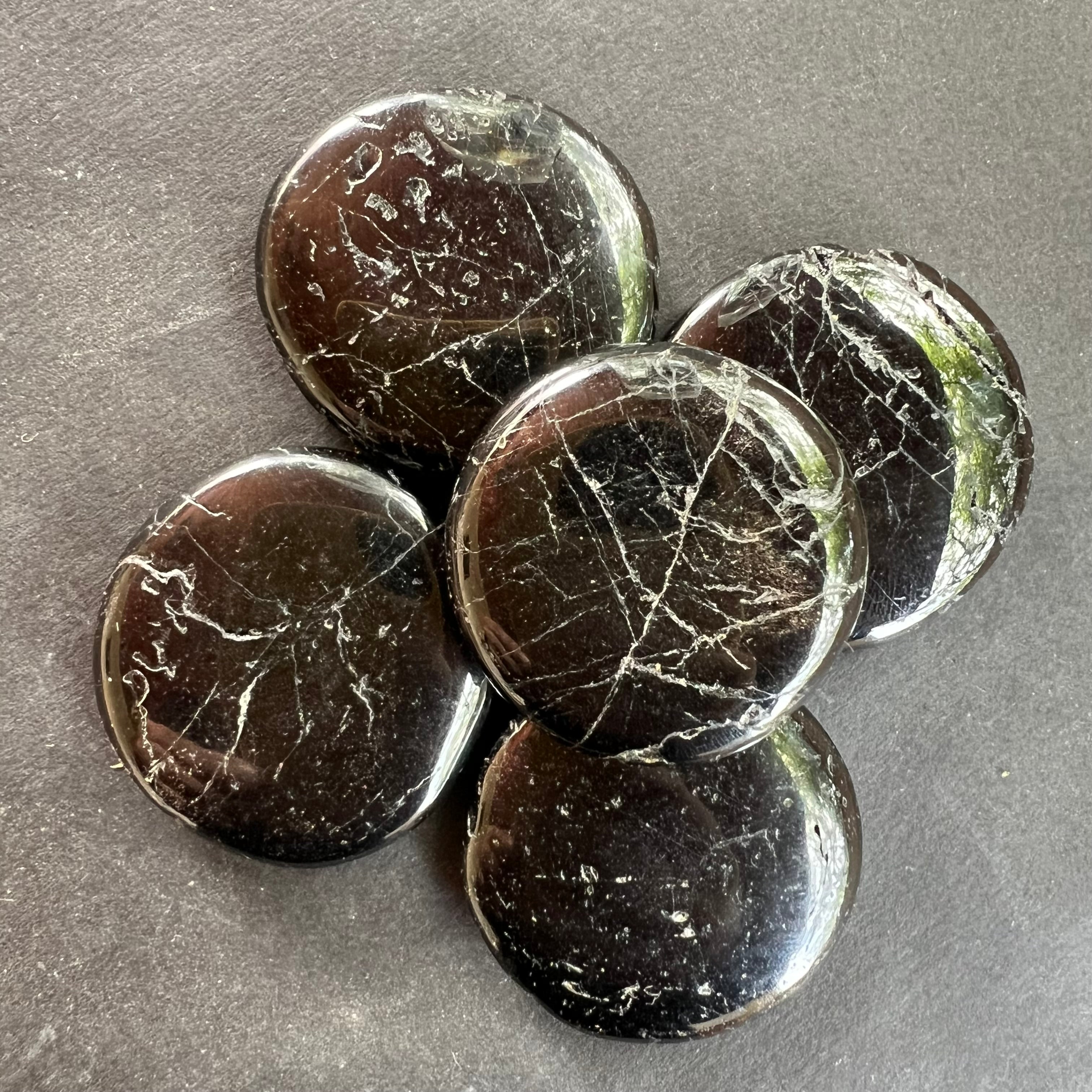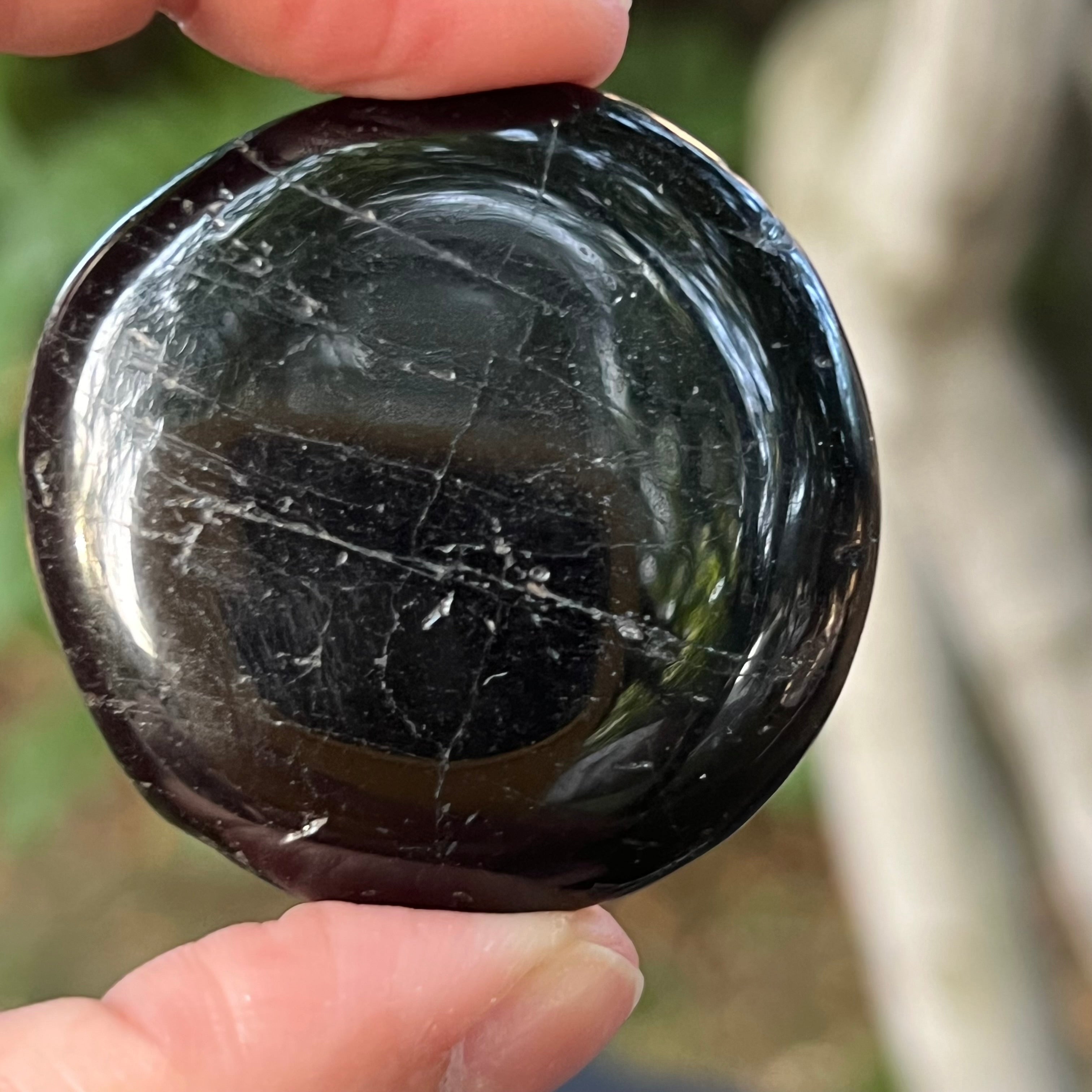 Fekete turmalin pálmakő, mérete 3-5 cm.