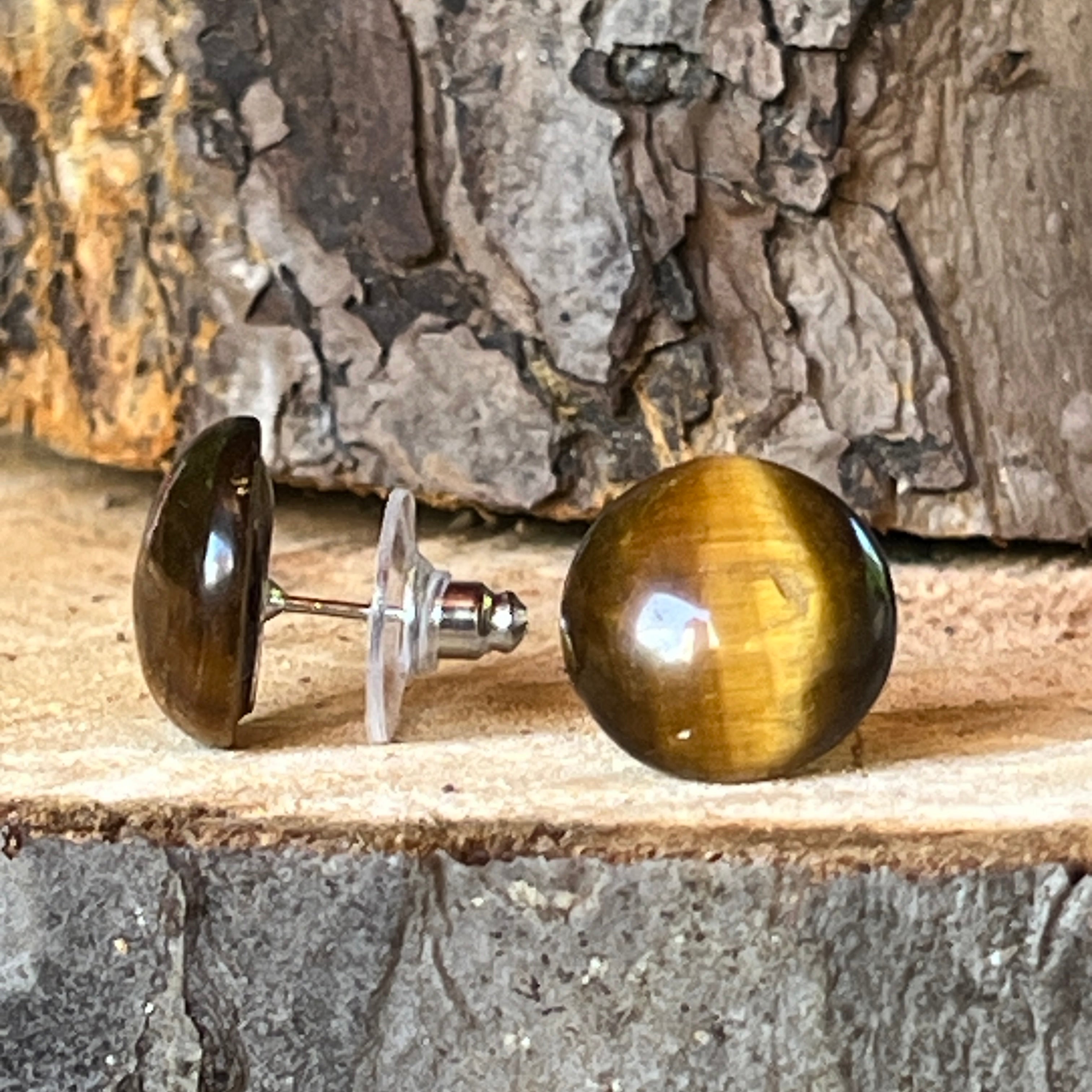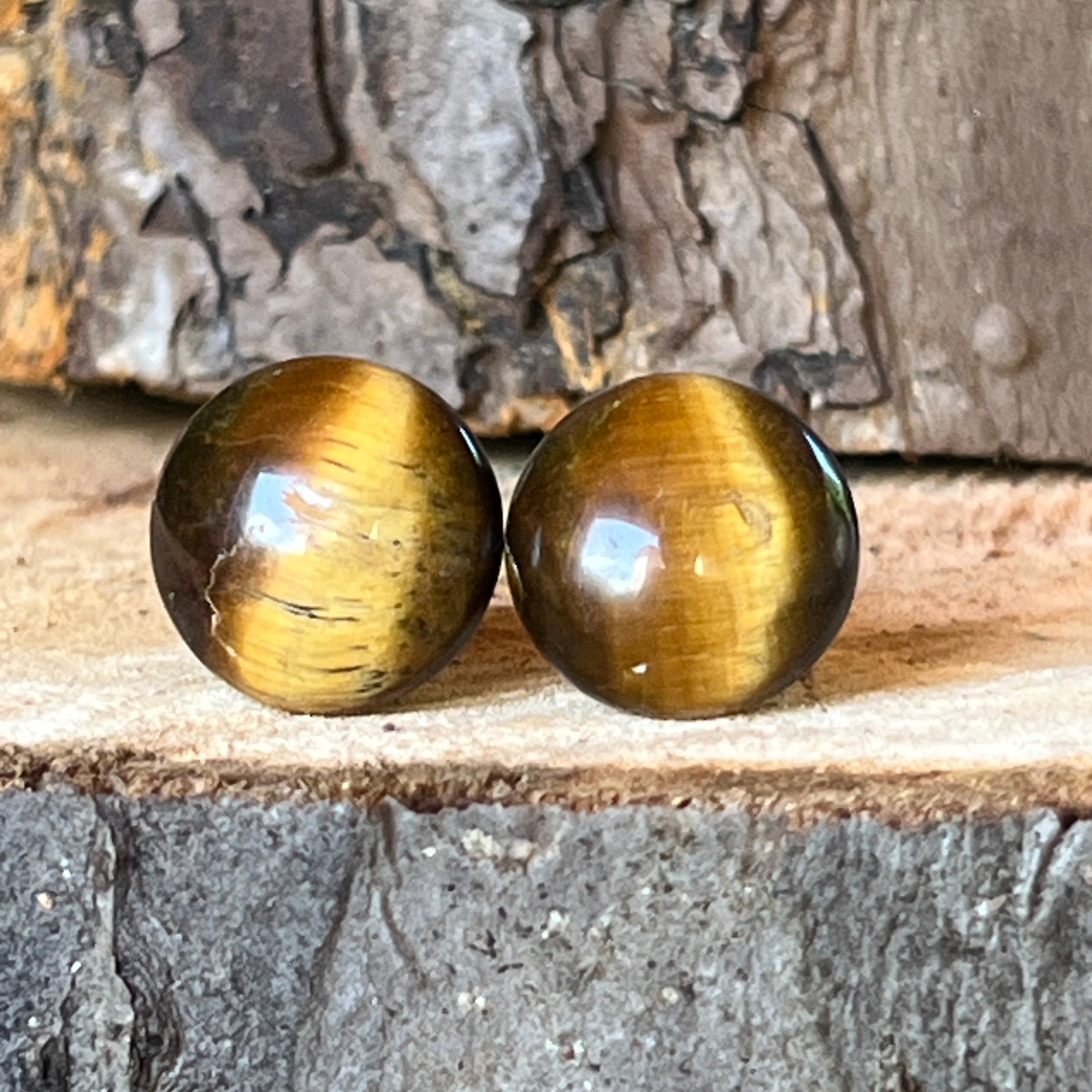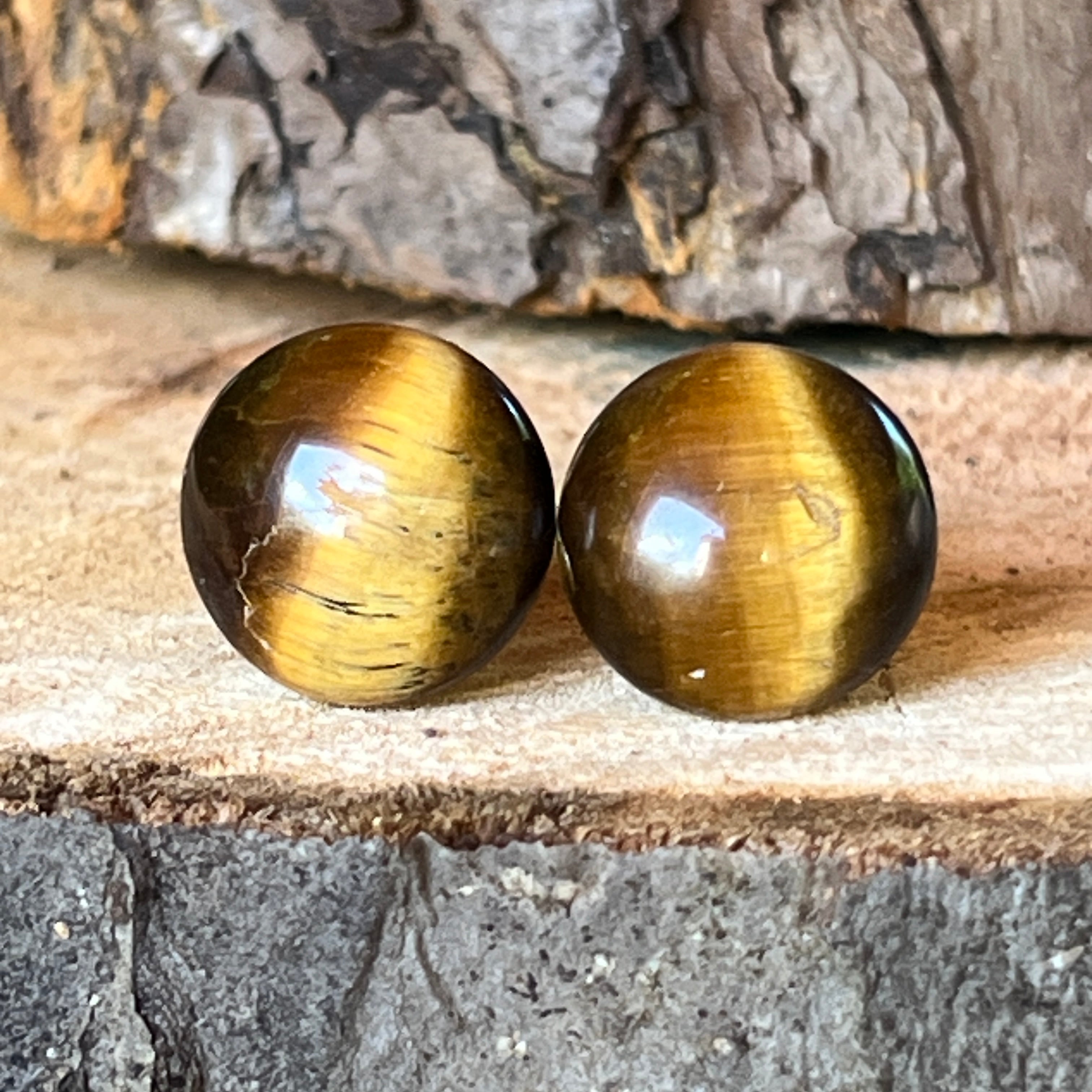 Descriere - Félig gömb fülbevaló tigrisszem 15-16 mm