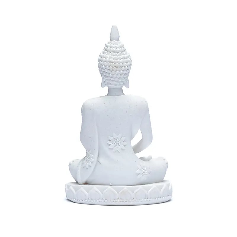 Ez a fehér Buddha szobor Buddhát ábrázolja meditációs mudrában, a kéztartás a belső egyensúlyt, nyugalmat és megvilágosodást.