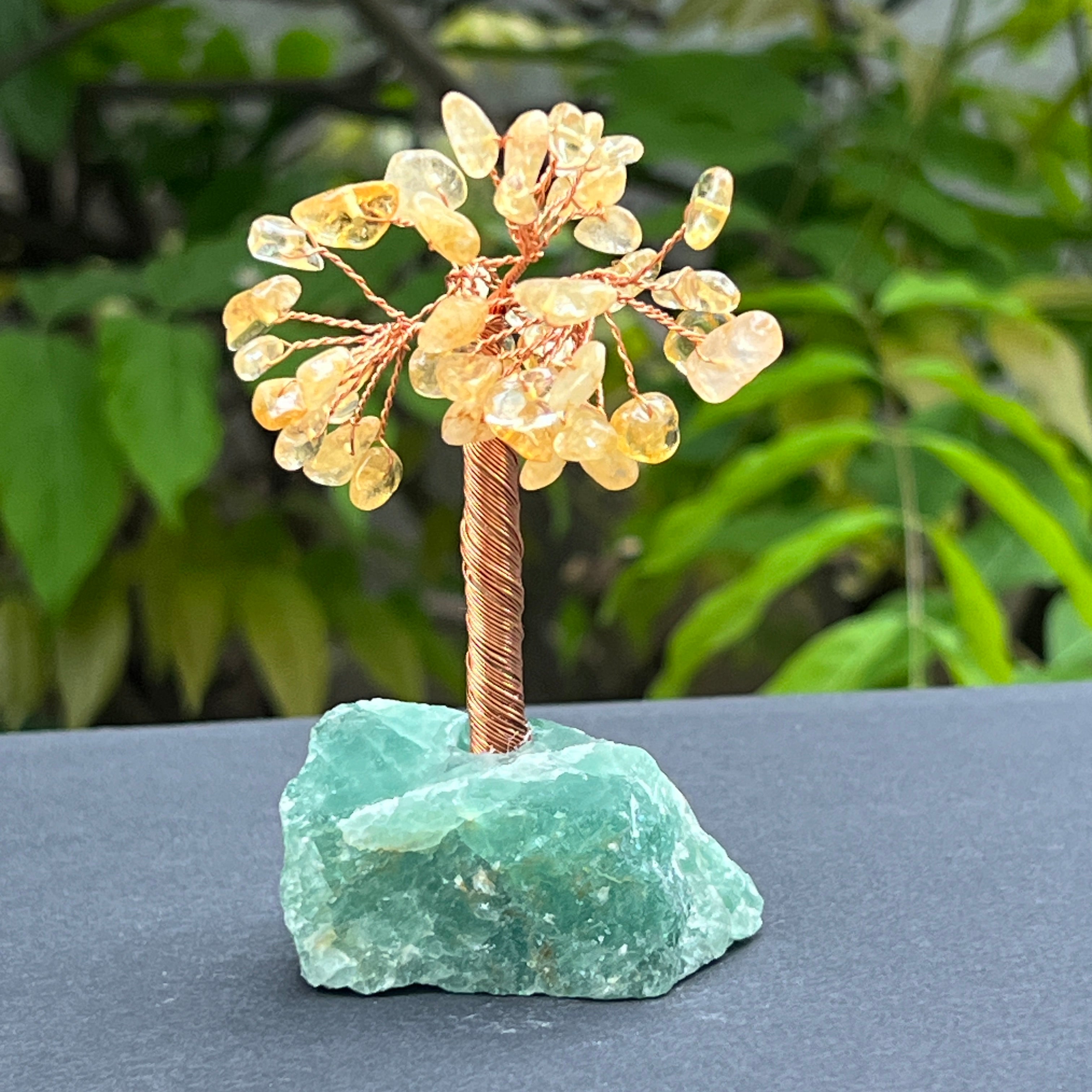 A napenergia, a tisztaság és a jólét szimbóluma, ez a feng shui fa természetes kristályokból készült, felemelő rezgéssel. A levelek a citrin, a bőség, az önbizalom és az anyagi siker köve. Bázis innen nyers fluorit energiavédelmet, lelki egyensúlyt és koncentrálóképességet hoz.