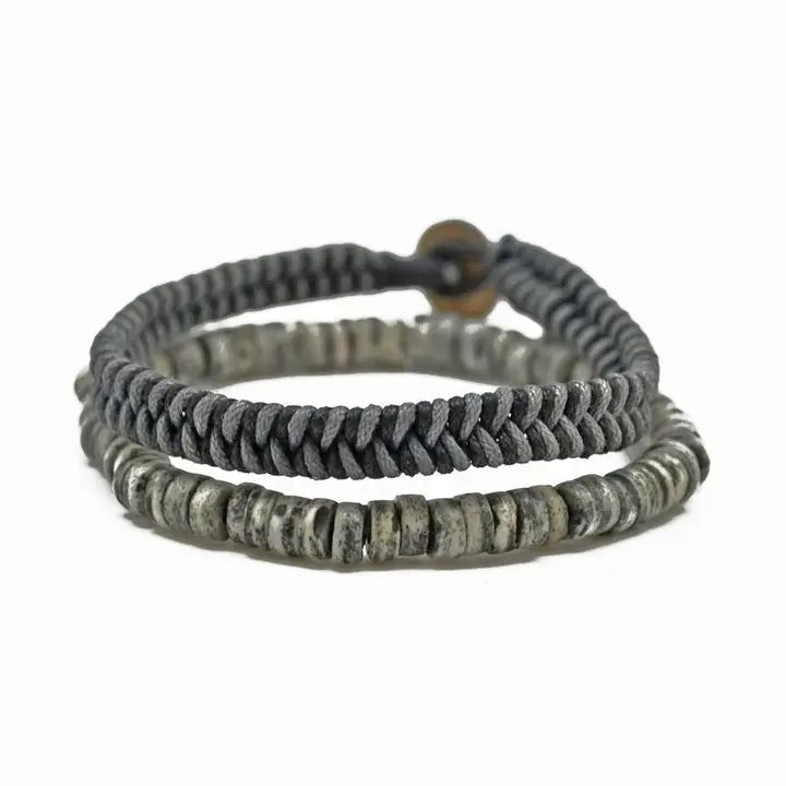 Viselje a készletet Kórus – férfias duó, amely egyesíti a kövek természetességét a fonott zsinór városi energiájával ✨.