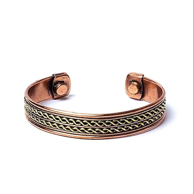 Ez a mágneses réz karkötő az egyszerű réz eleganciáját ötvözi a mágneses terápiás előnyökkel. 99,99%-os tisztaságú szilárd rézből készült, állítható dizájnnal rendelkezik, amely minden csuklóra illik, és 2 ultraerős mágnest tartalmaz, amely az energiát és az egyensúlyt hivatott támogatni.