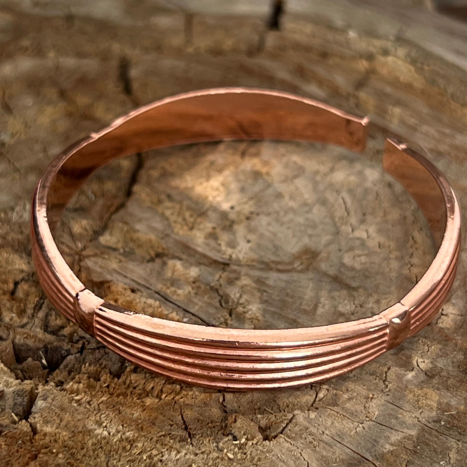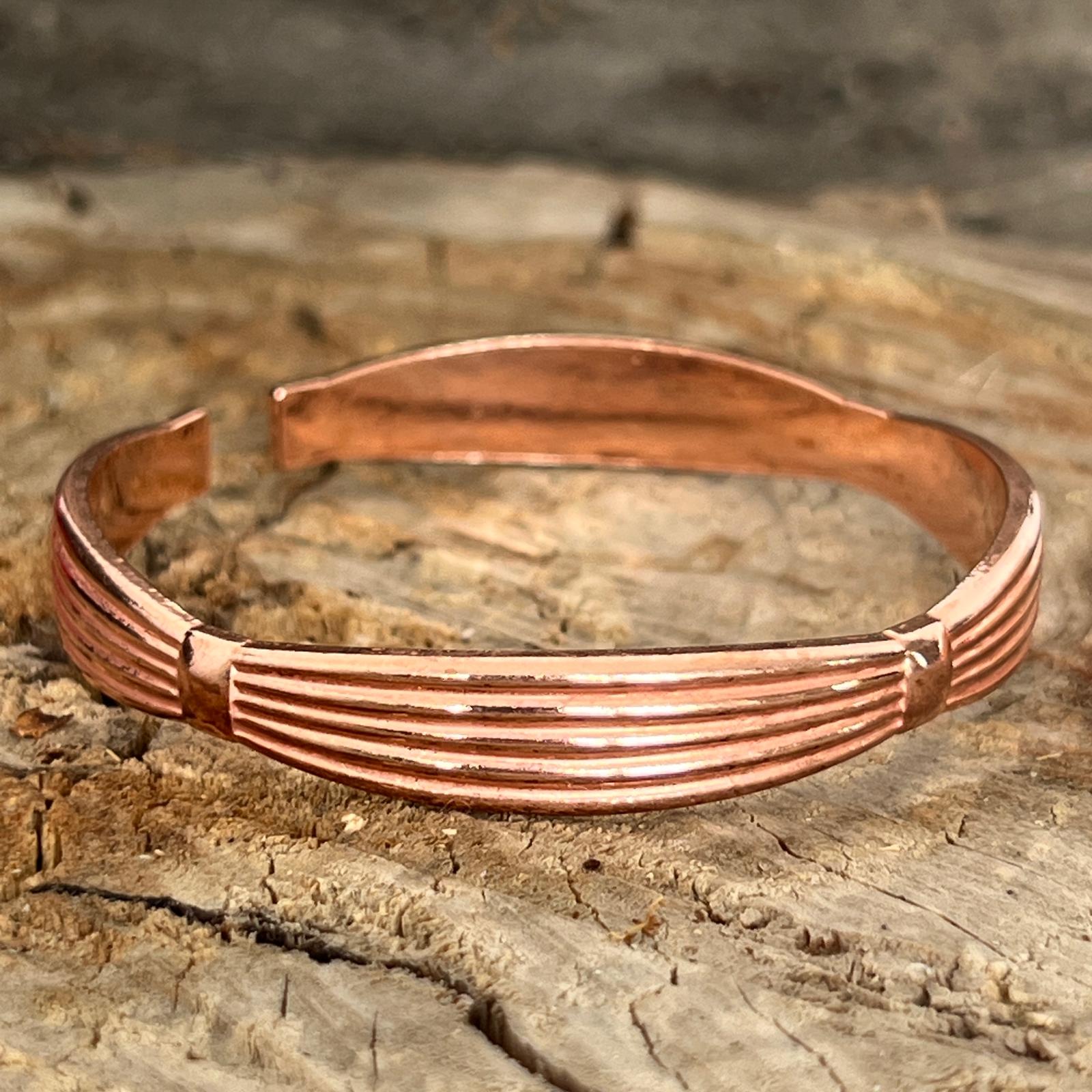 Ez a női elegáns réz karkötő, finom vízszintes barázdákkal, ötvözi a modern minimalizmust a réz viselésének hagyományával, mint az életerő és az egyensúly szimbólumával. Állítható és kényelmes, tökéletesen illeszkedik bármilyen csuklóra, és diszkrét, ugyanakkor kifinomult hangsúlyt ad bármilyen öltözékhez.