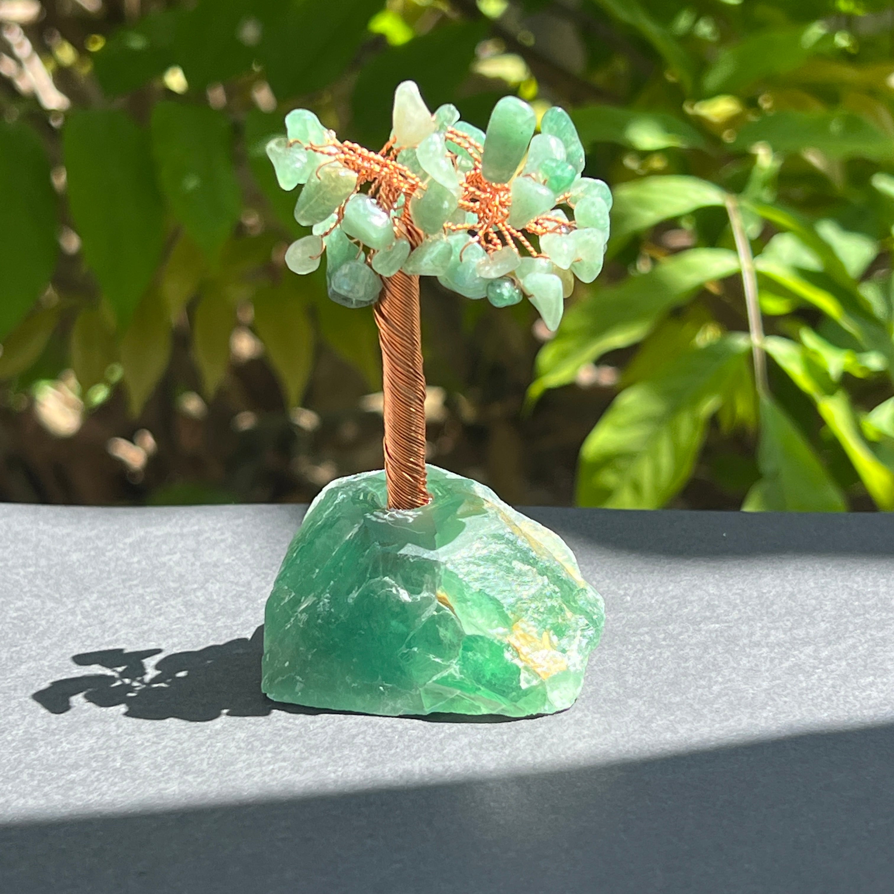 Ez a feng shui fa természetes kristályok elegáns kombinációja, amely vonzóvá teszi szerencse, bőség és lelki egyensúly. A levelek készülnek zöld aventurin, amelyet a feng shui a szerencse, a lehetőségek és az új kezdetek köveként ismer. Az alap a következőkből áll nyers fluorit, a mentális tisztaság, az energetikai védelem és az összpontosítás köve.