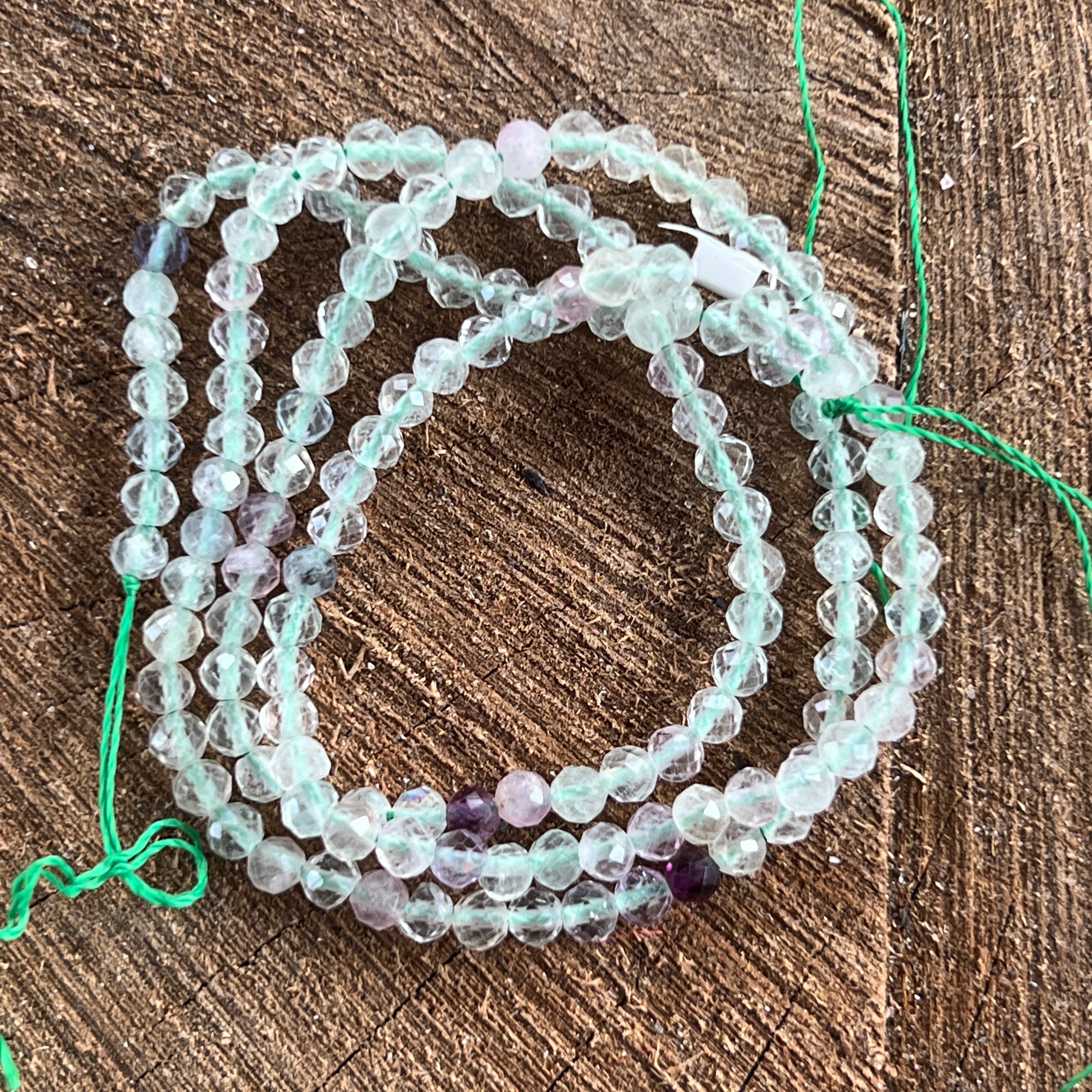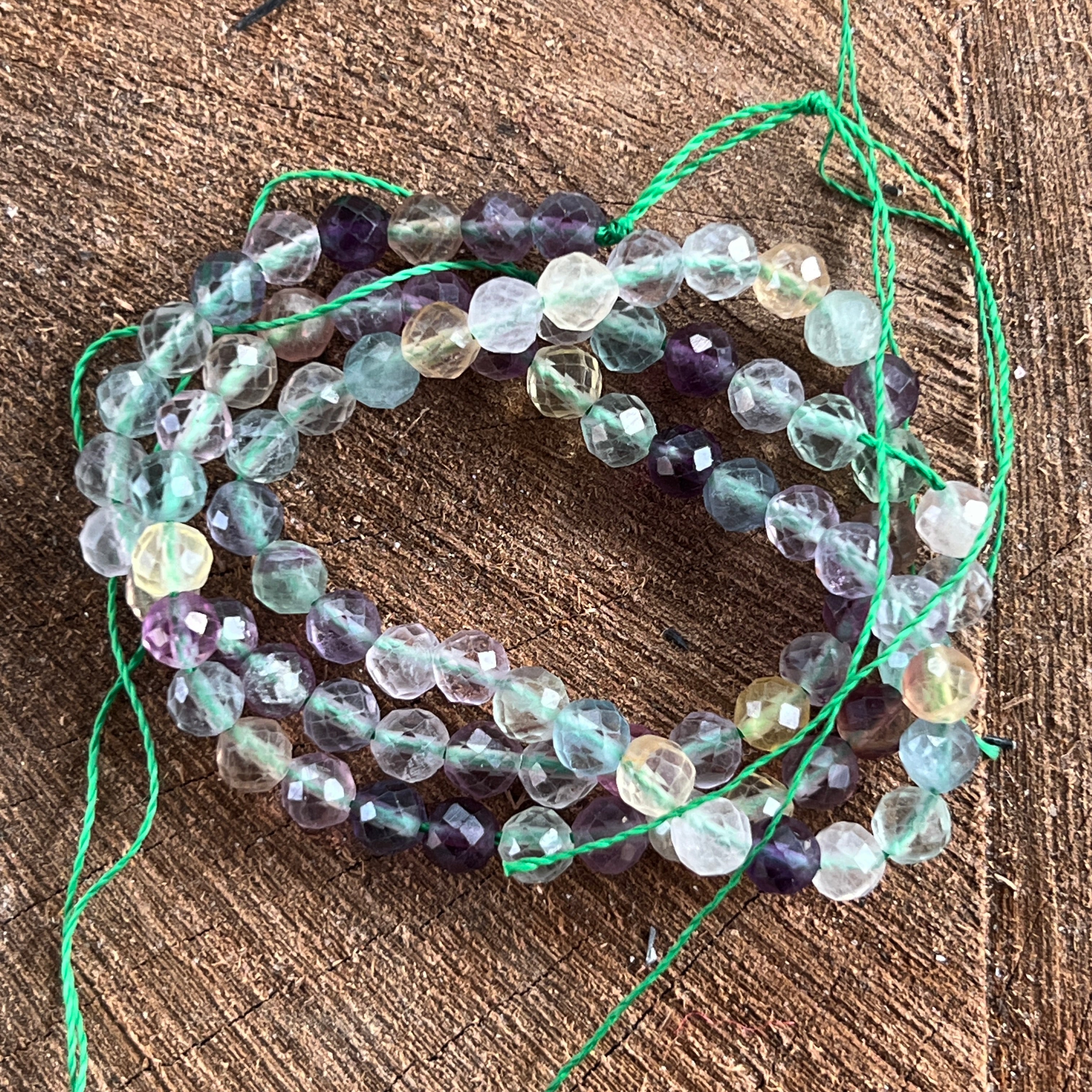 FLUORIT füzér, amely természetes FAZETTÁLT gömbölyű gyöngyökből áll, tökéletes nyakláncokhoz, karkötőkhöz vagy más kézműves ékszerekhez.