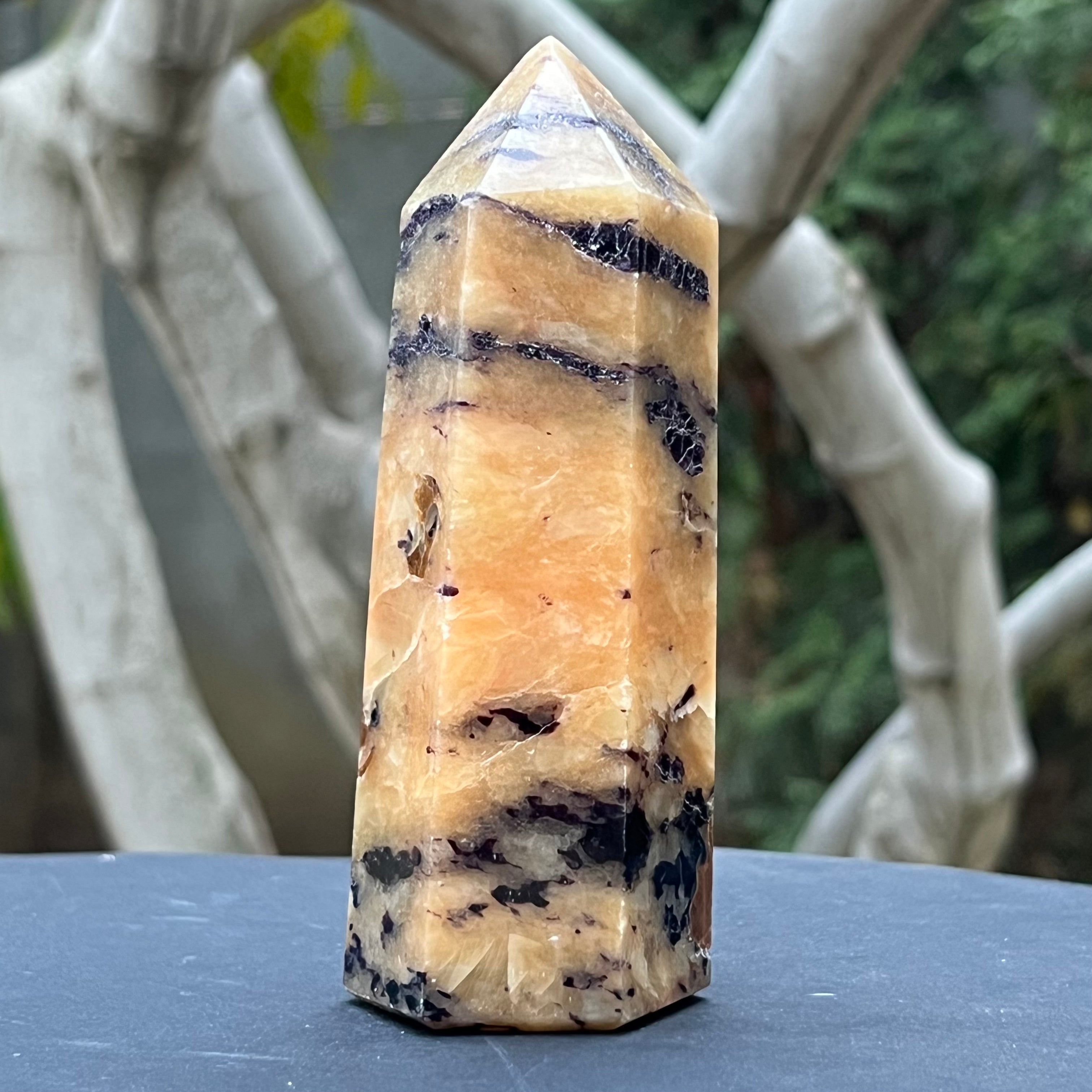 Descriere - Fluorit kalcitban obeliszk generátor Madagaszkárról, modell 2