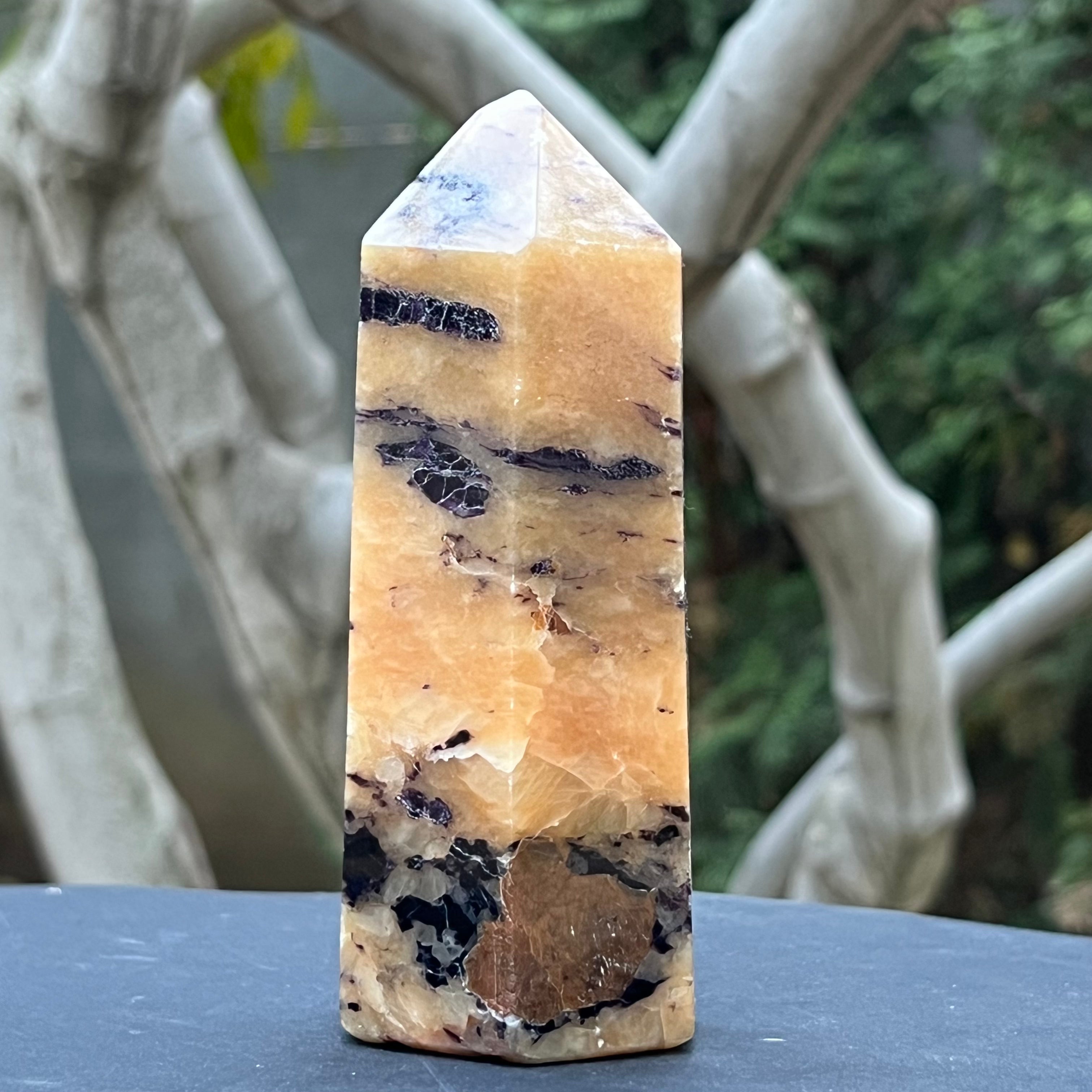 Fluorit kalcitban obeliszk generátor XL Madagaszkárról, modell 2, méret: 13 * 5 * 5,5 CM