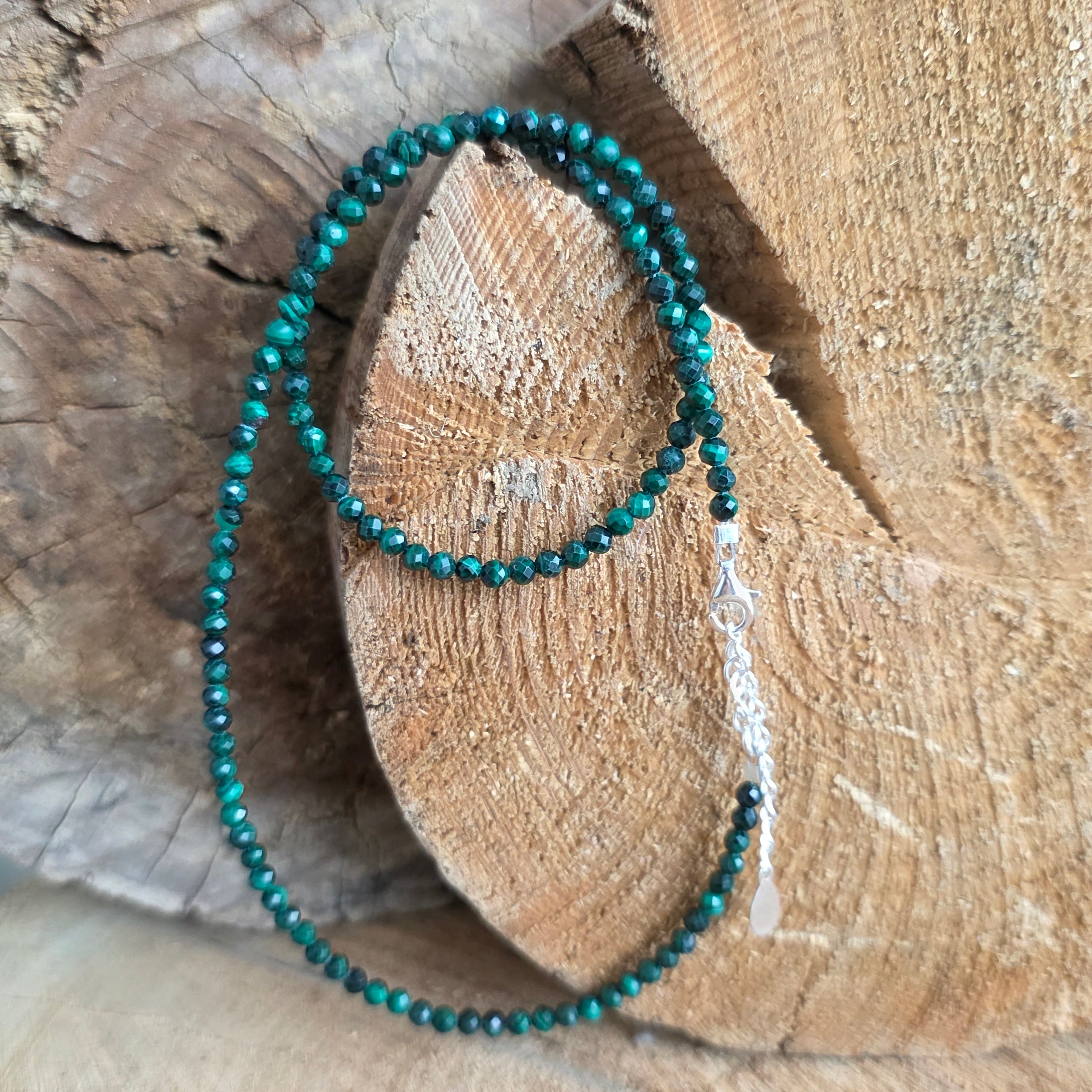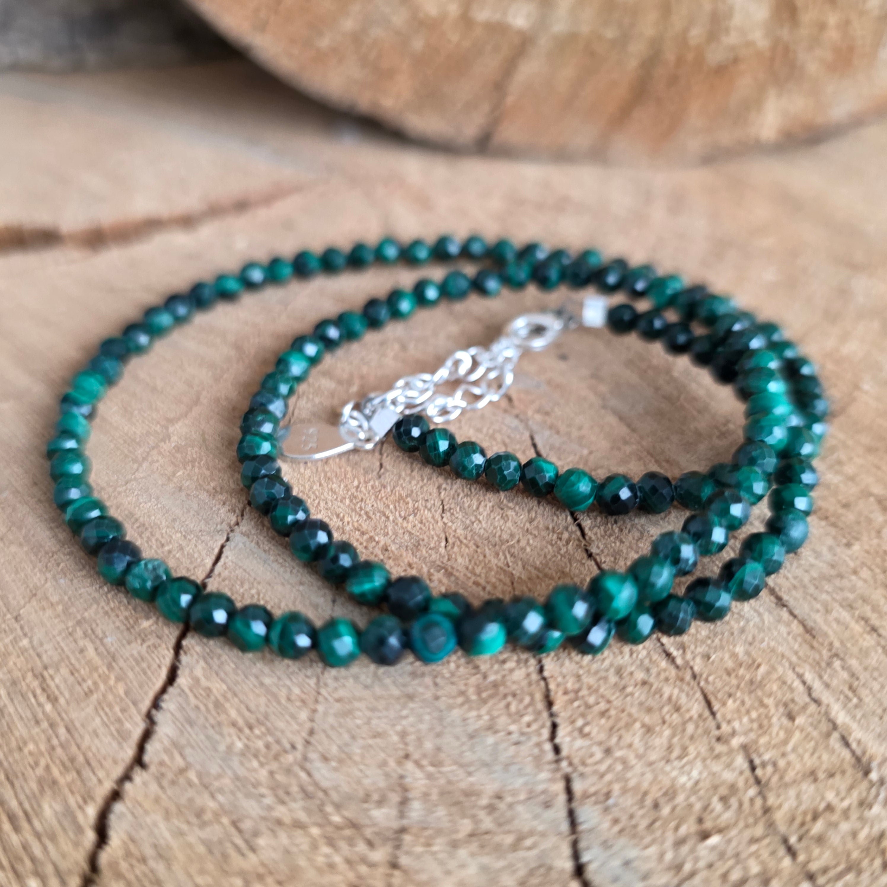 Anyagok: természetes malachit fazettált 2 mm-es gyöngyök, 925 ezüst