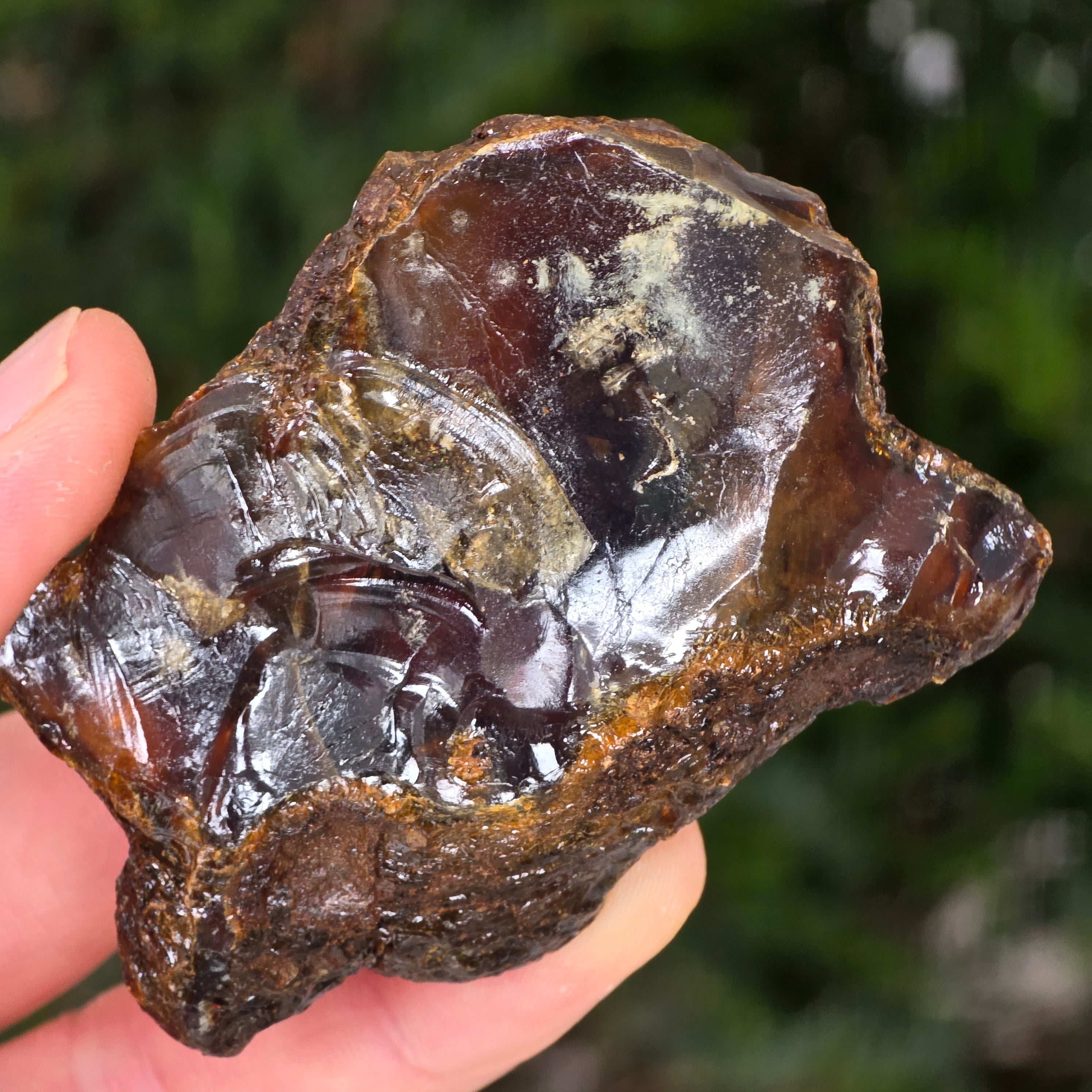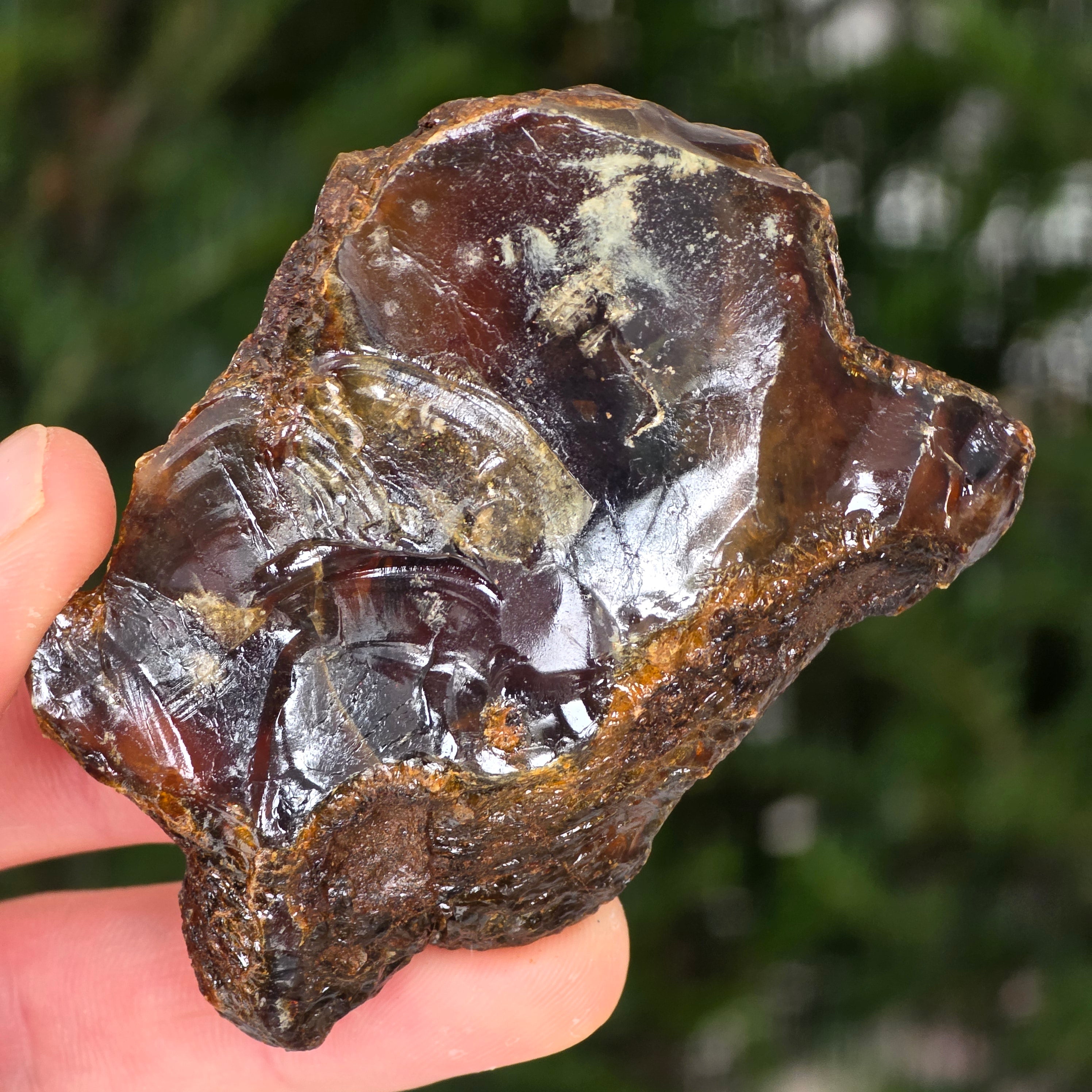 Természetes, nyers fosszilis borostyán mintadarab, Szumátra régiójából, Indonéziából – Délkelet-Ázsia egyik kevés aktív borostyánforrása. Ez a trópusi terület gazdag szerves üledékekben és intenzív geológiai tevékenységéről ismert, ami ideális feltételeket biztosít a borostyán kialakulásához.