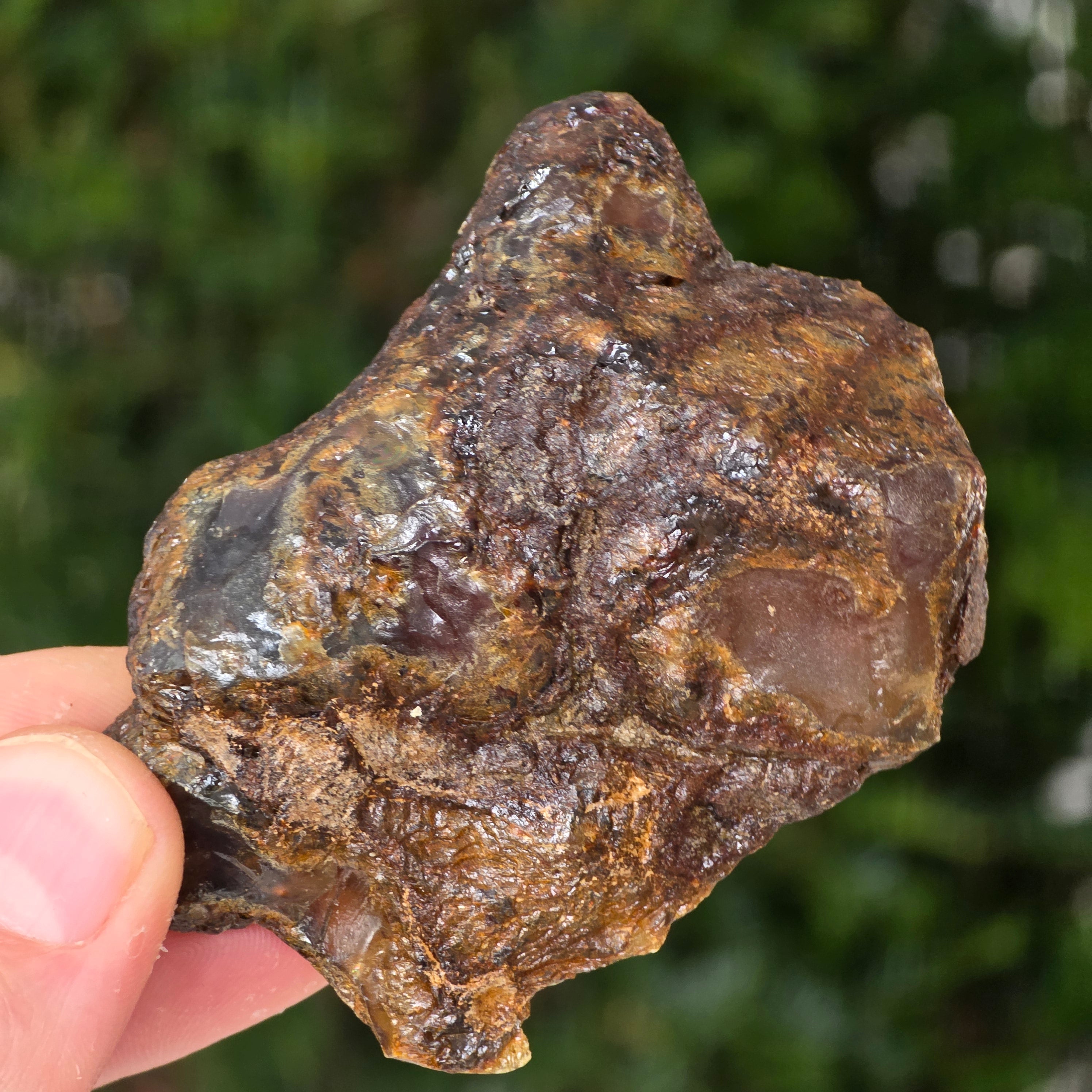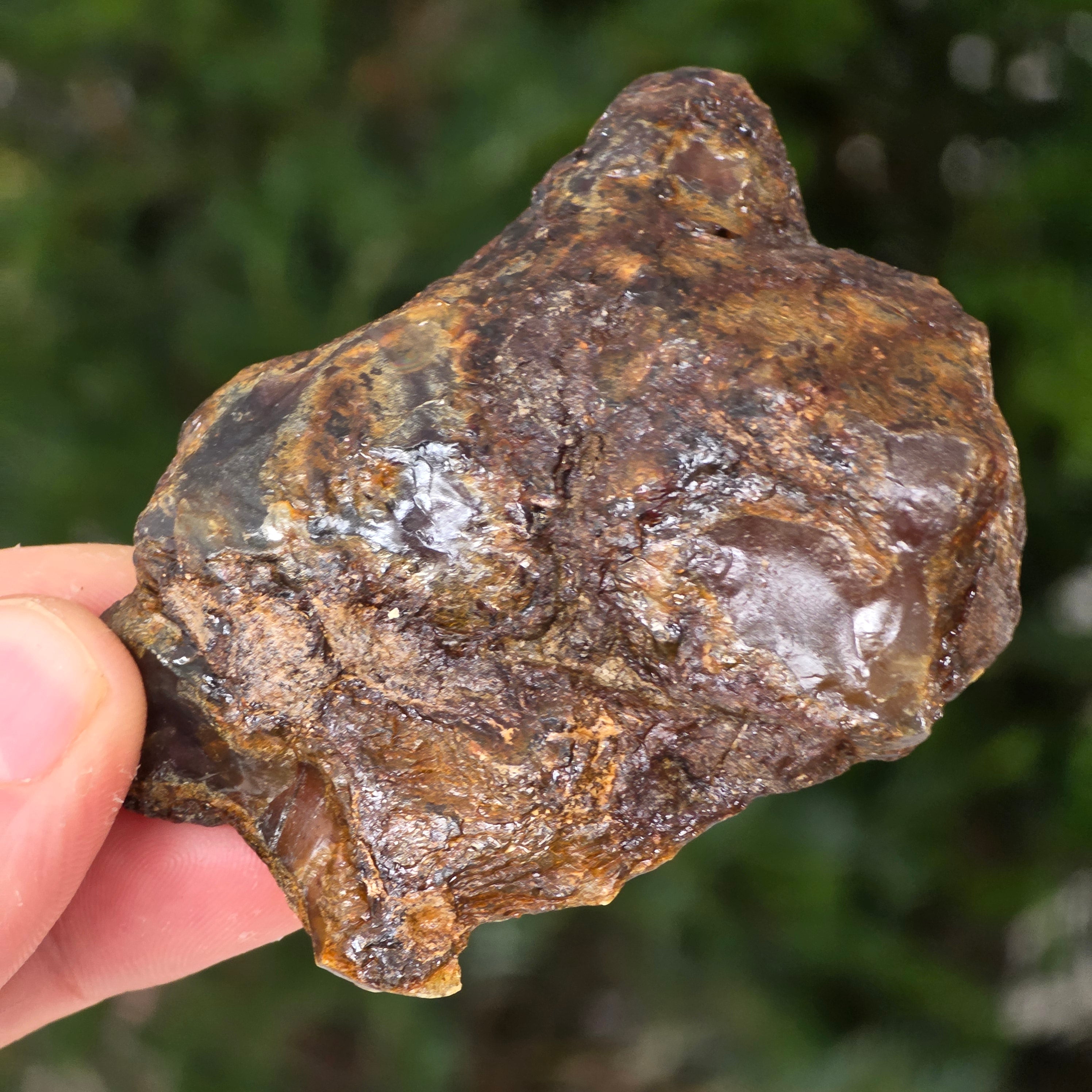 A bemutatott darab nyers, feldolgozatlan, szabálytalan felületű és természetes alakú. A színe a meleg sárgától a sötétbarnáig változik, textúrája opálos, enyhén áttetsző részekkel. Gyűjtők, geológiai érdeklődésűek vagy oktatási célú kiállítás számára ideális.