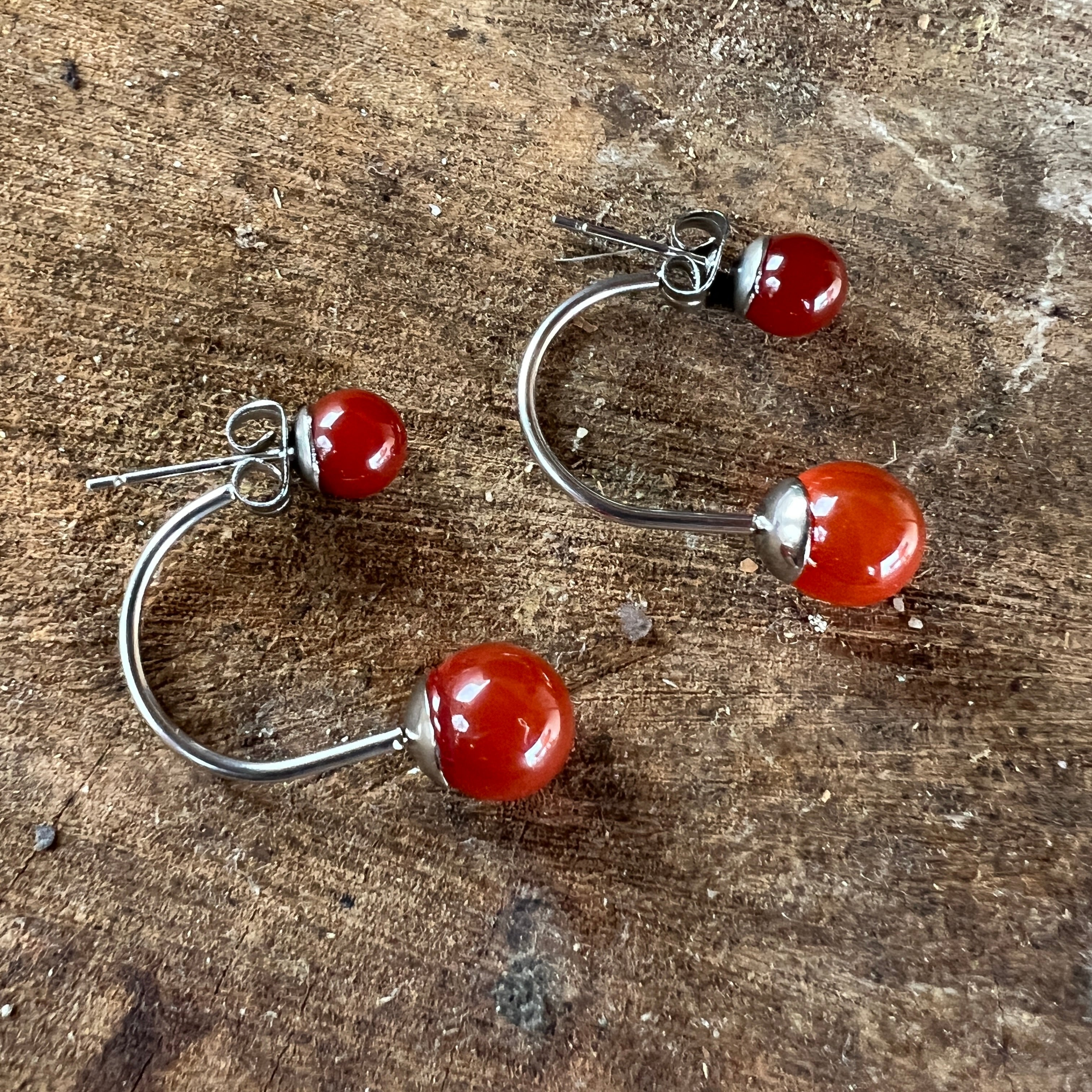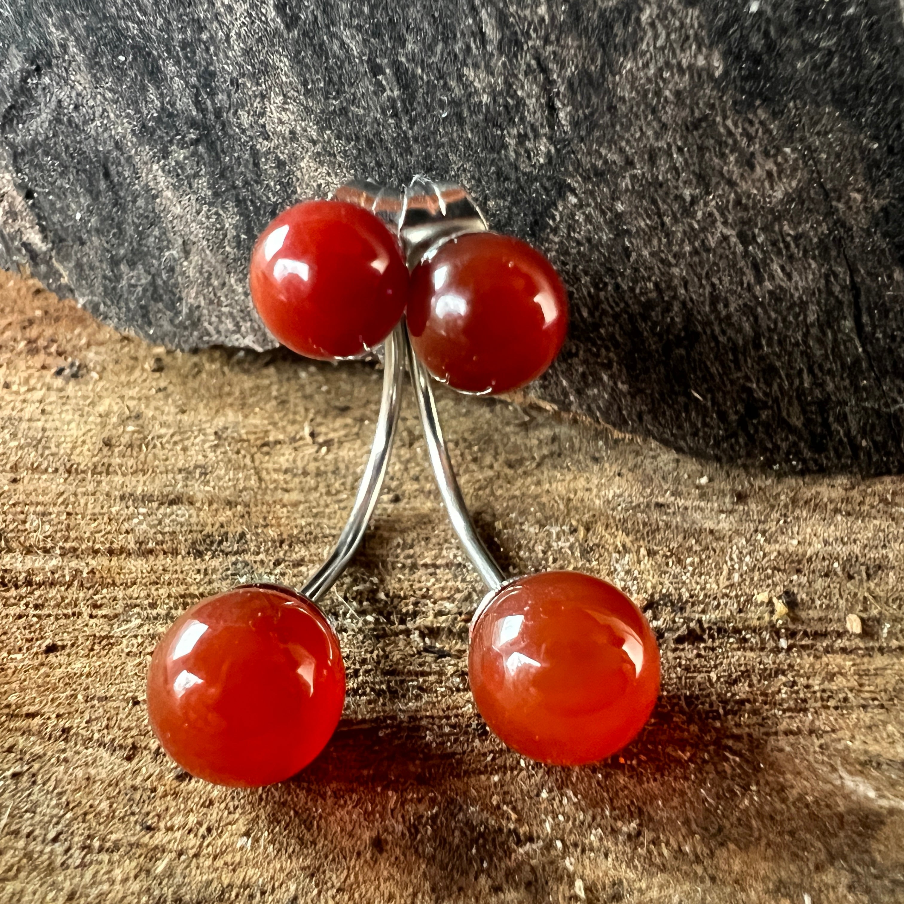 Fülbevaló 2 karneol gömbbel, gömb mérete: 6-8 mm