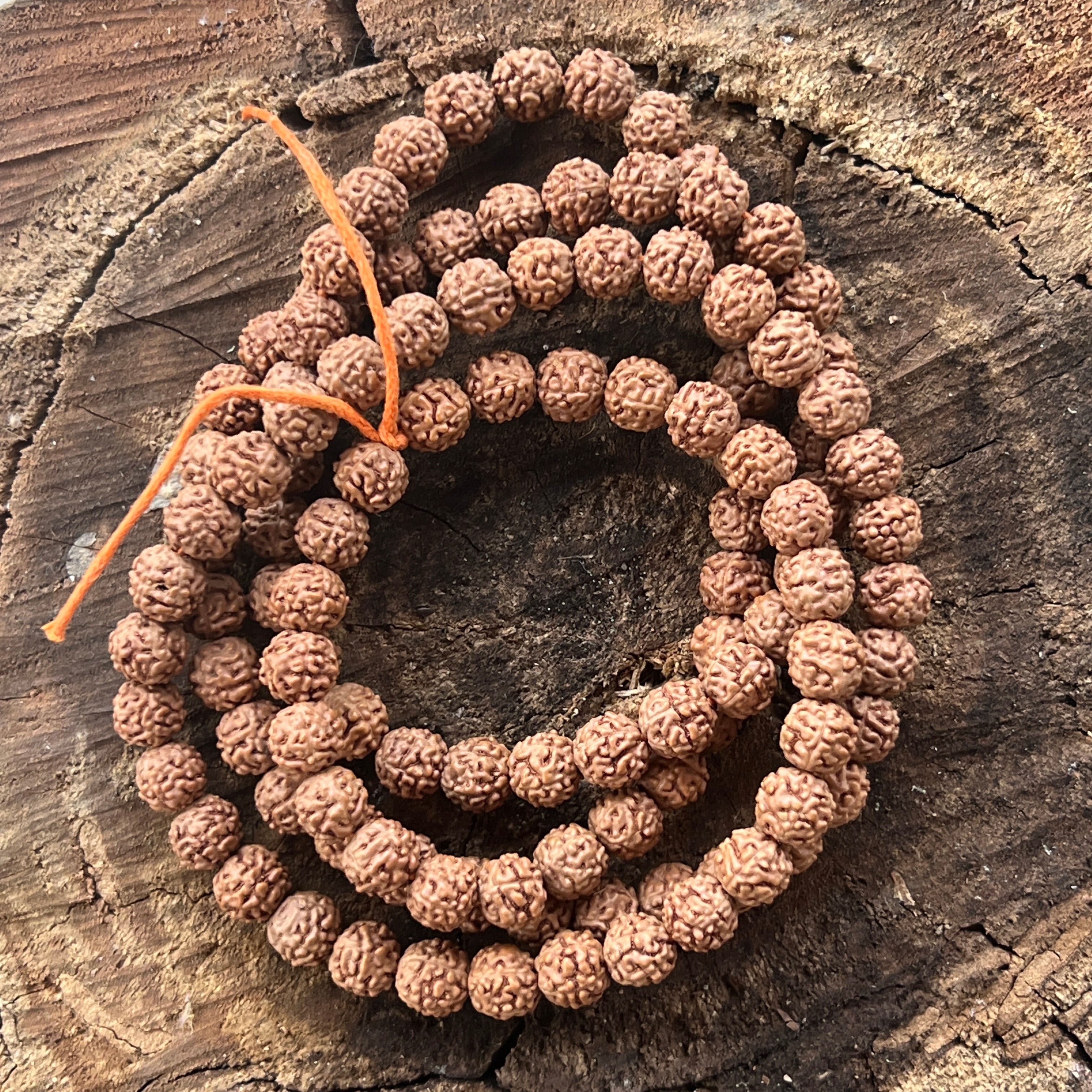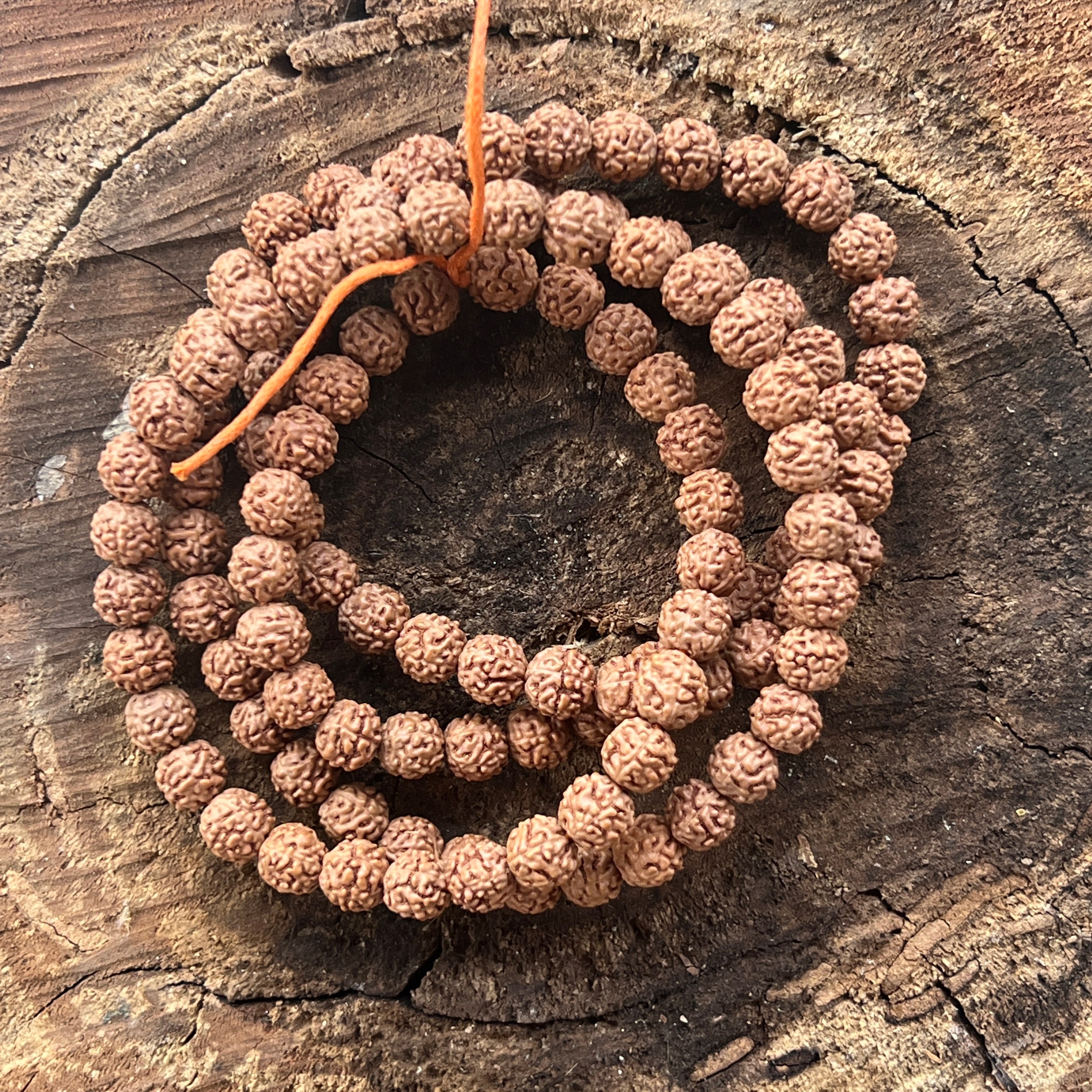 RUDRAKSHA húrja, amelyből áll természetes gömb alakú gyöngyök, tökéletes nyaklánchoz, karkötőhöz vagy más kézzel készített ékszerhez.