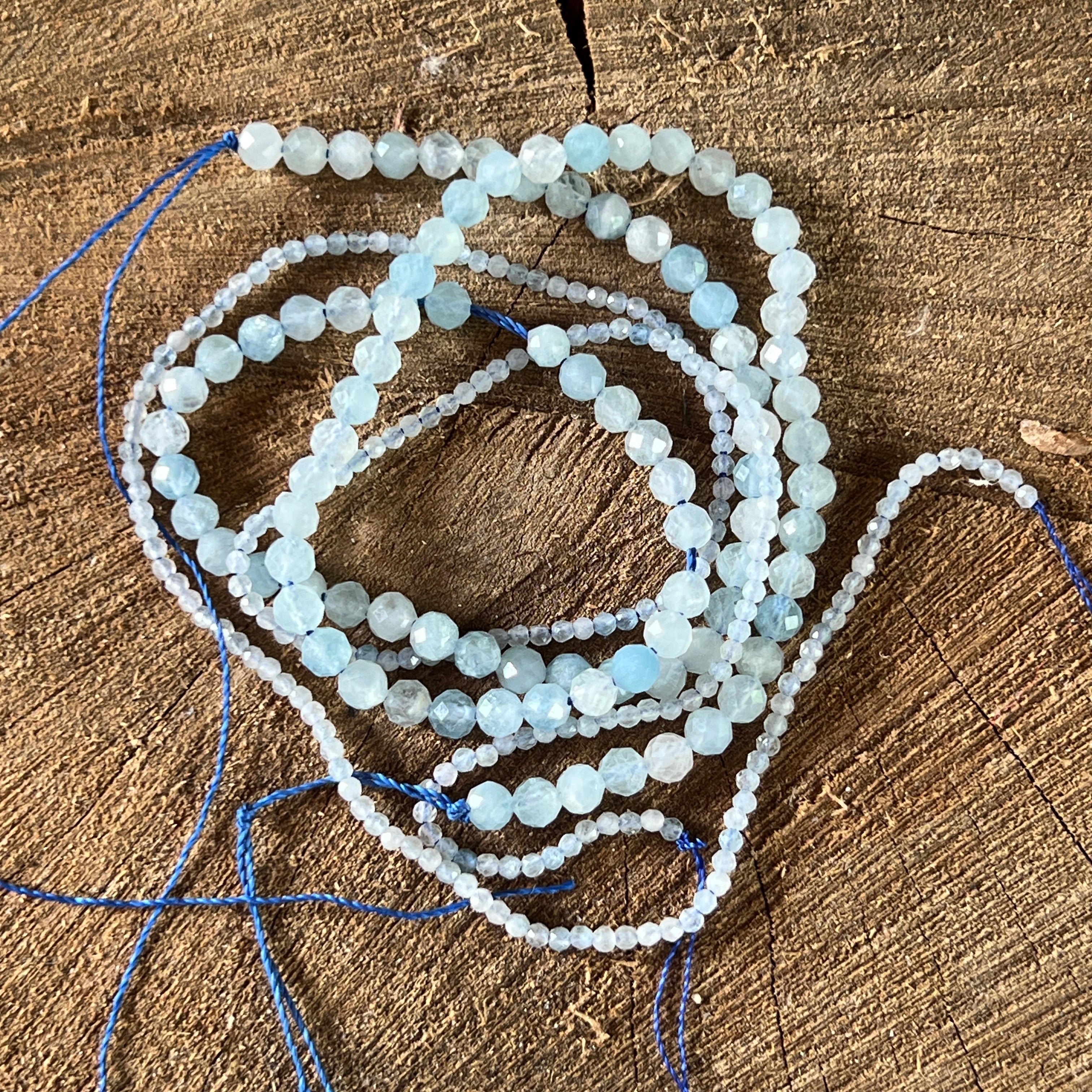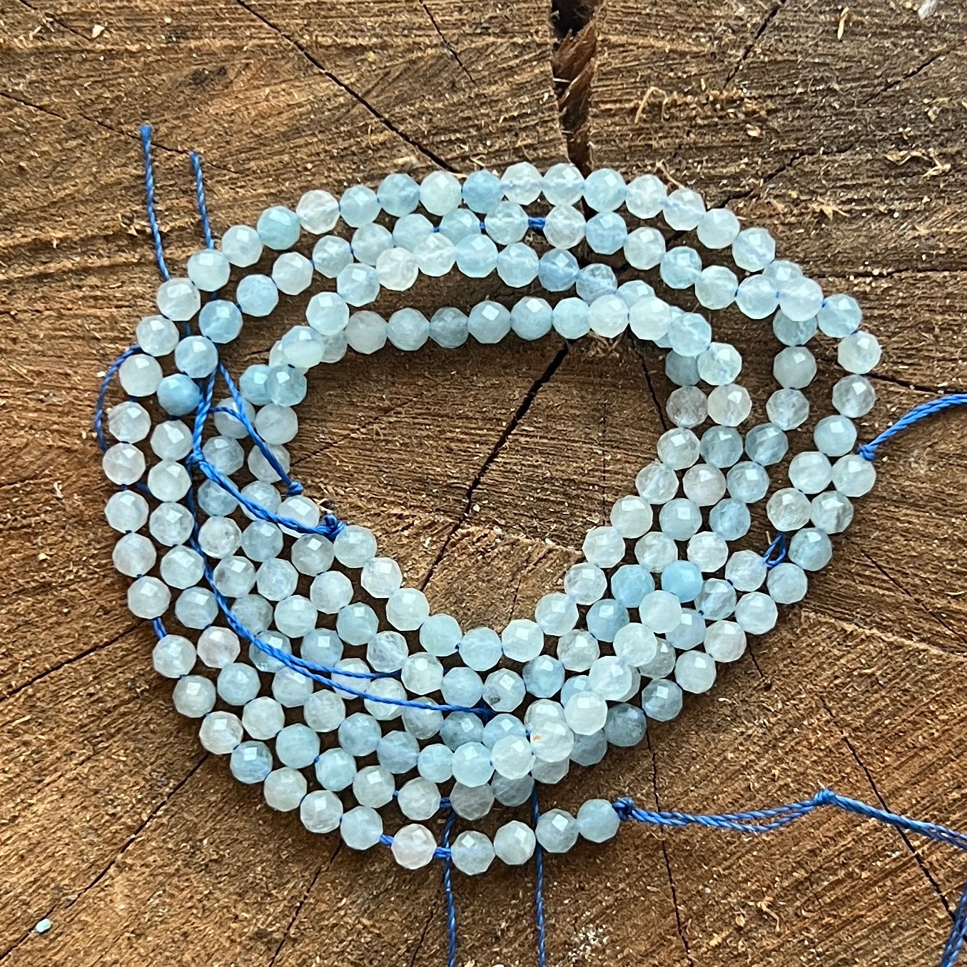 AQUAMARINE szirup, amelyből áll természetes csiszolt gömb alakú gyöngyök, tökéletes nyaklánchoz, karkötőhöz vagy más kézzel készített ékszerhez.